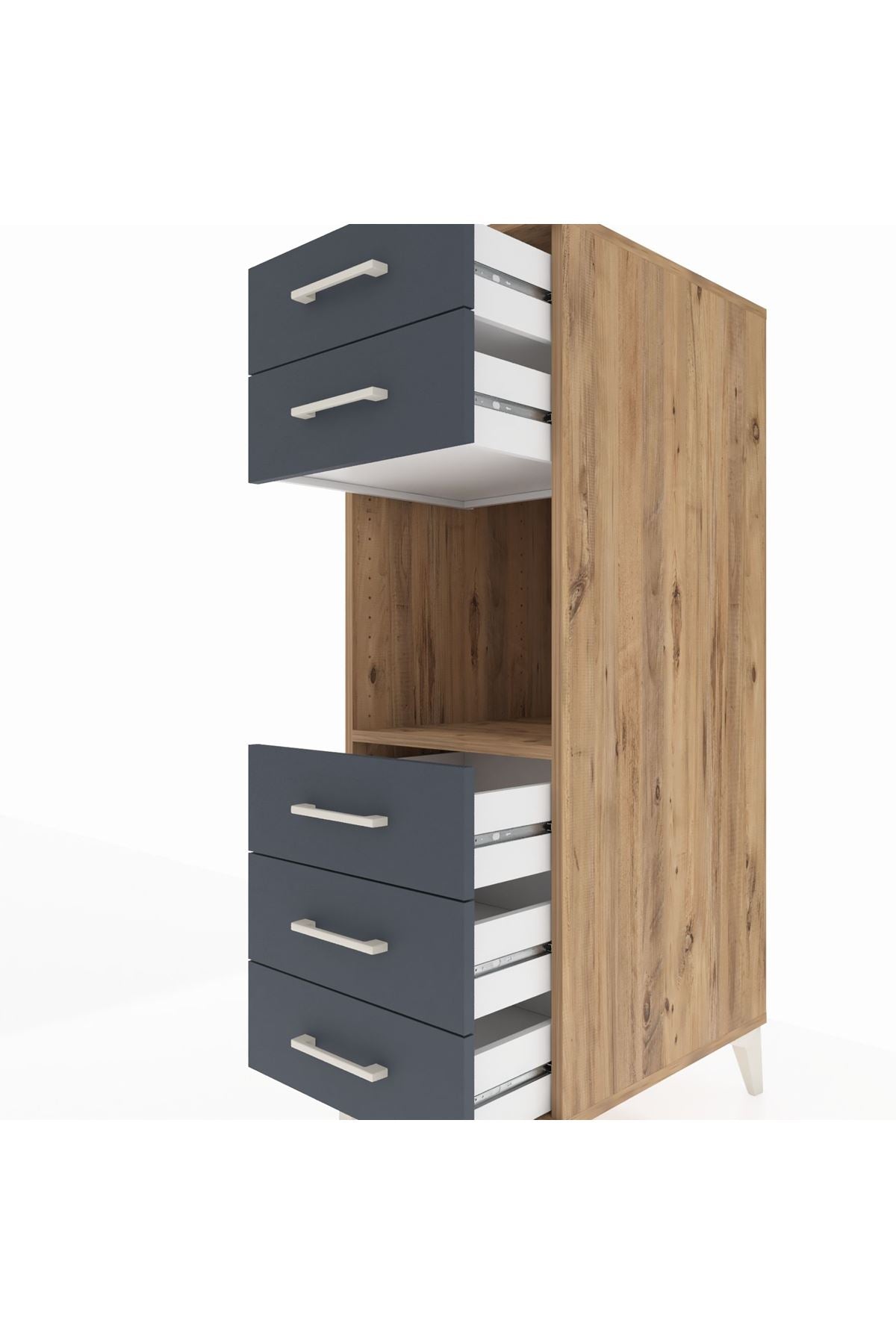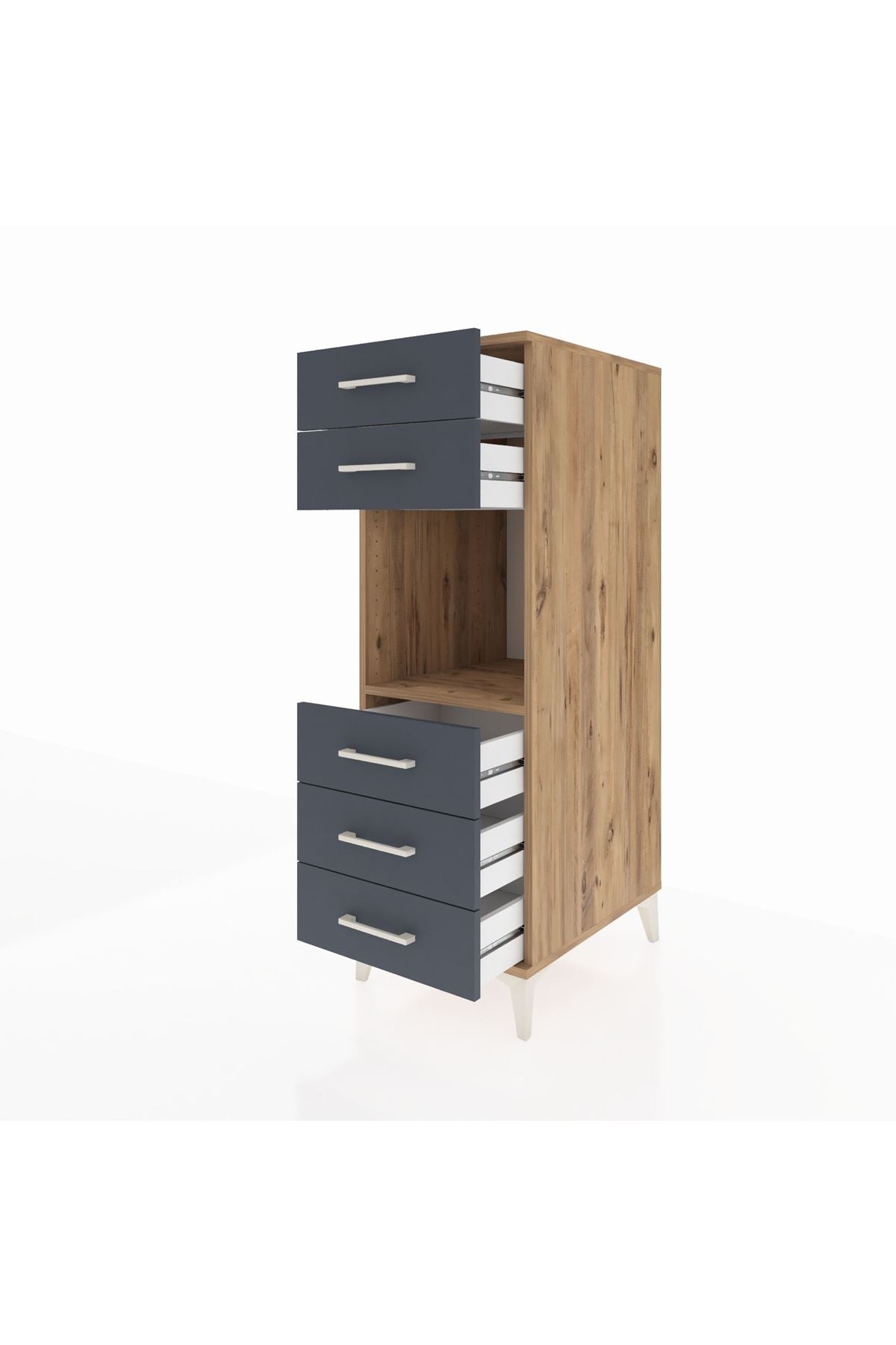 Kronos Dolap Tek Raflı 5 Çekmeceli 44x59x134 Çam-Antrasit