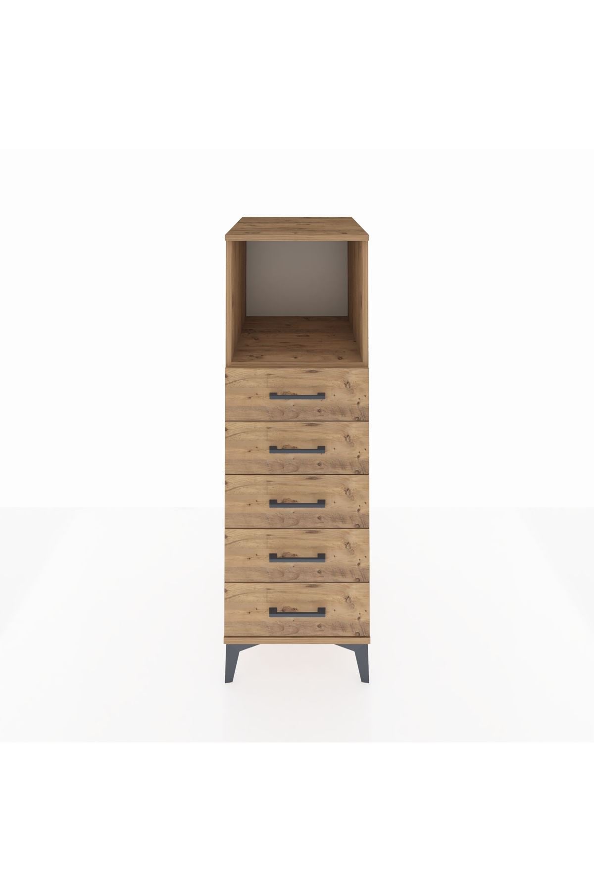 Kronos Dolap Tek Raflı 5 Çekmeceli 44x59x134 Çam-Çam