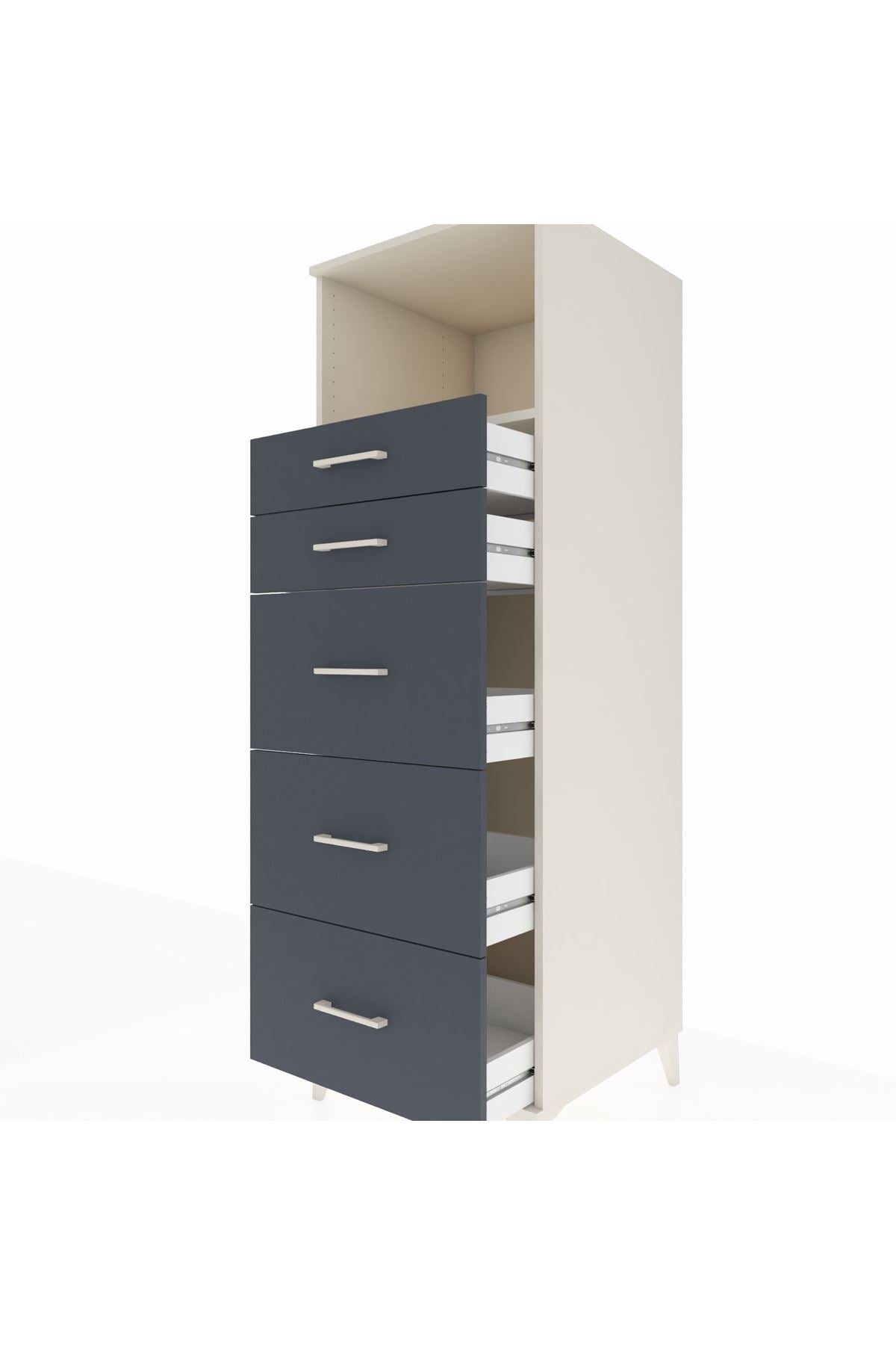 Kronos Dolap Tek Raflı 5 Çekmeceli 60x59x182 Aytaşı-Antrasit