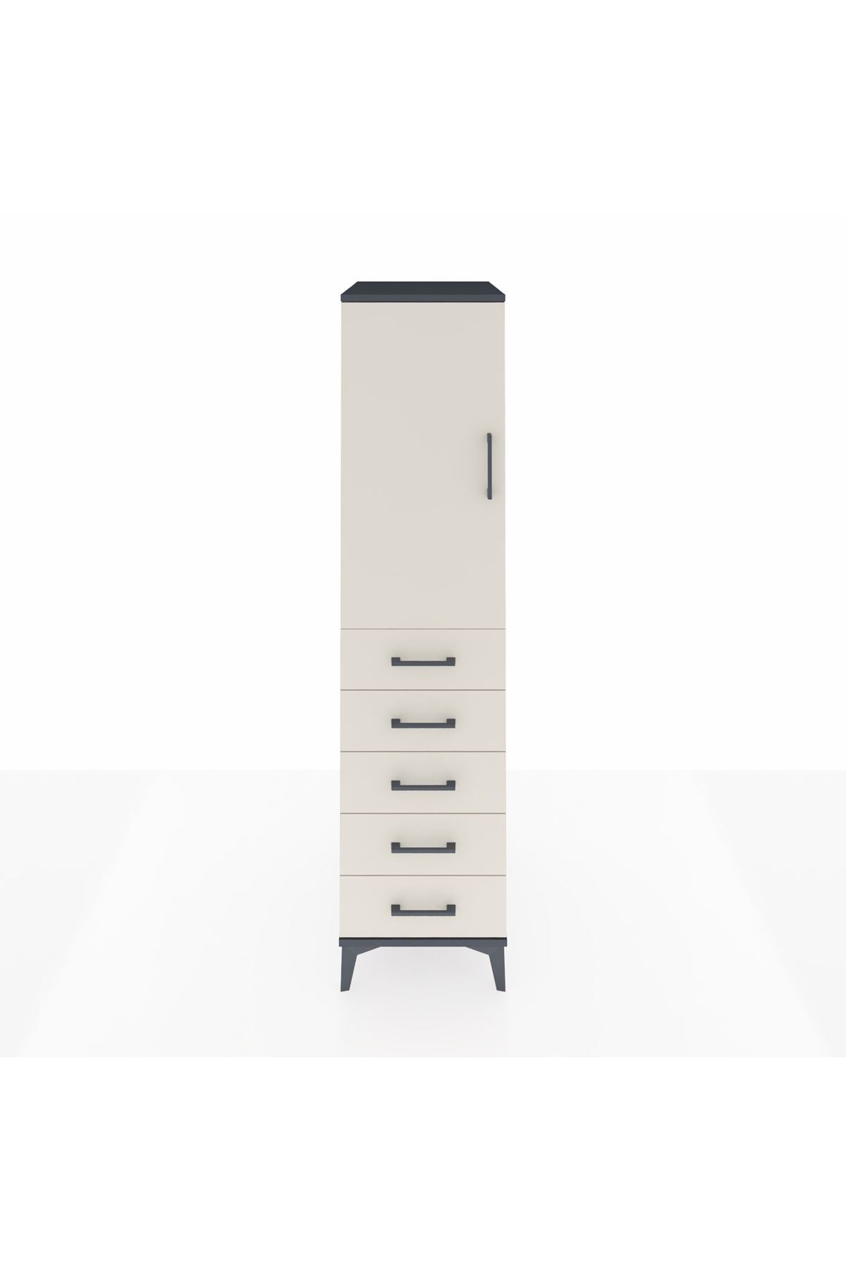 Kronos Dolap Tek Raflı 5 Çekmeceli Tek Askılı 44x59x182 Antrasit-Aytaşı