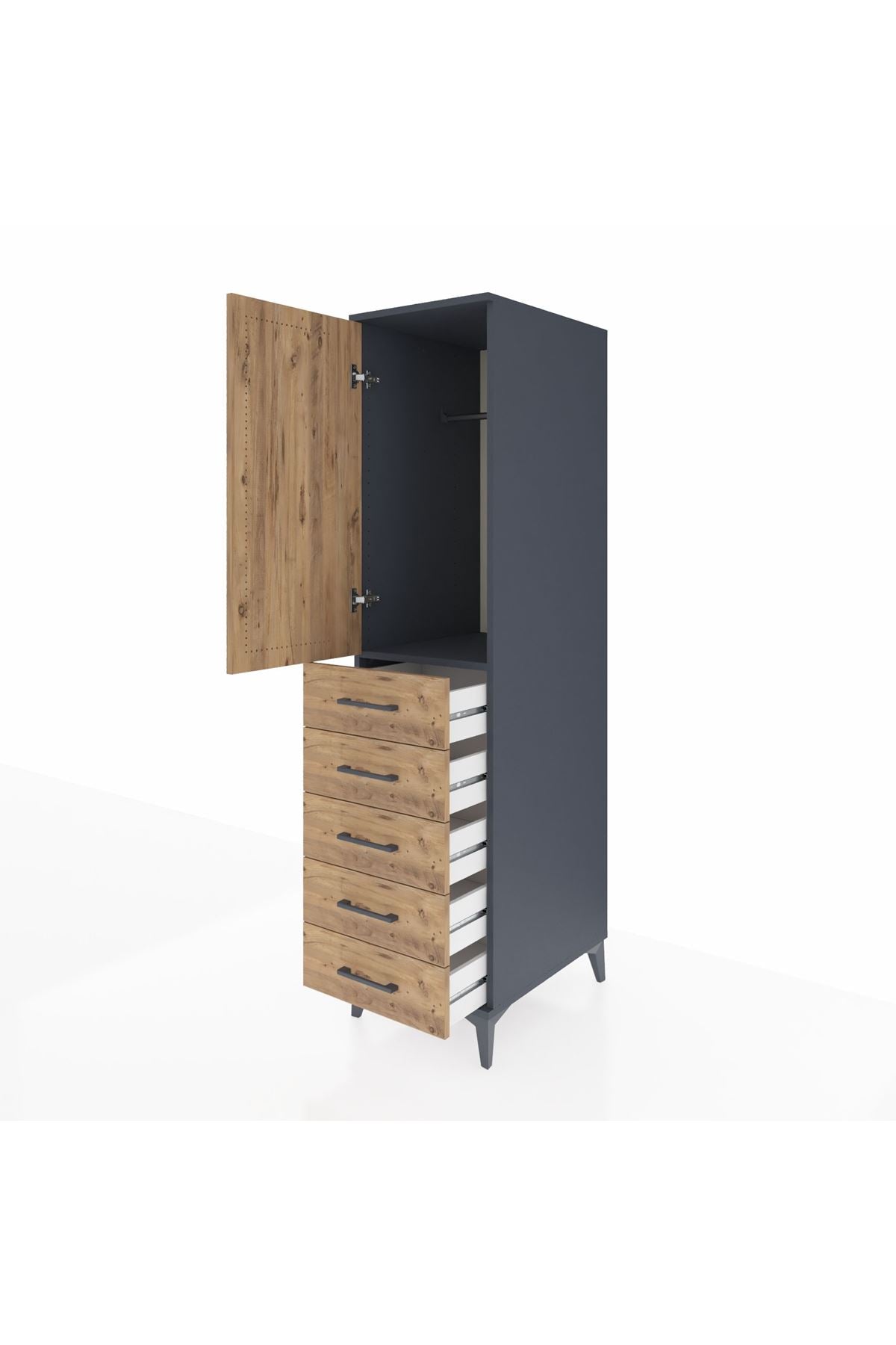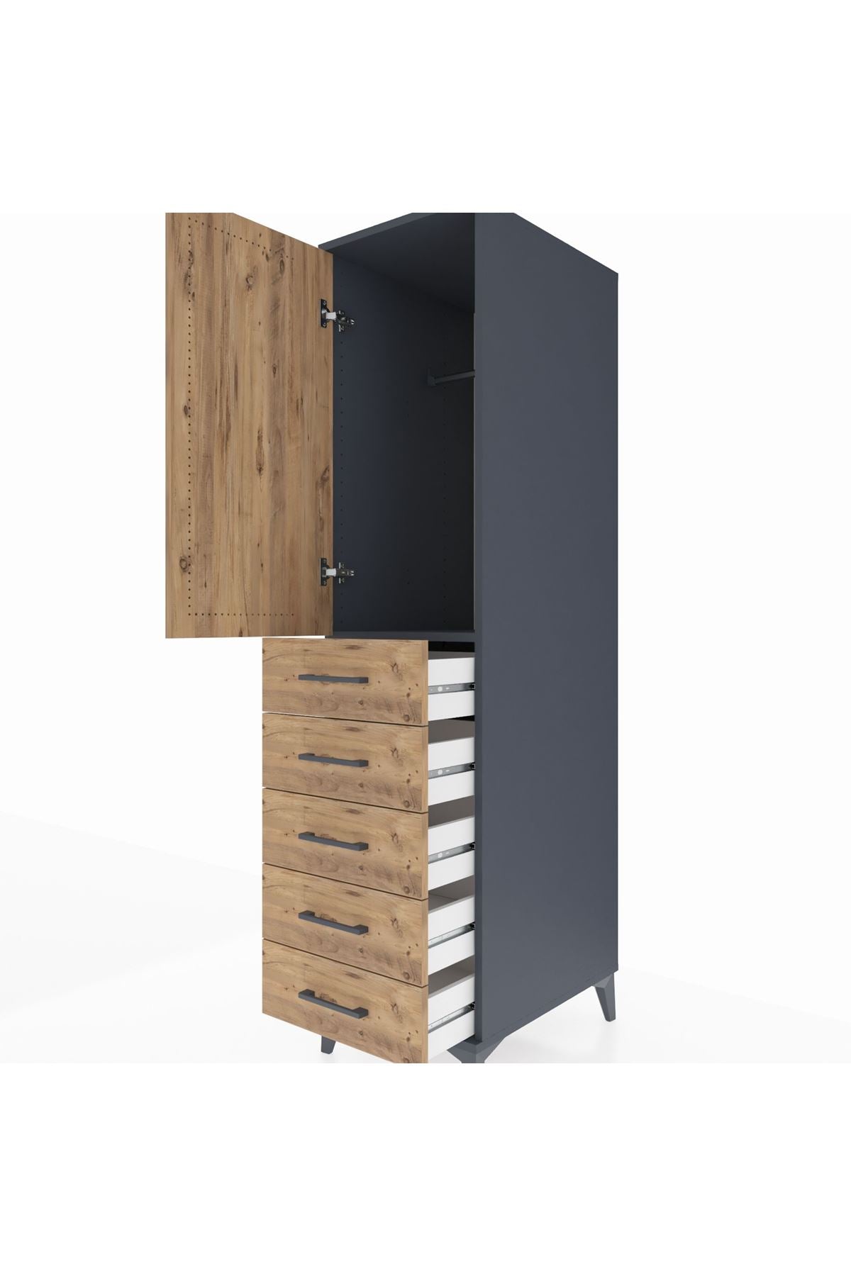 Kronos Dolap Tek Raflı 5 Çekmeceli Tek Askılı 44x59x182 Antrasit-Çam