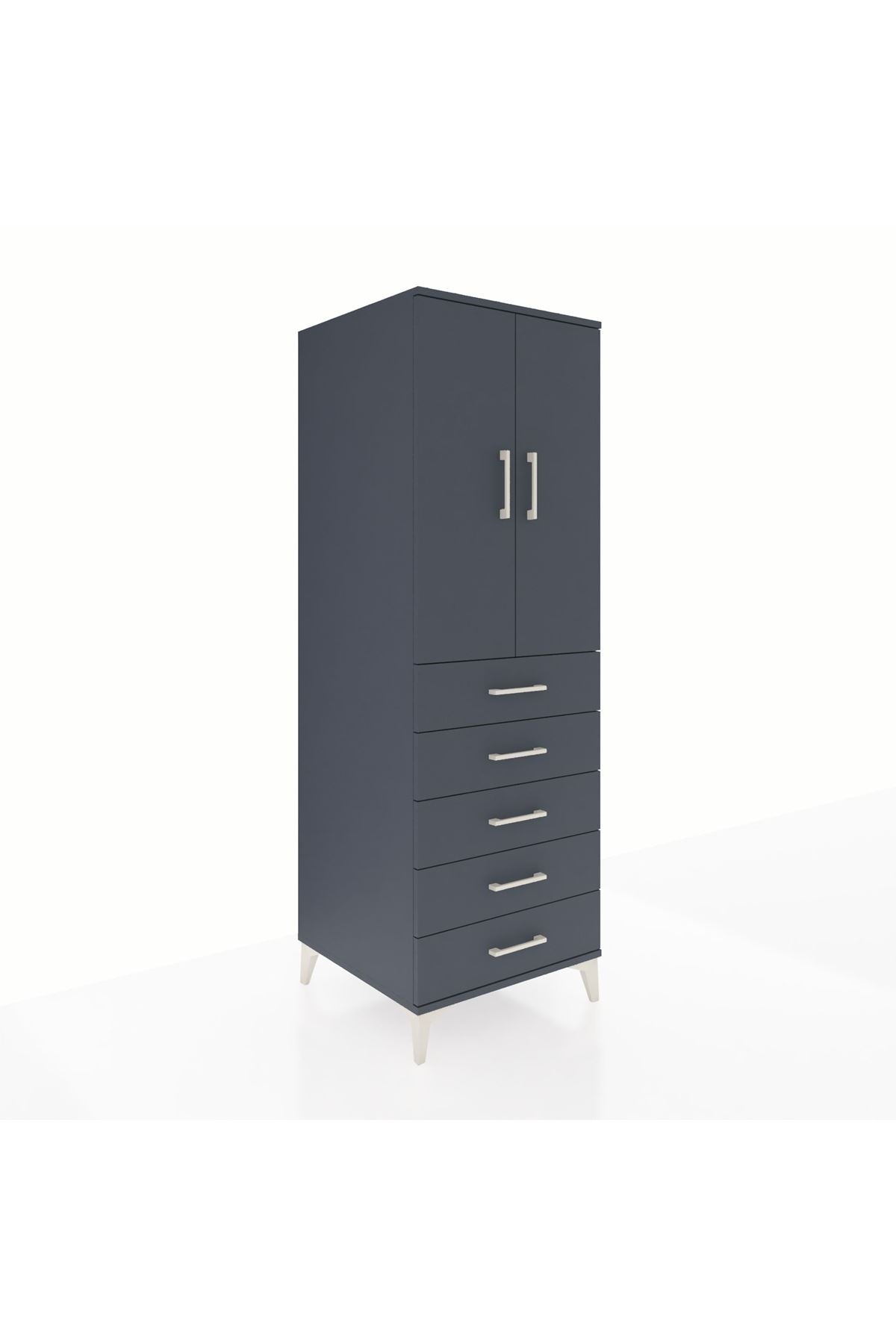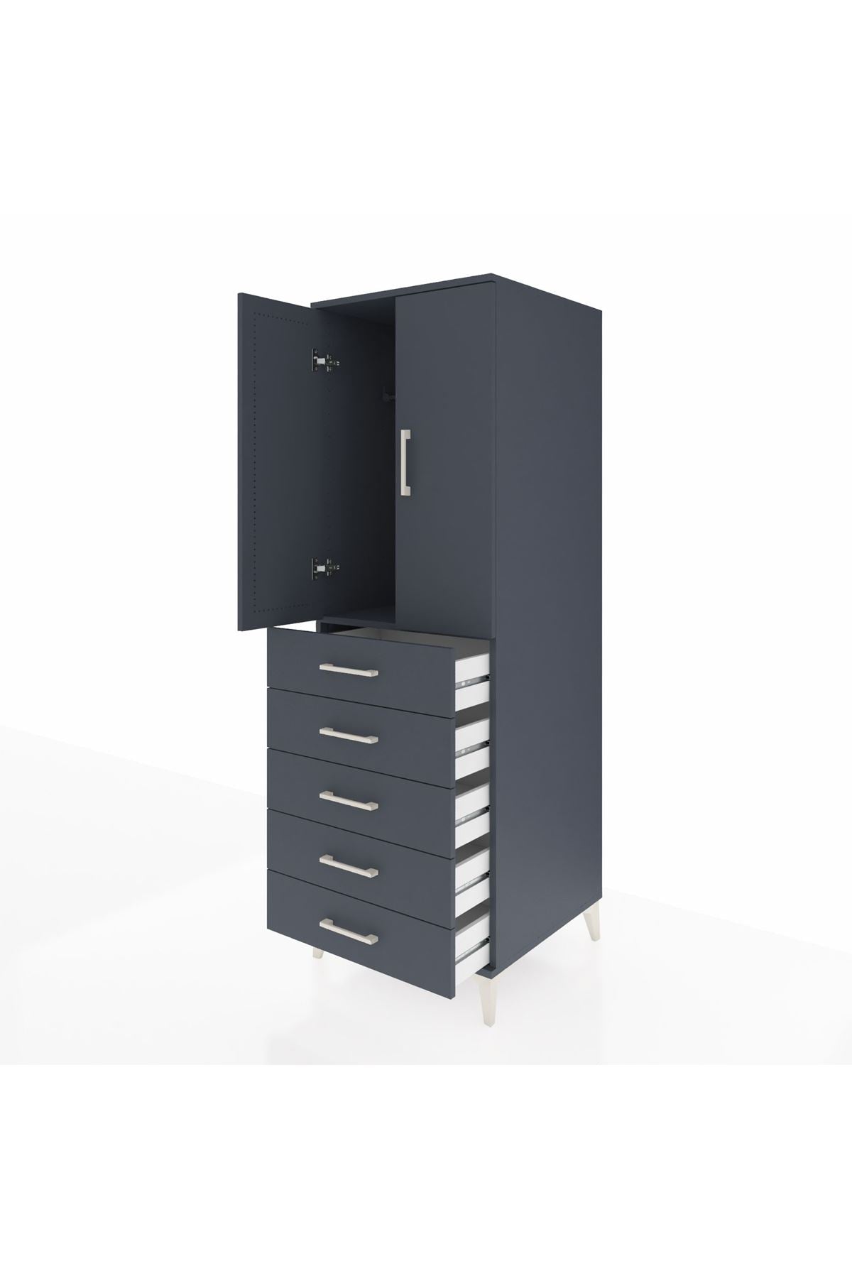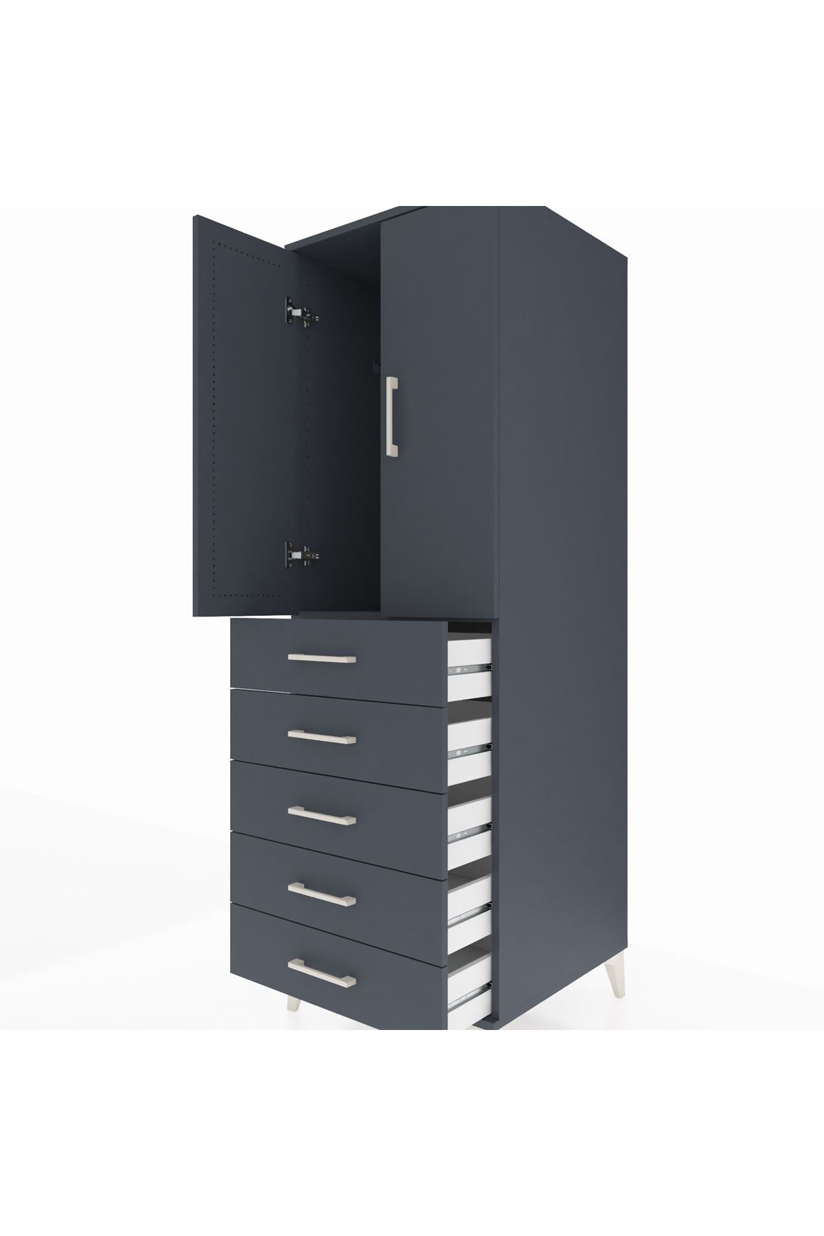 Kronos Dolap Tek Raflı 5 Çekmeceli Tek Askılı 60x59x182 Antrasit-Antrasit