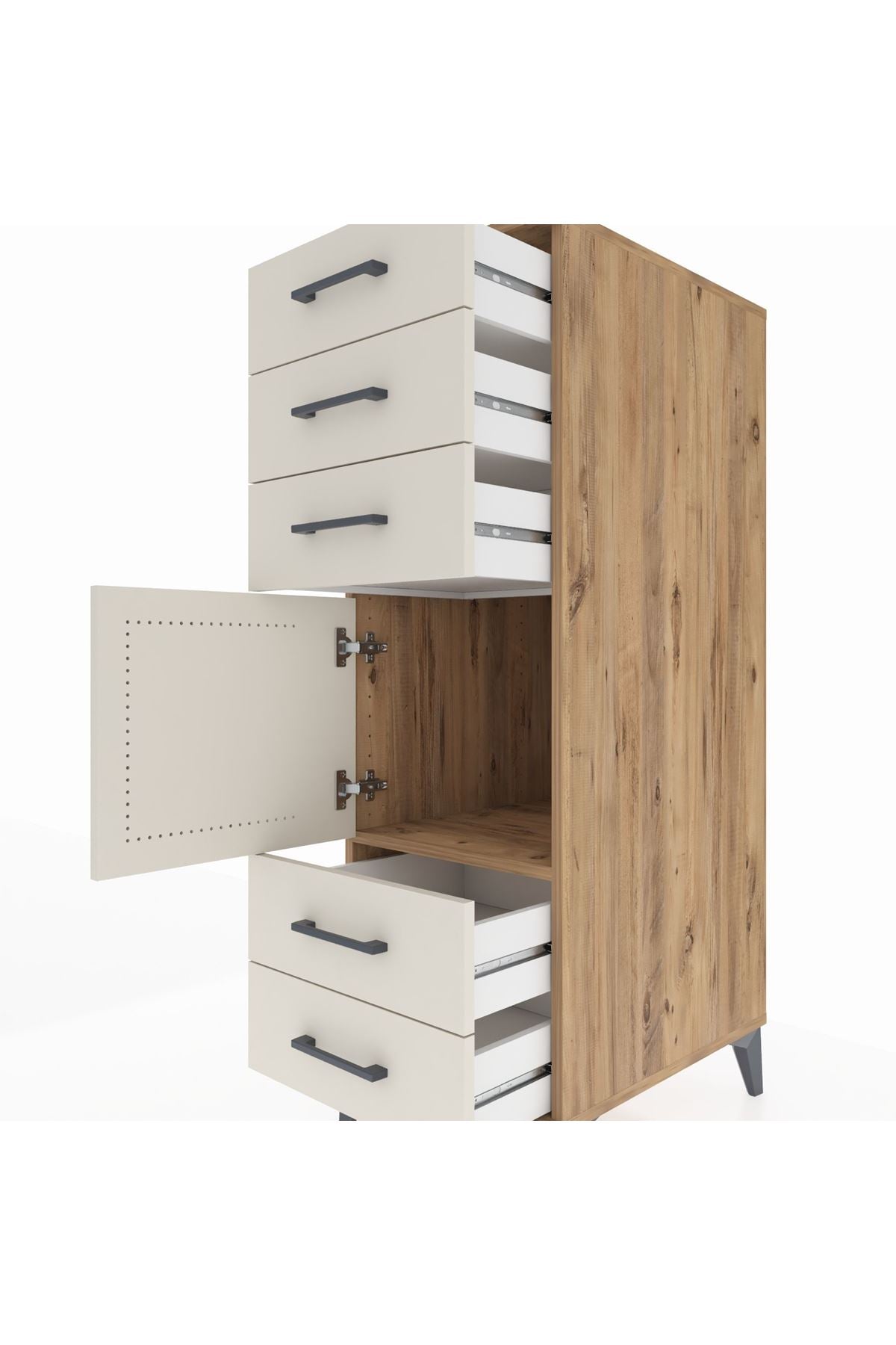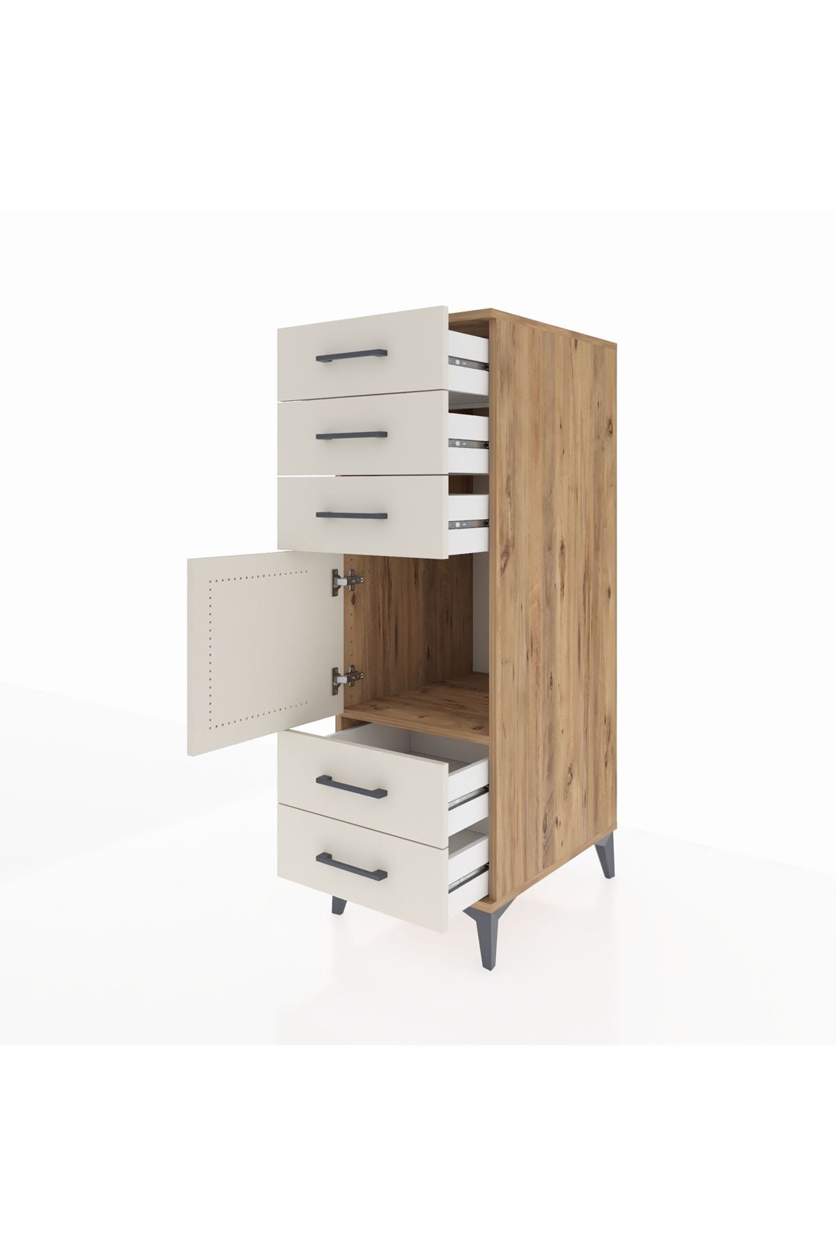Kronos Dolap Tek Raflı 5 Çekmeceli Tek Kapaklı 44x59x134 Çam-Aytaşı