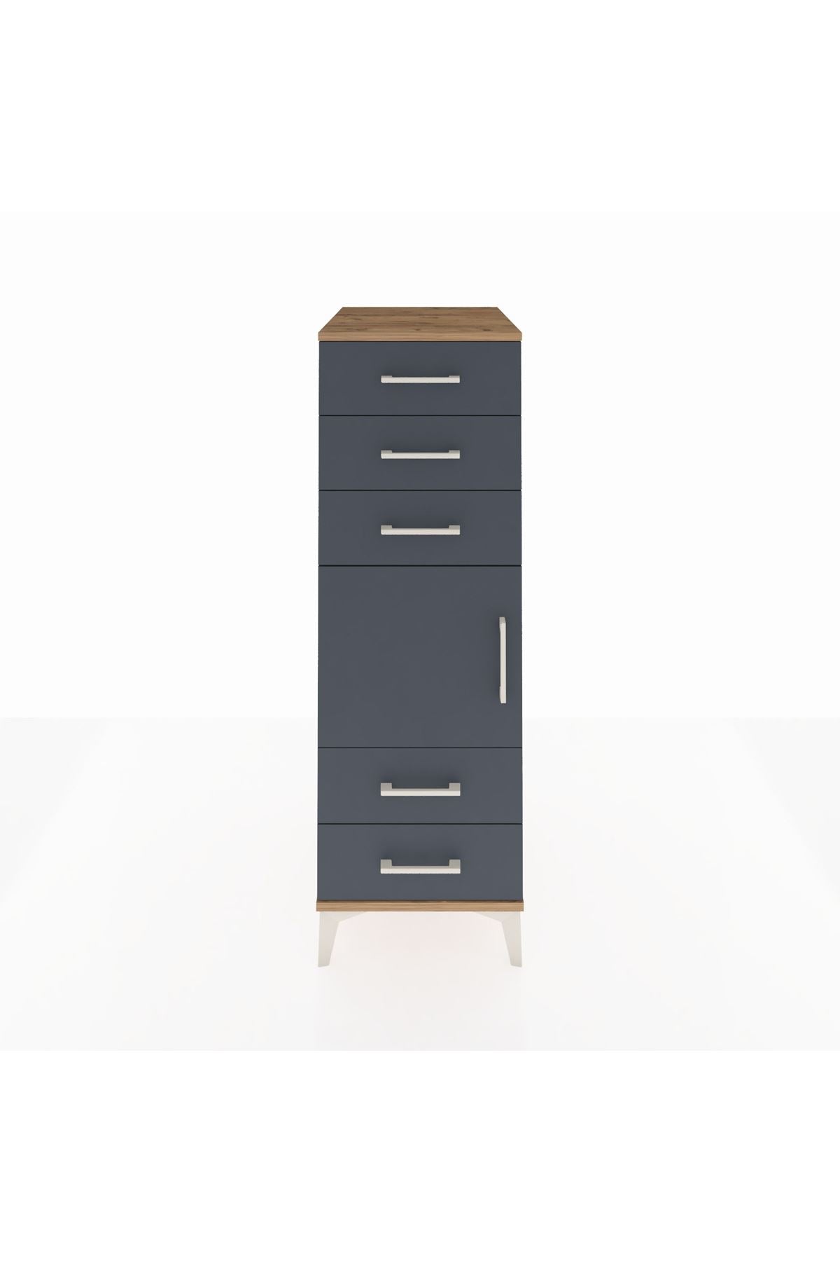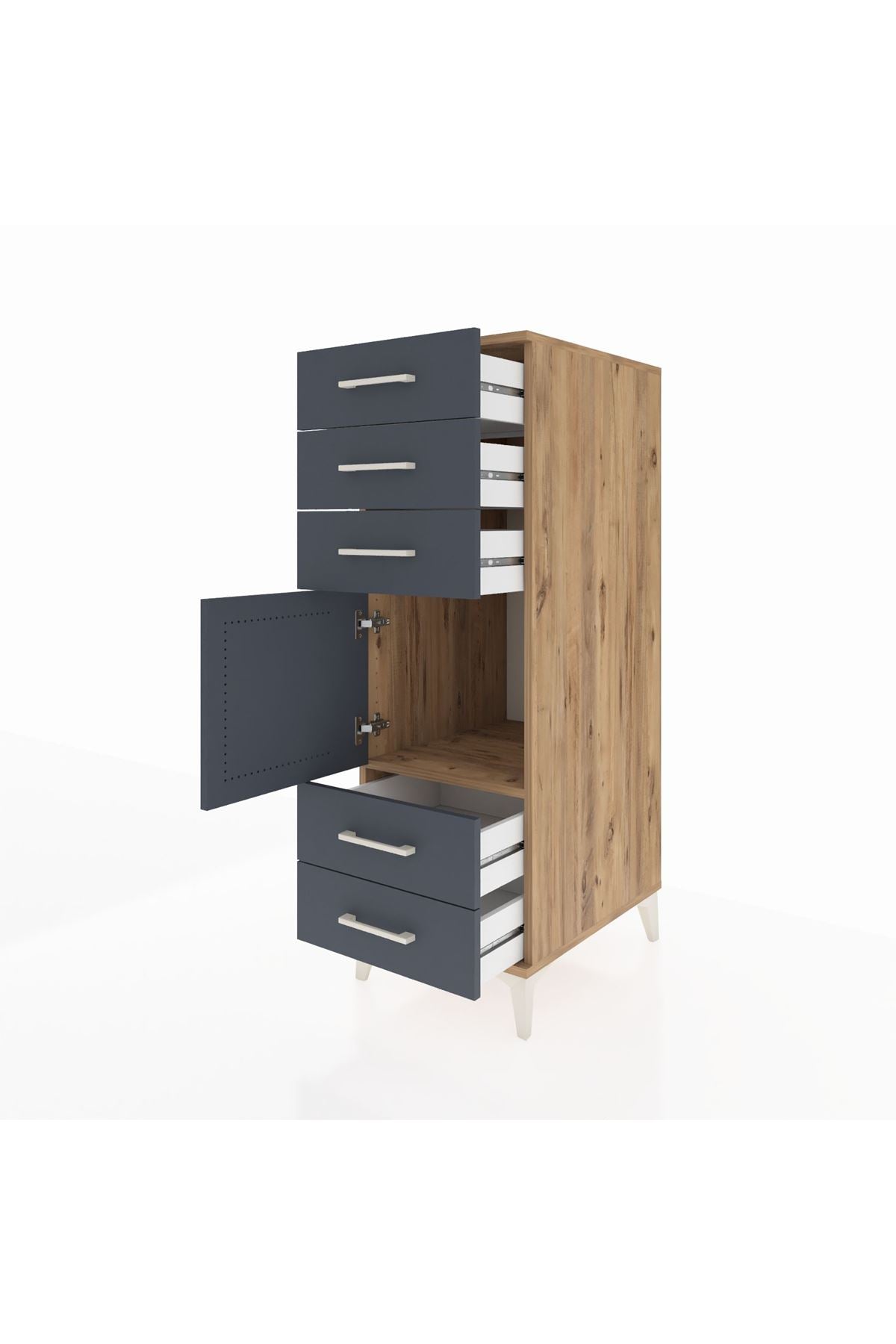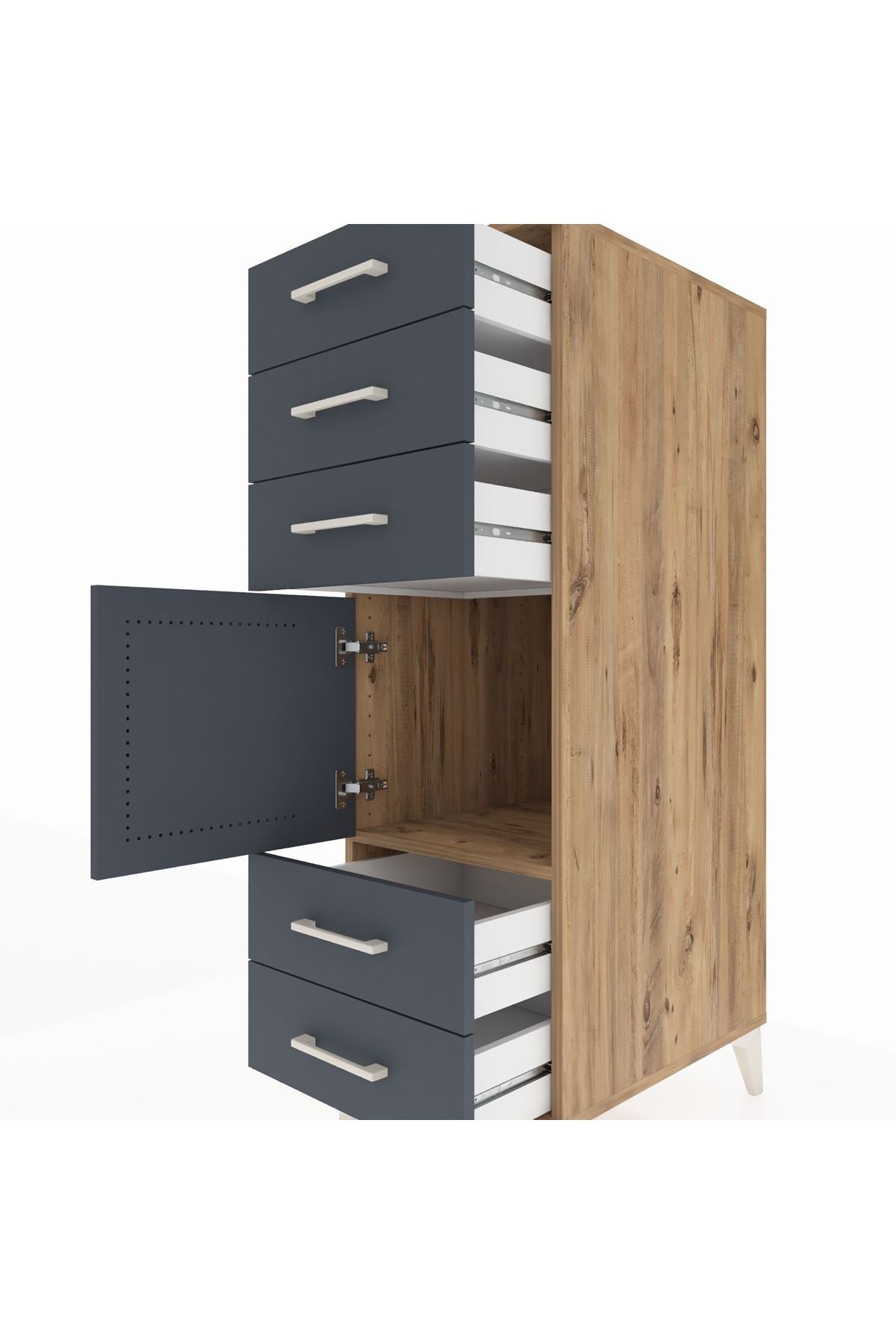 Kronos Dolap Tek Raflı 5 Çekmeceli Tek Kapaklı 44x59x134 Çam-Antrasit