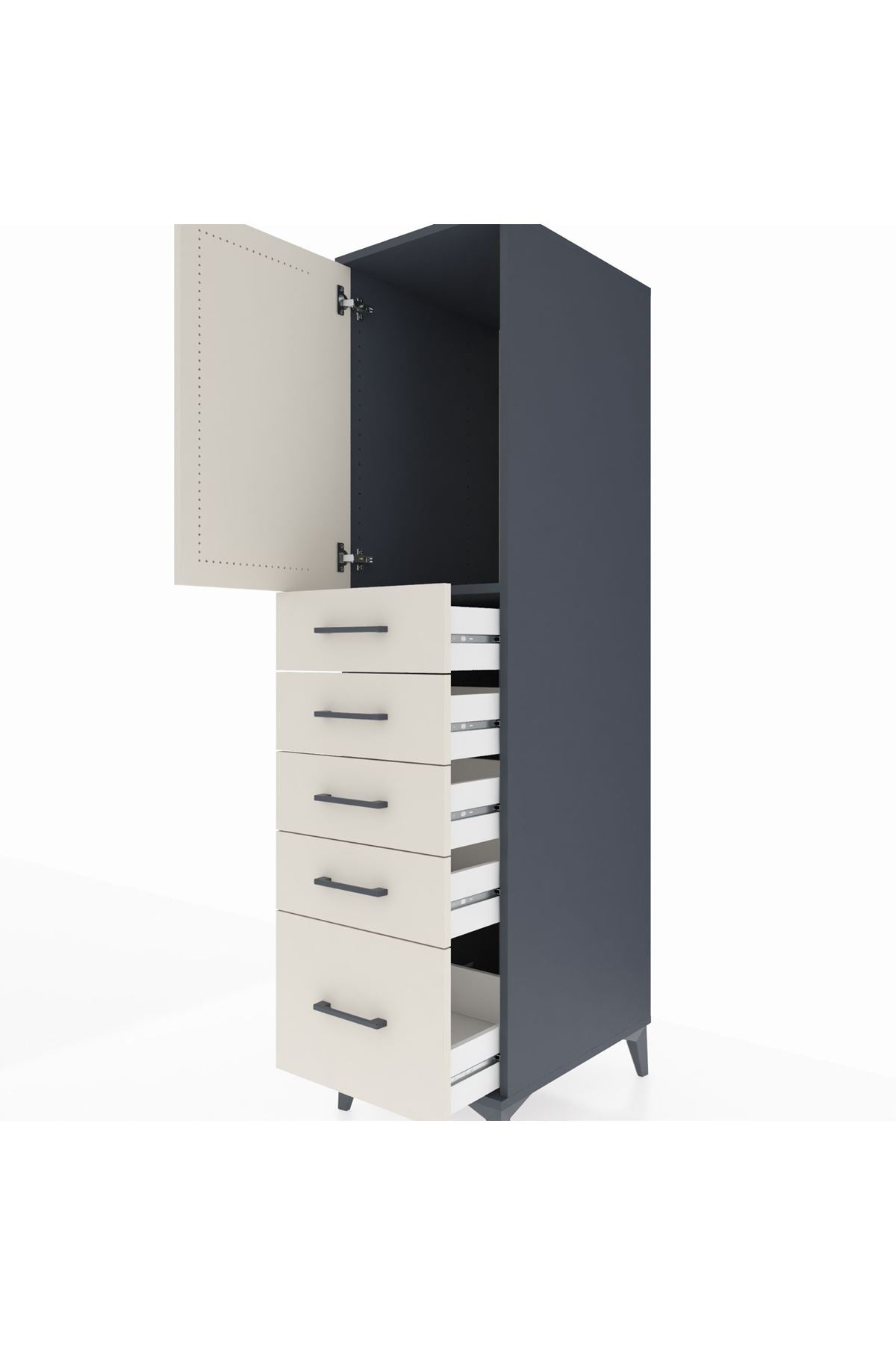 Kronos Dolap Tek Raflı 5 Çekmeceli Tek Kapaklı 44x59x182 Antrasit-Aytaşı