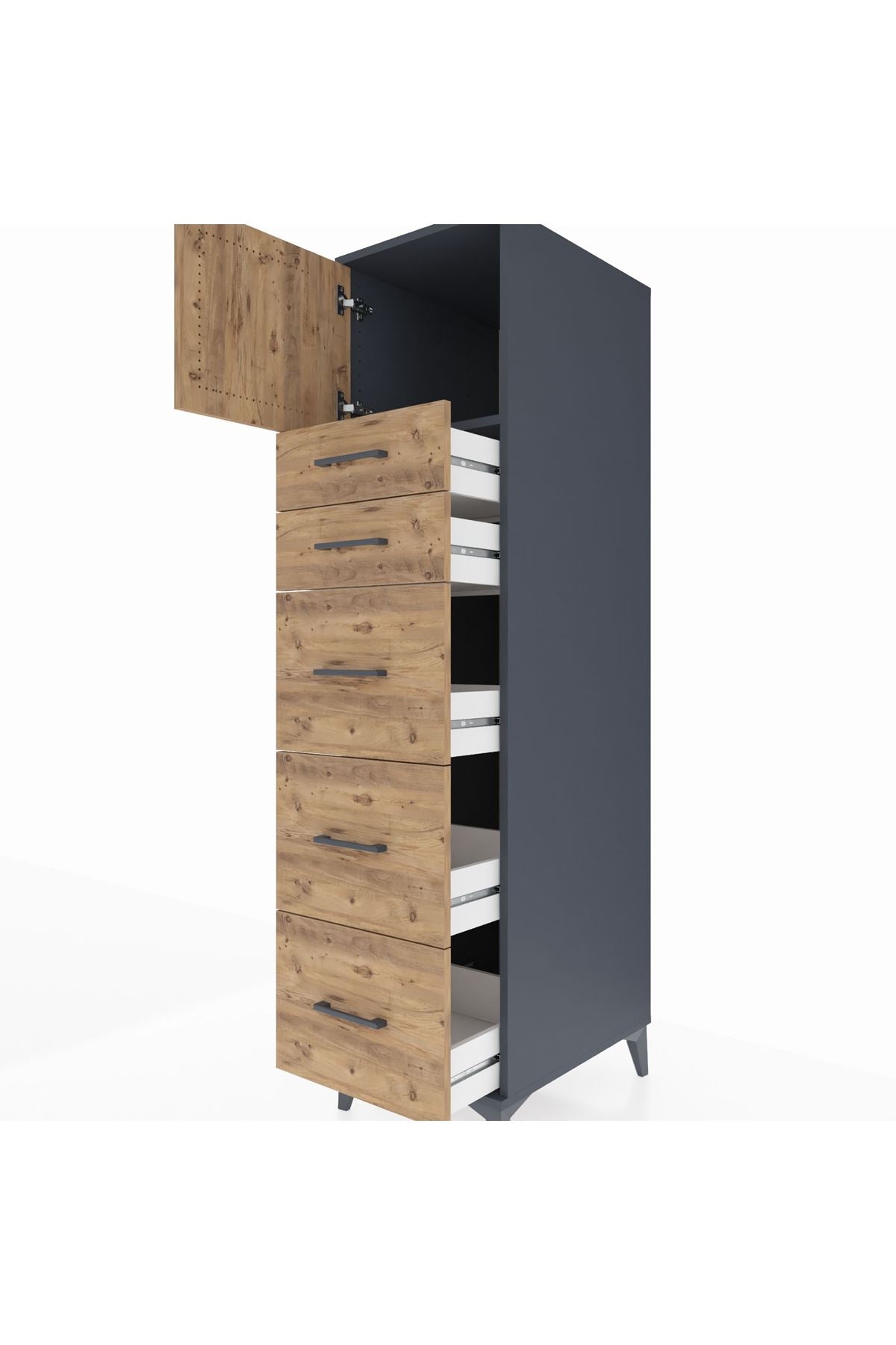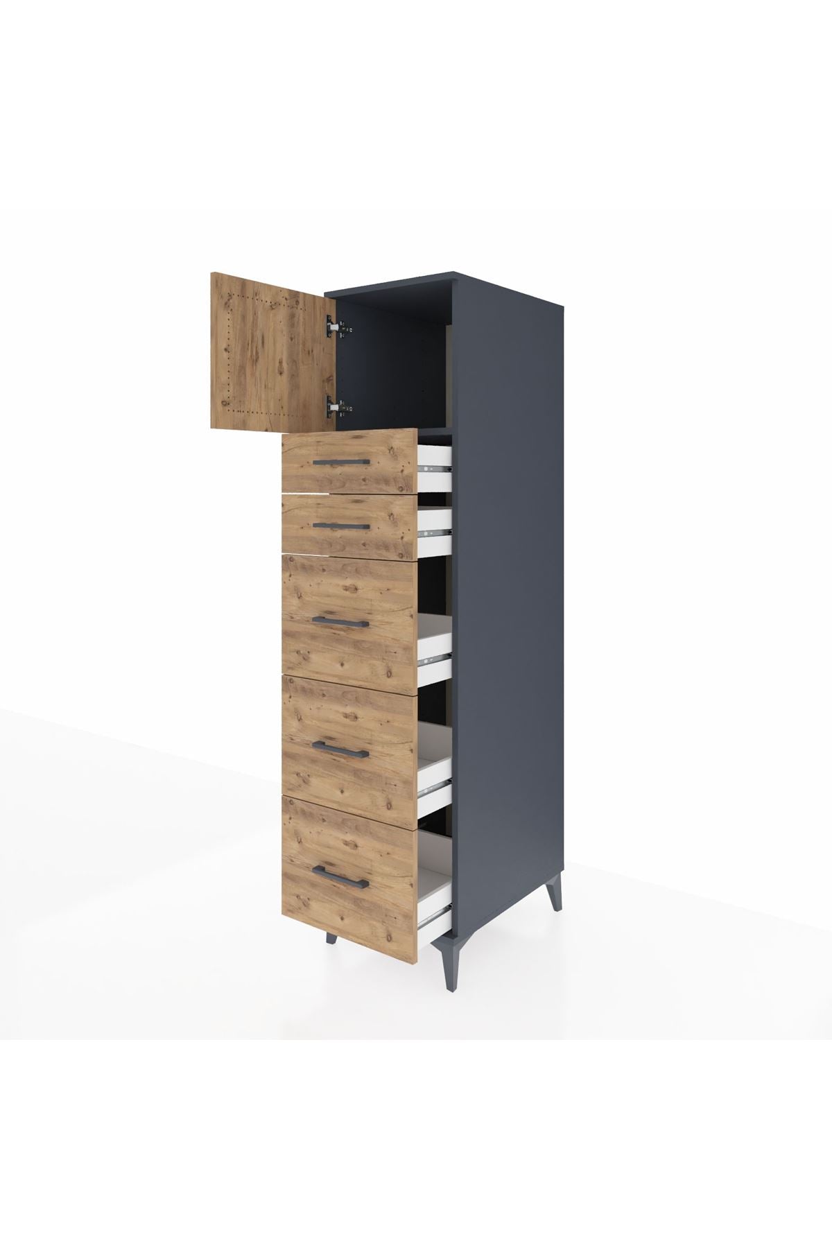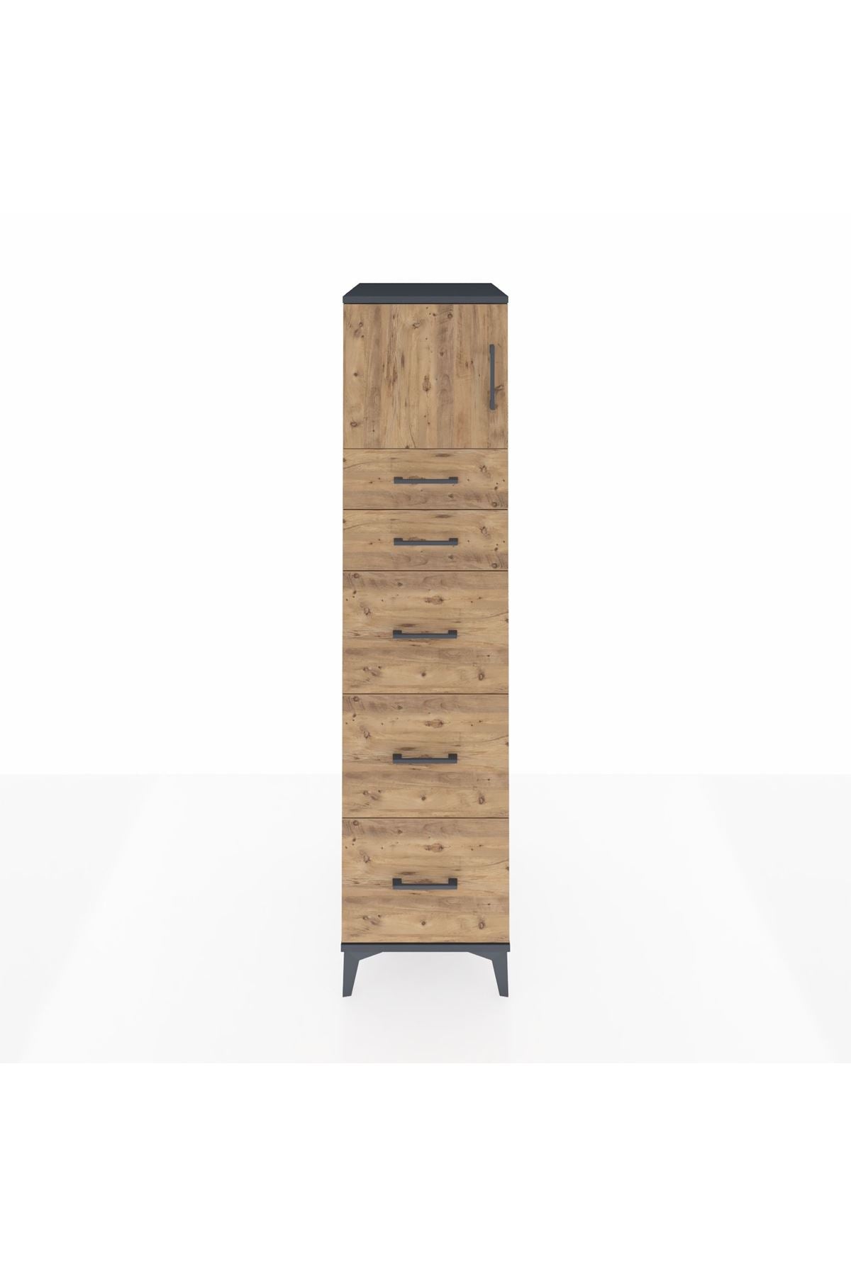 Kronos Dolap Tek Raflı 5 Çekmeceli Tek Kapaklı 44x59x182 Antrasit-Çam