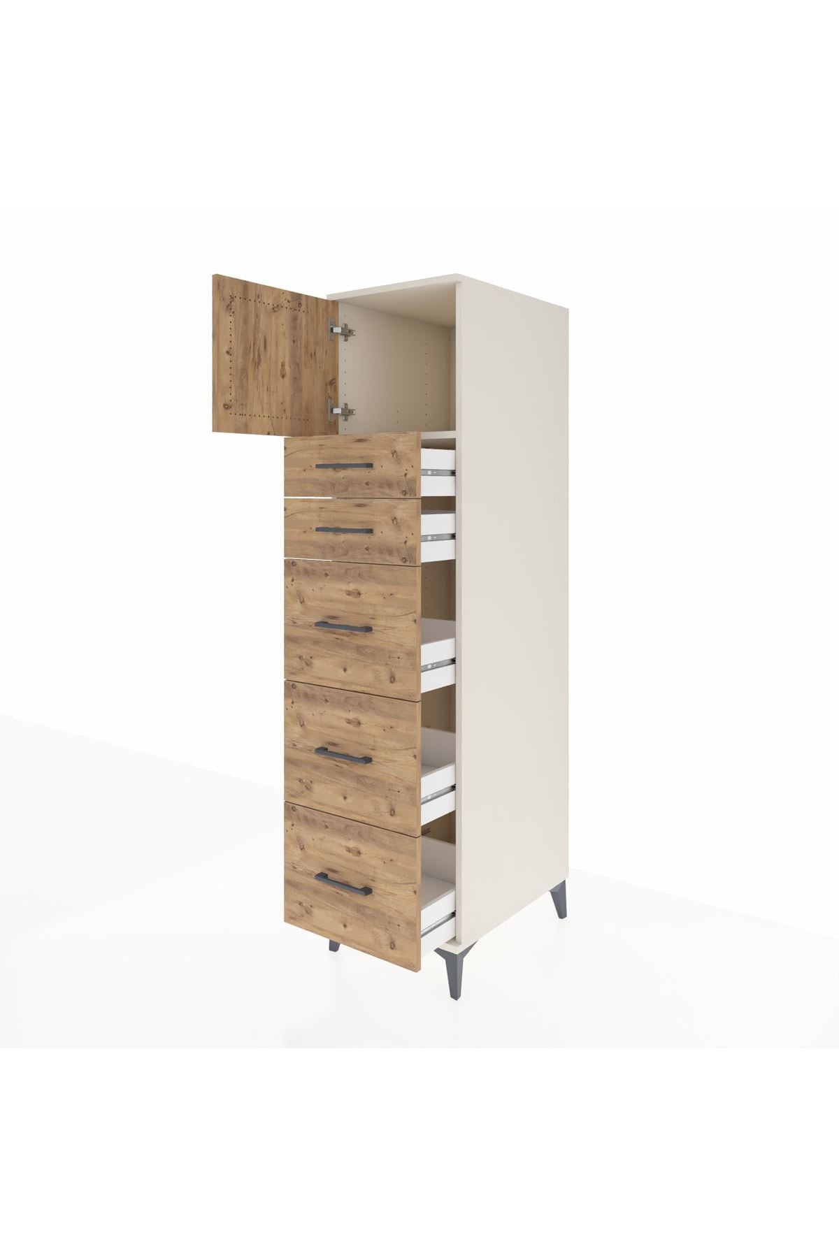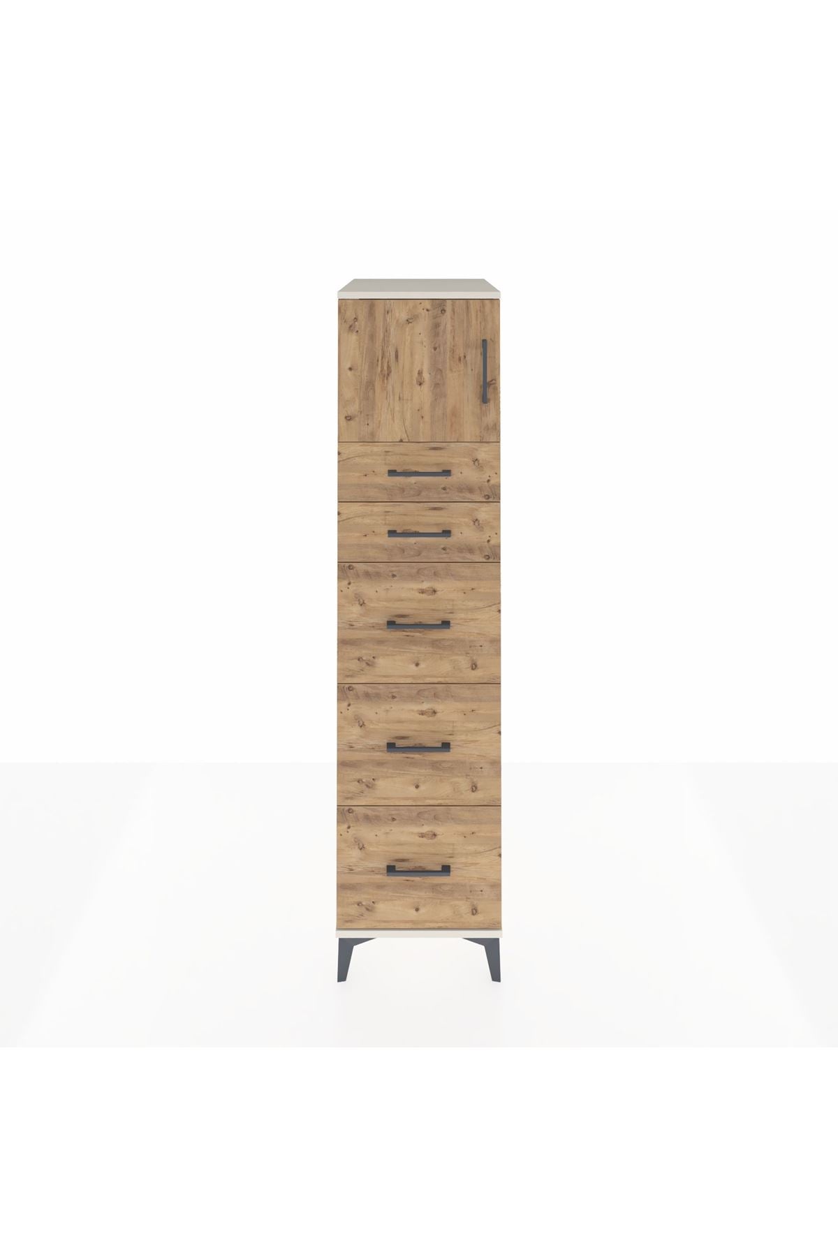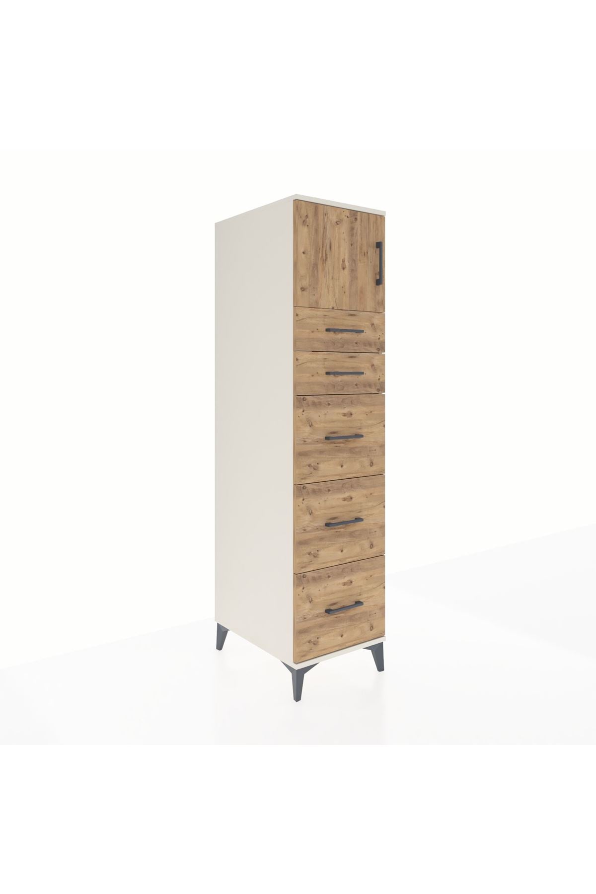 Kronos Dolap Tek Raflı 5 Çekmeceli Tek Kapaklı 44x59x182 Aytaşı-Çam
