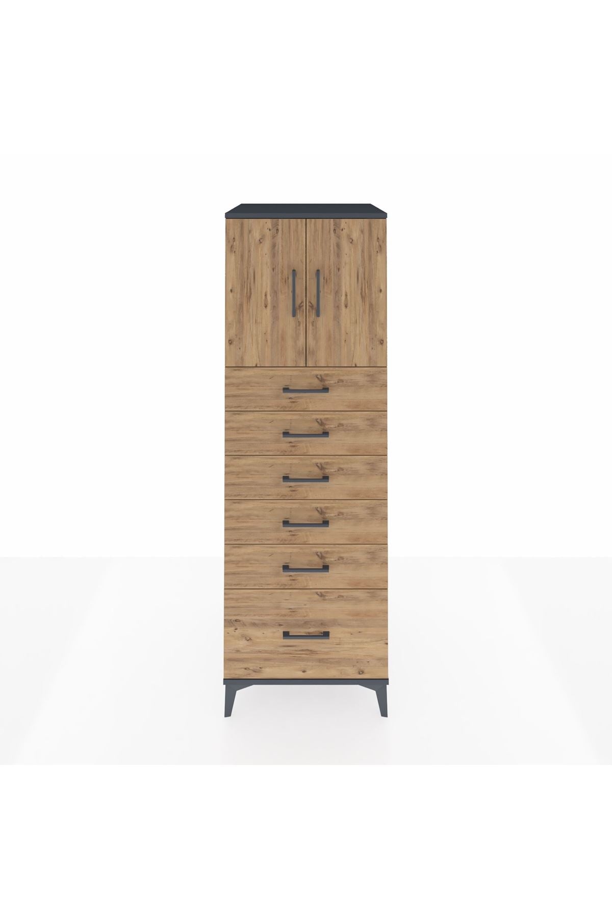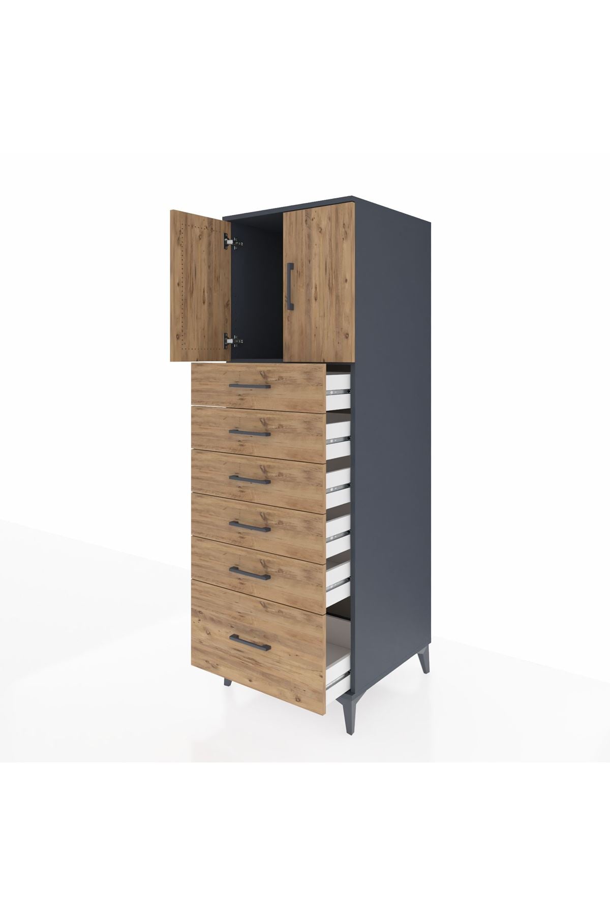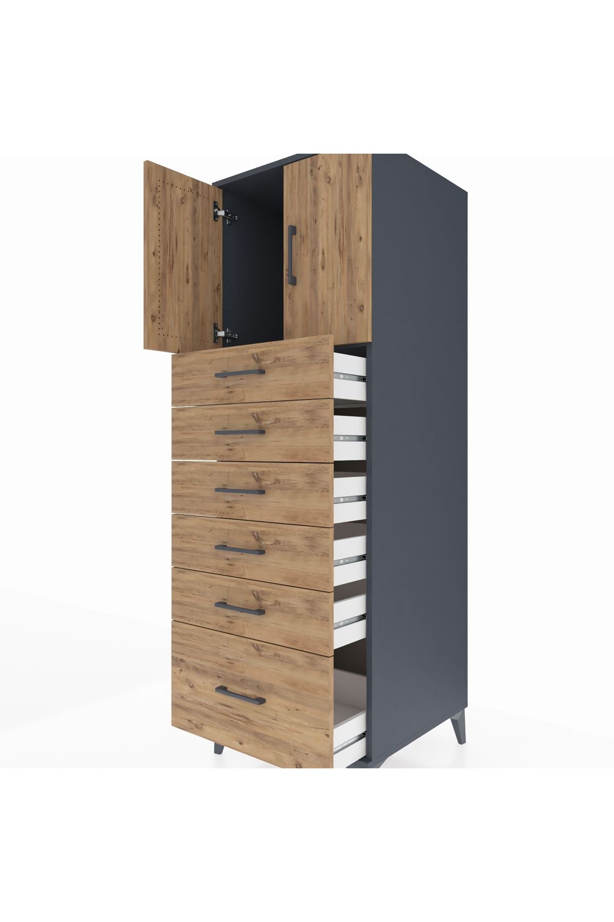 Kronos Dolap Tek Raflı 6 Çekmeceli 2 Kapaklı 60x59x182 Antrasit-Çam