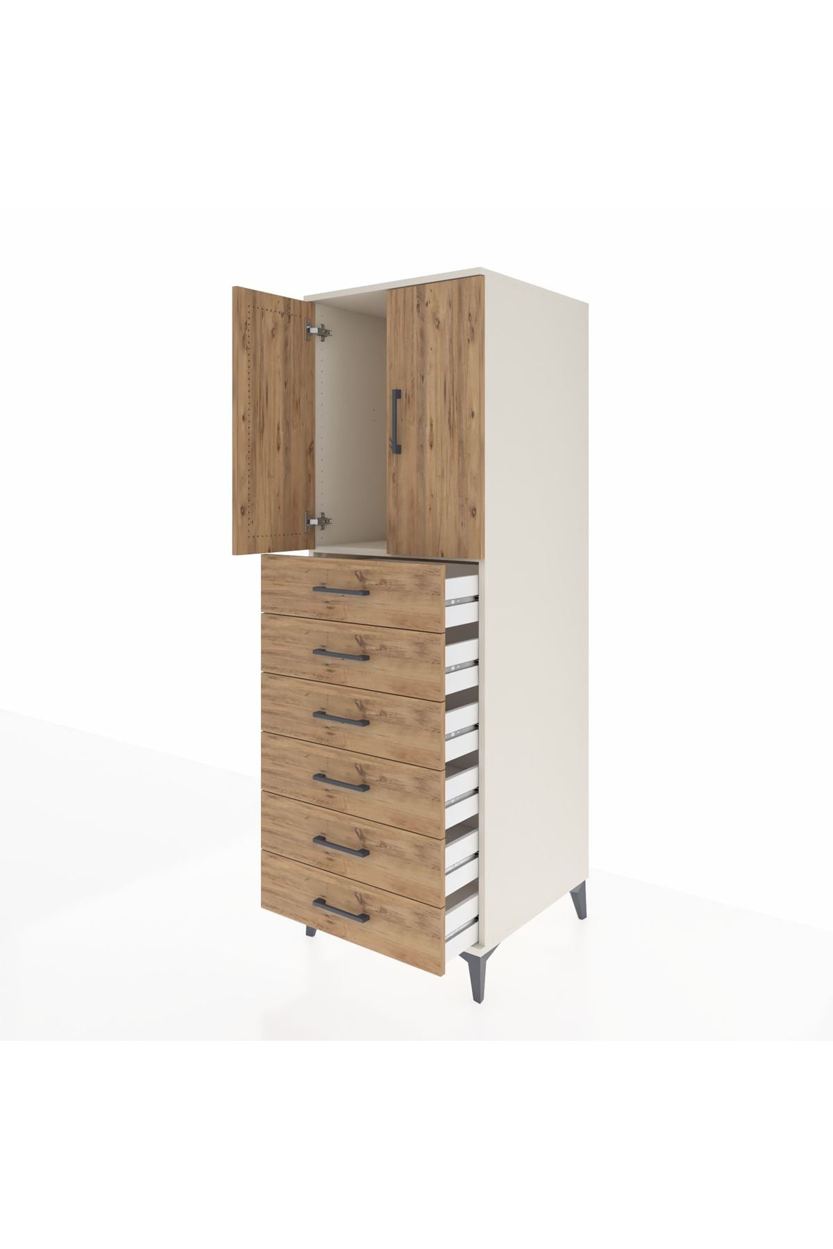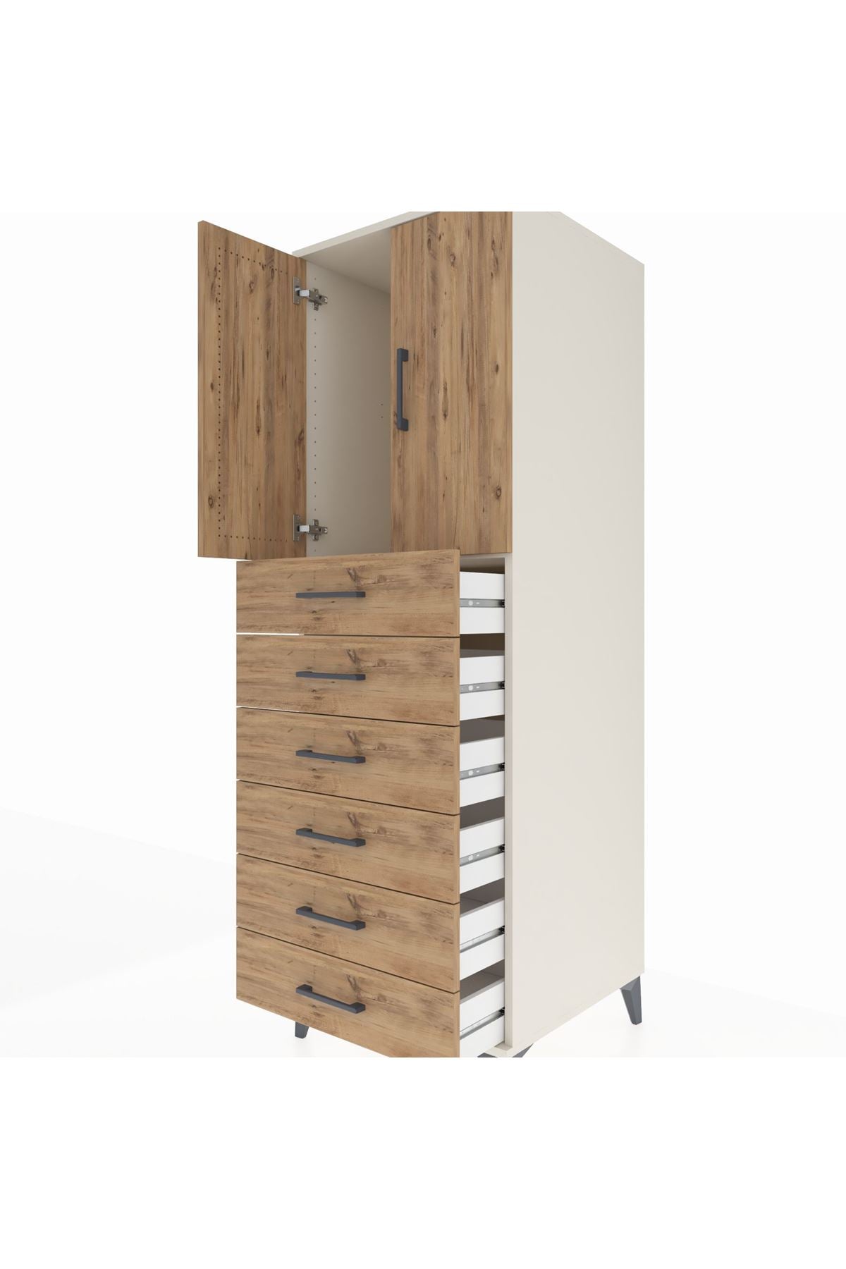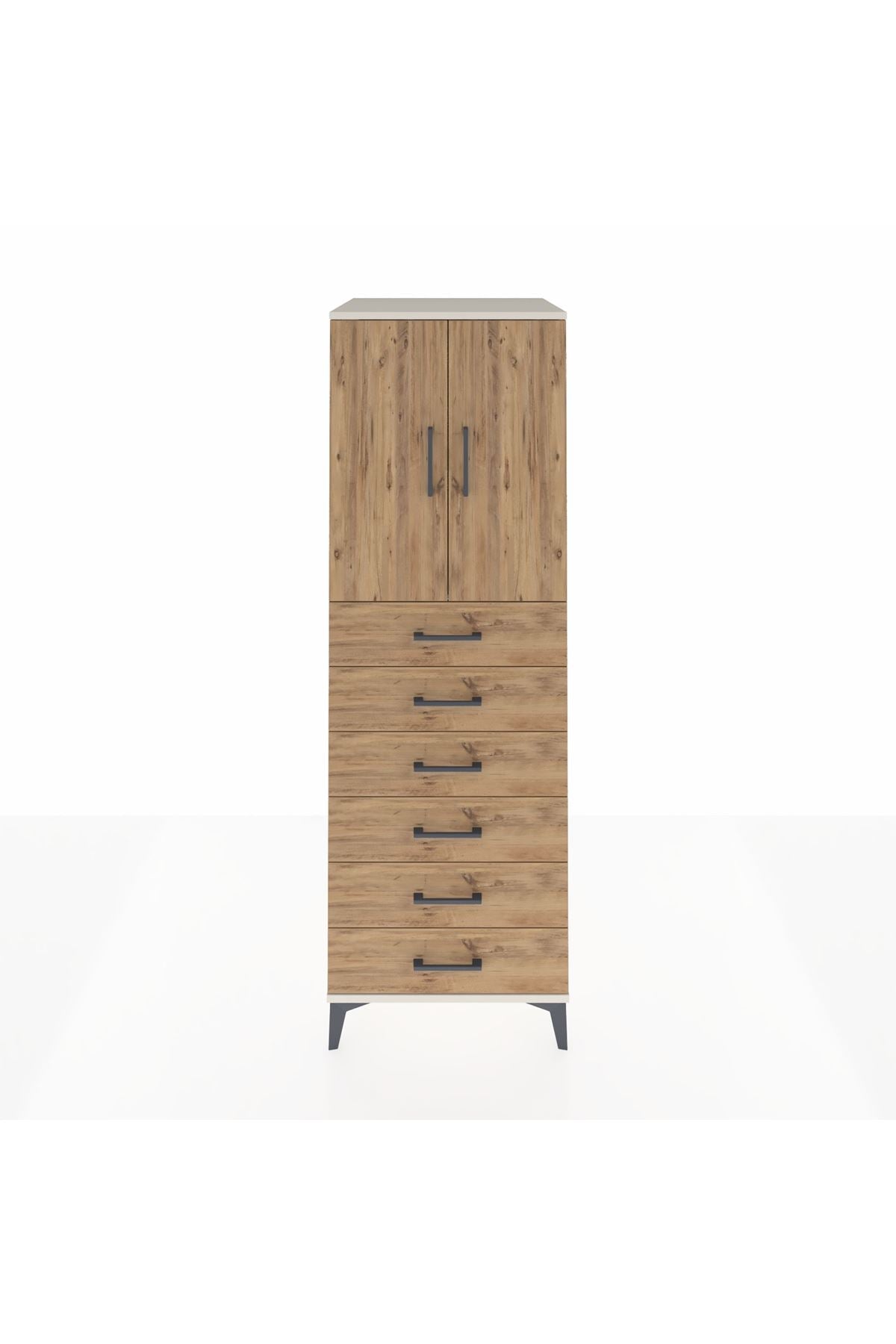 Kronos Dolap Tek Raflı 6 Çekmeceli 2 Kapaklı 60x59x182 Aytaşı-Çam