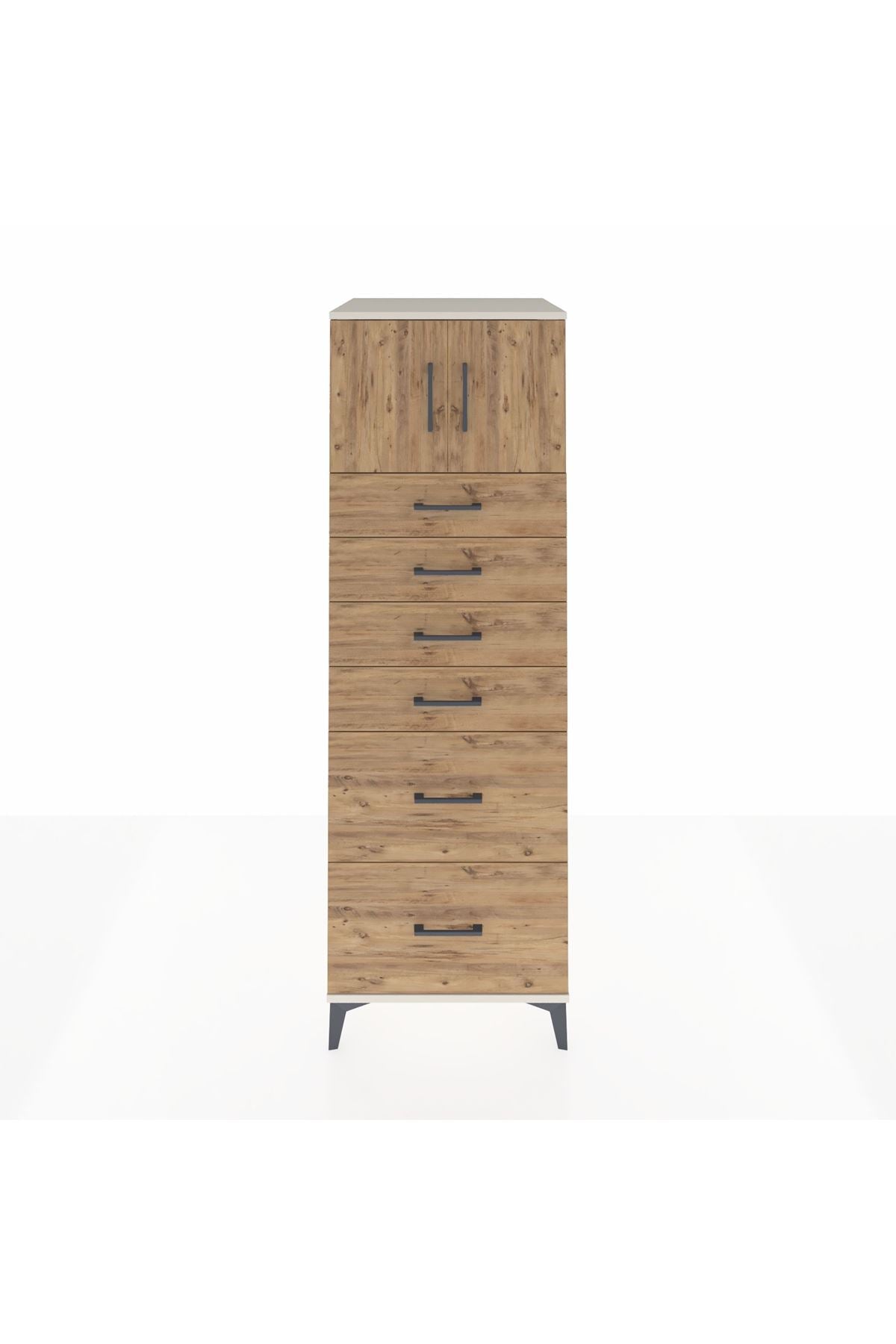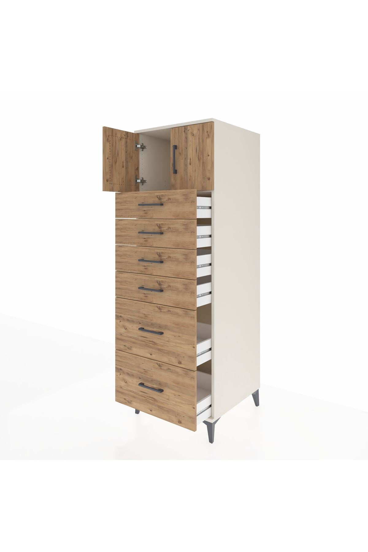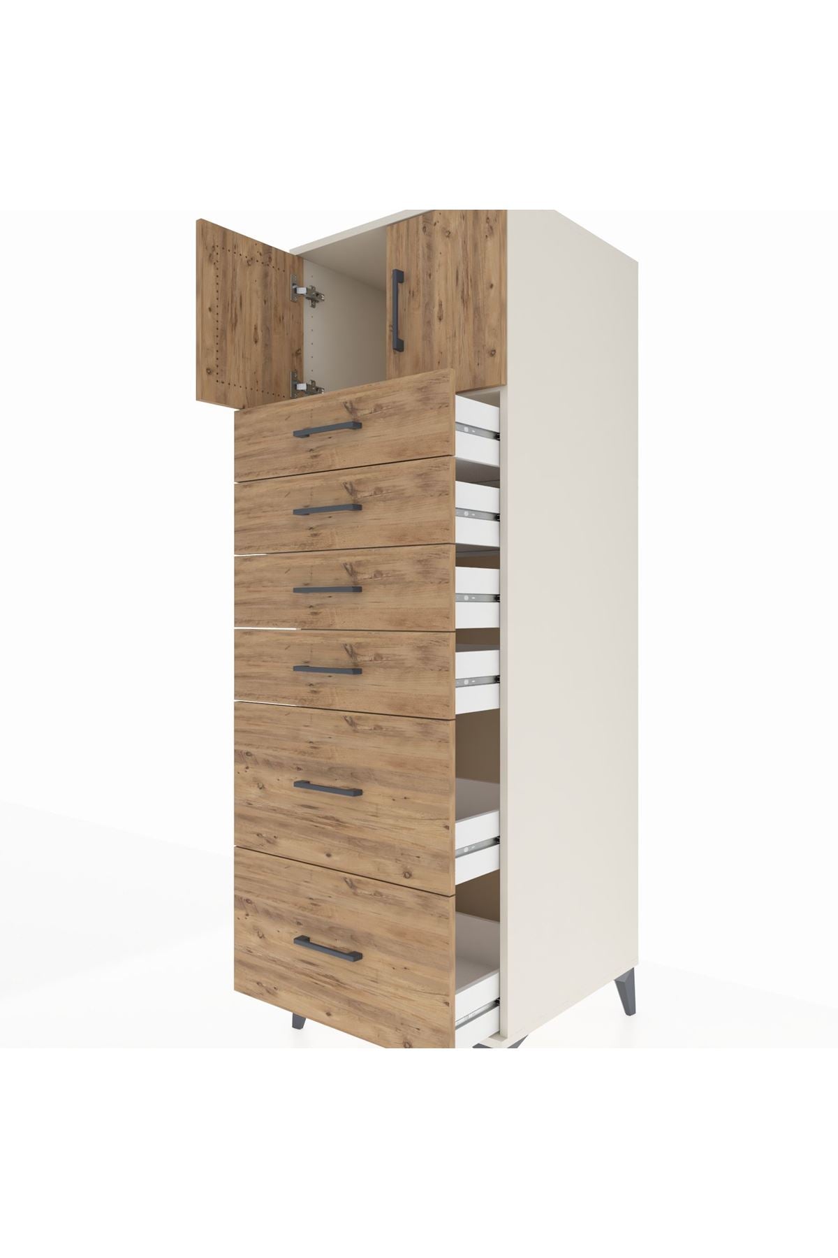 Kronos Dolap Tek Raflı 6 Çekmeceli 2 Kapaklı 60x59x182 Aytaşı-Çam