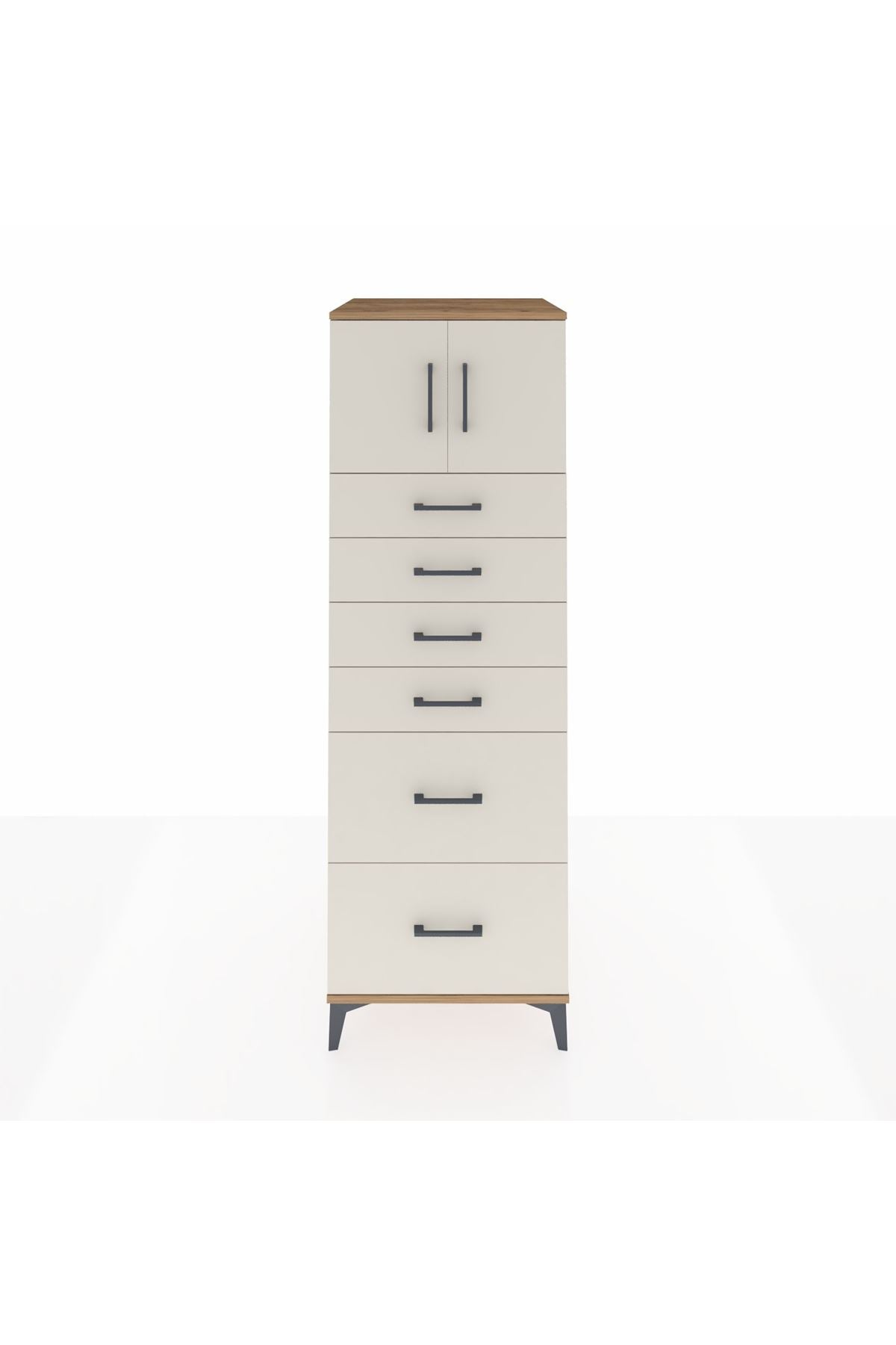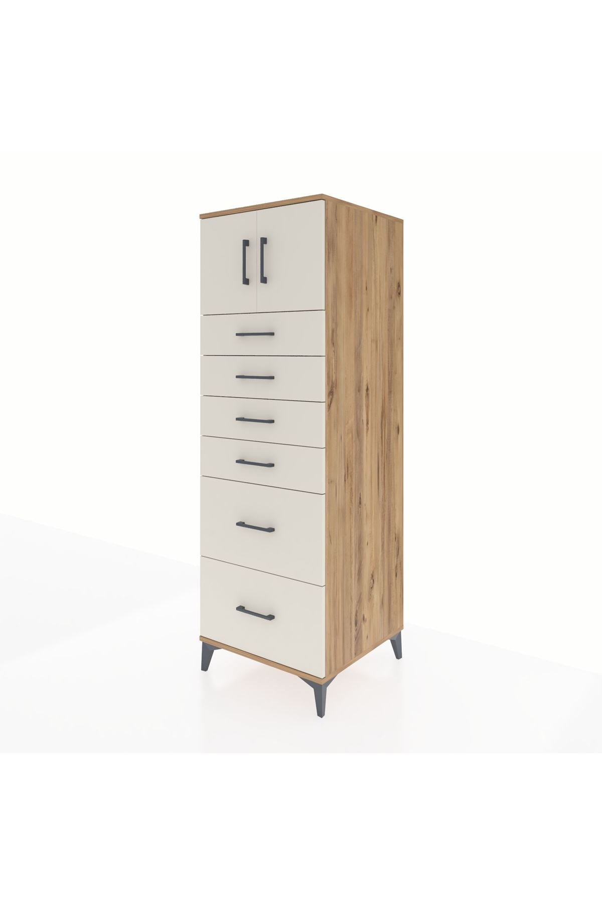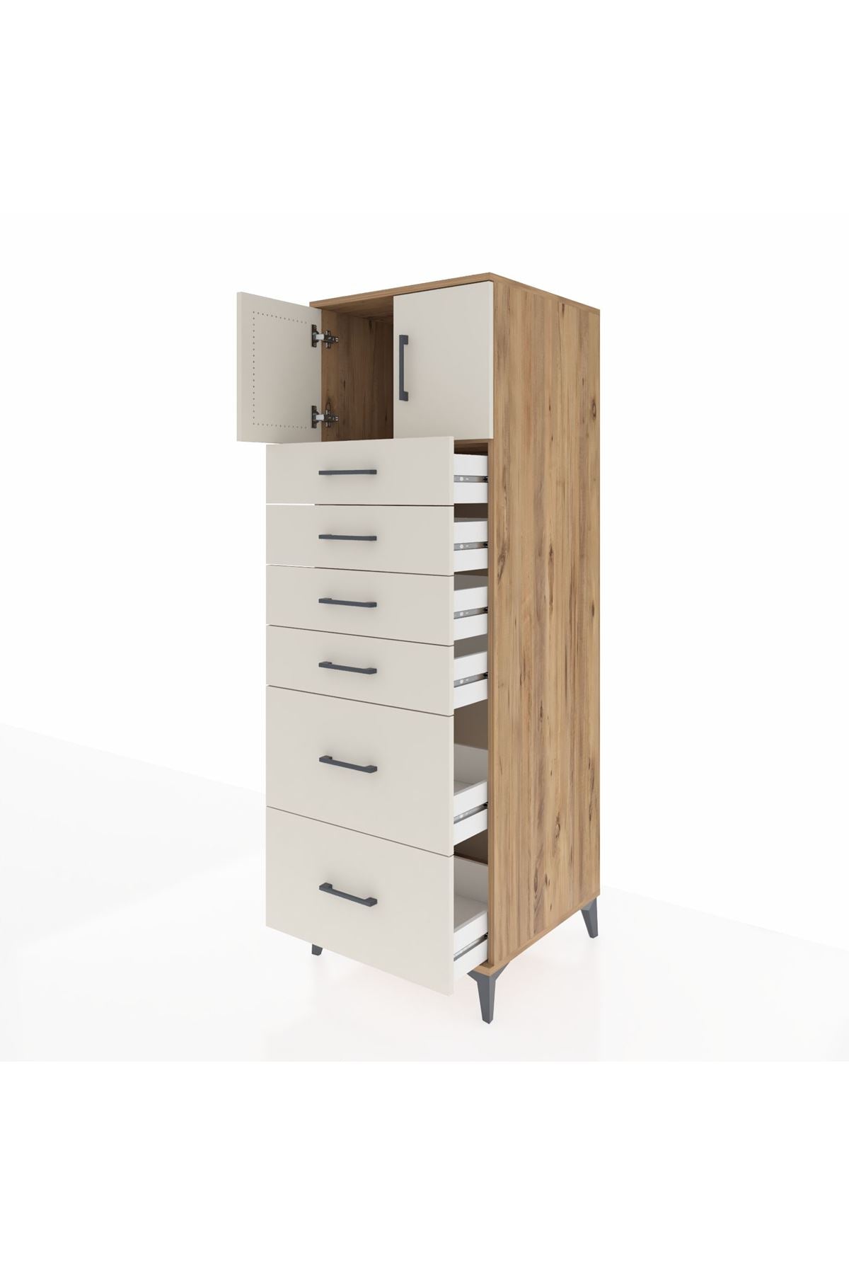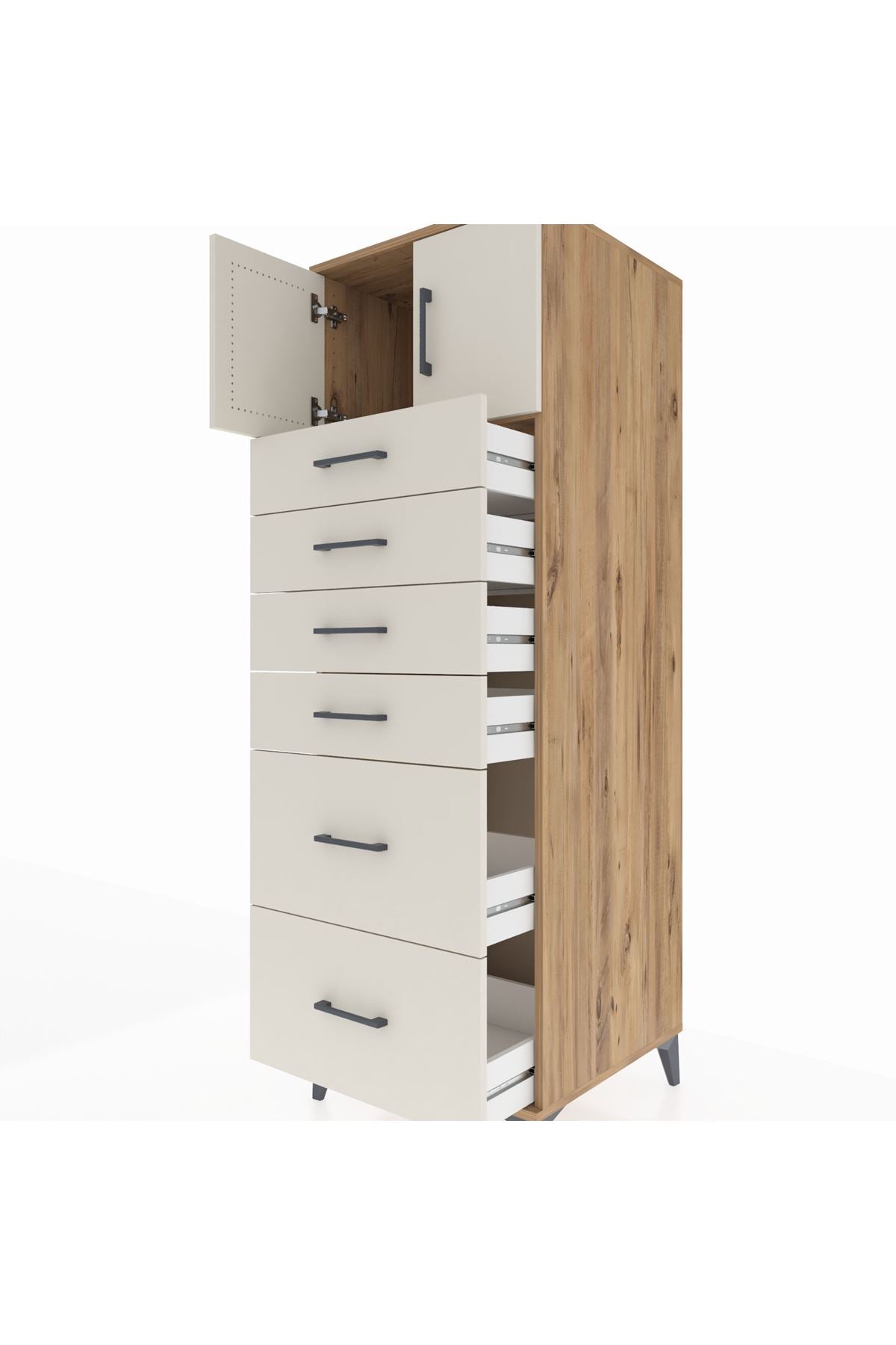 Kronos Dolap Tek Raflı 6 Çekmeceli 2 Kapaklı 60x59x182 Çam-Aytaşı