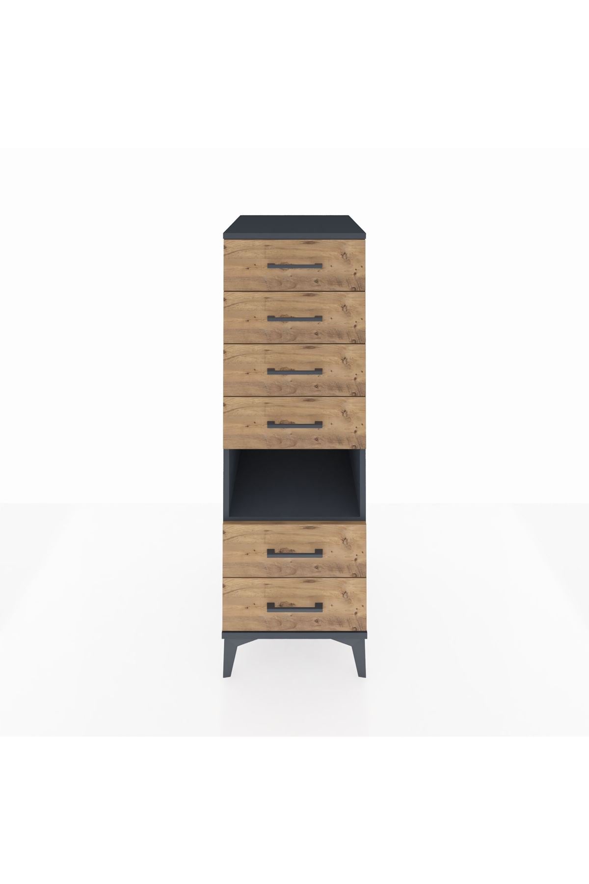 Kronos Dolap Tek Raflı 6 Çekmeceli 44x59x134 Antrasit-Çam