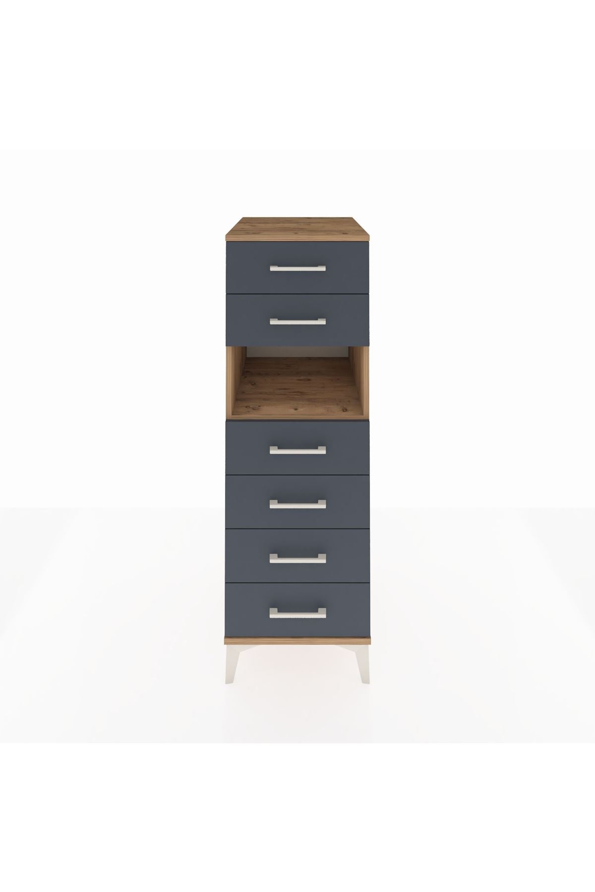 Kronos Dolap Tek Raflı 6 Çekmeceli 44x59x134 Çam-Antrasit