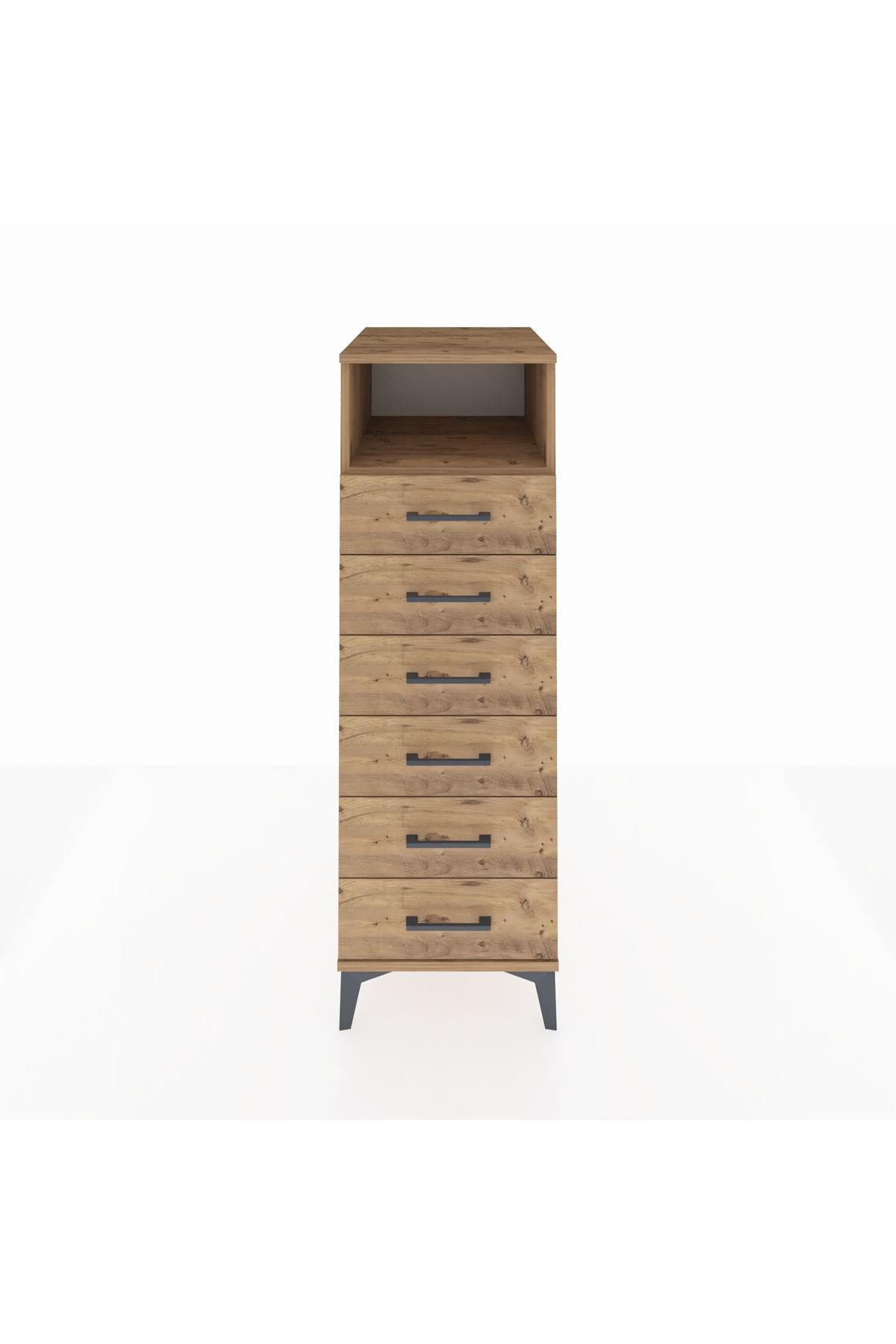 Kronos Dolap Tek Raflı 6 Çekmeceli 44x59x134 Çam-Çam