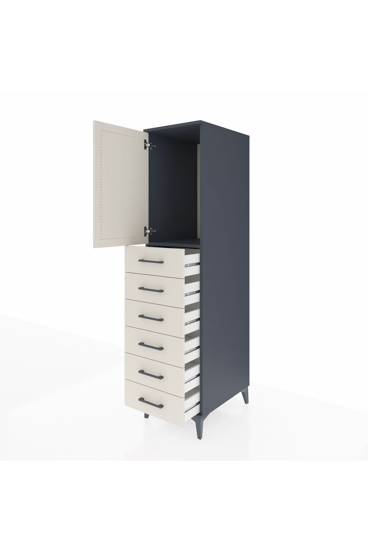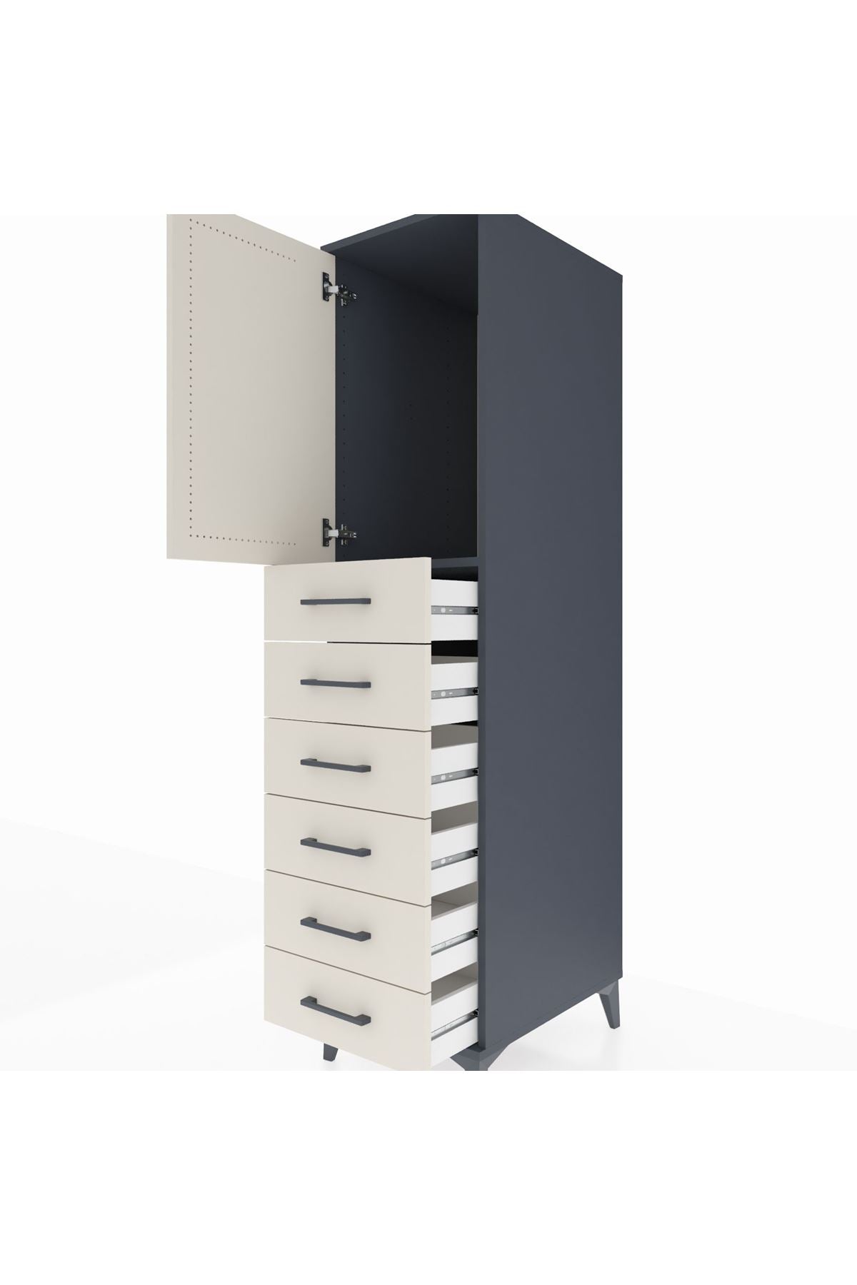 Kronos Dolap Tek Raflı 6 Çekmeceli Tek Kapaklı 44x59x182 Antrasit-Aytaşı