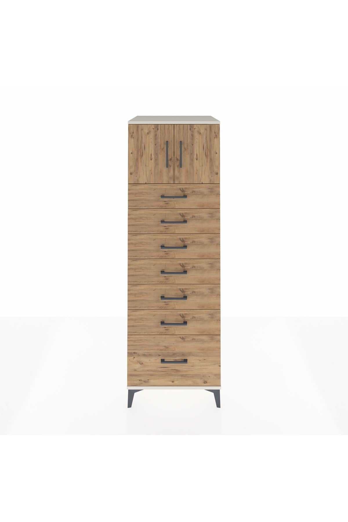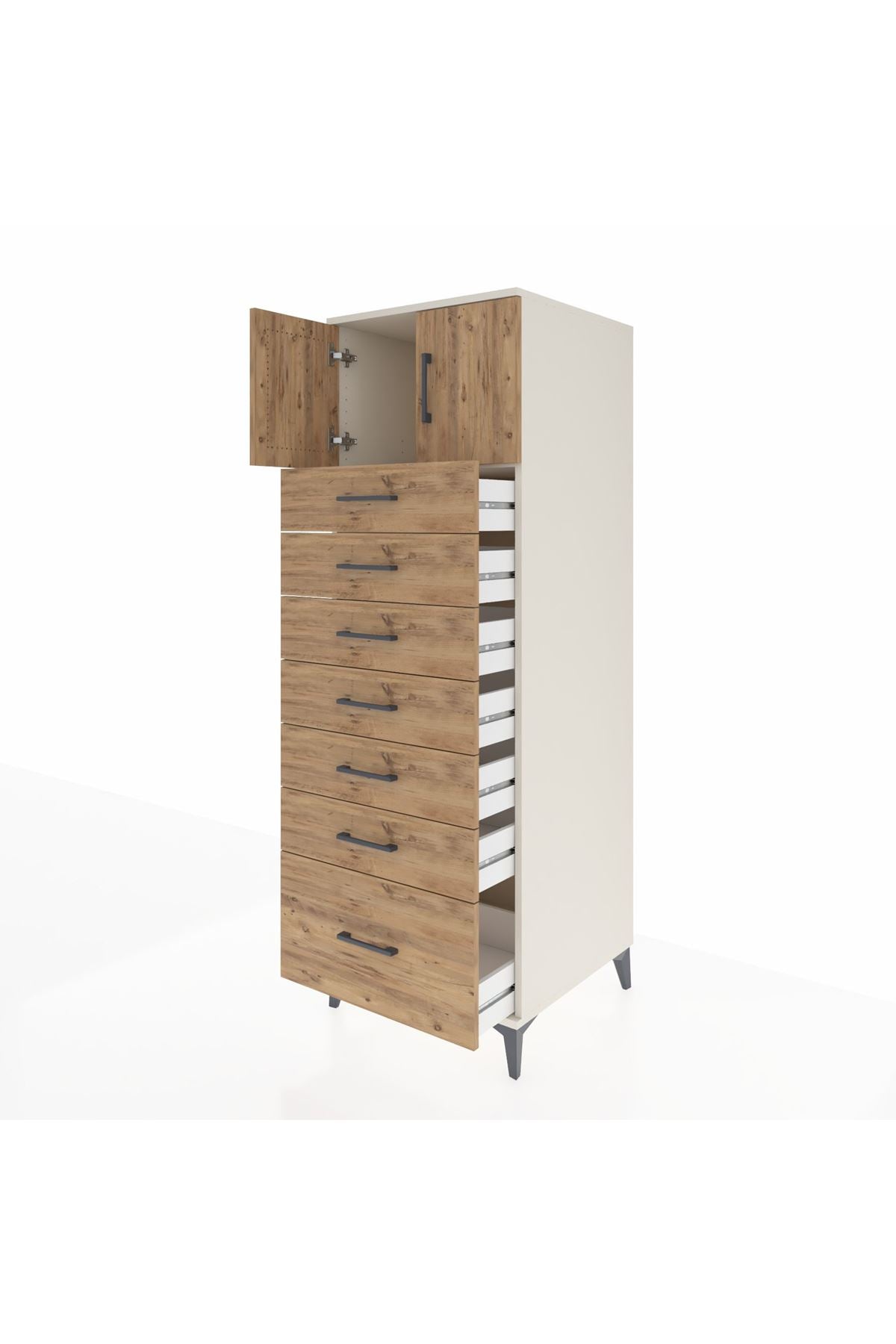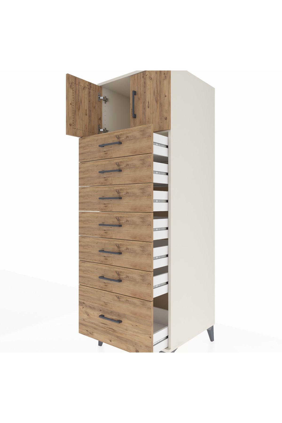 Kronos Dolap Tek Raflı 7 Çekmeceli 2 Kapaklı 60x59x182 Aytaşı-Çam