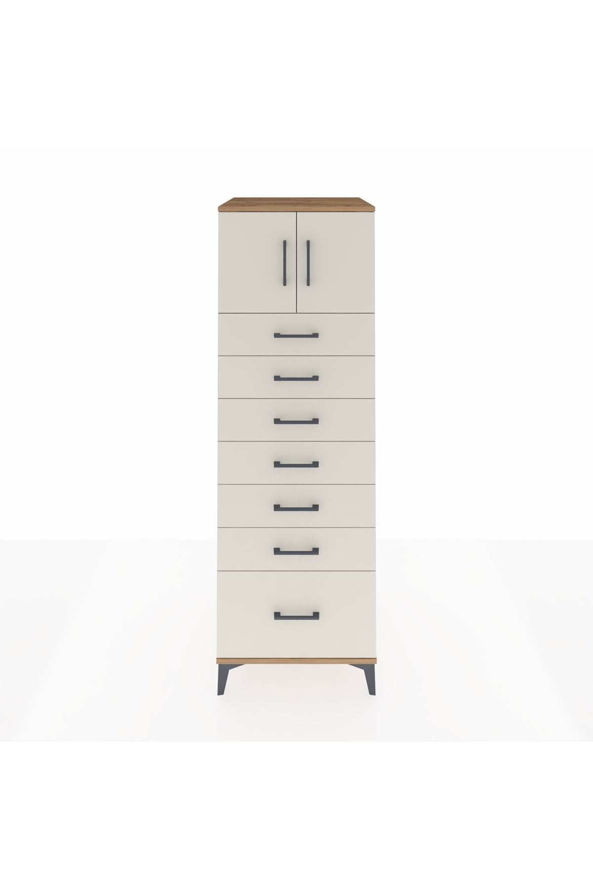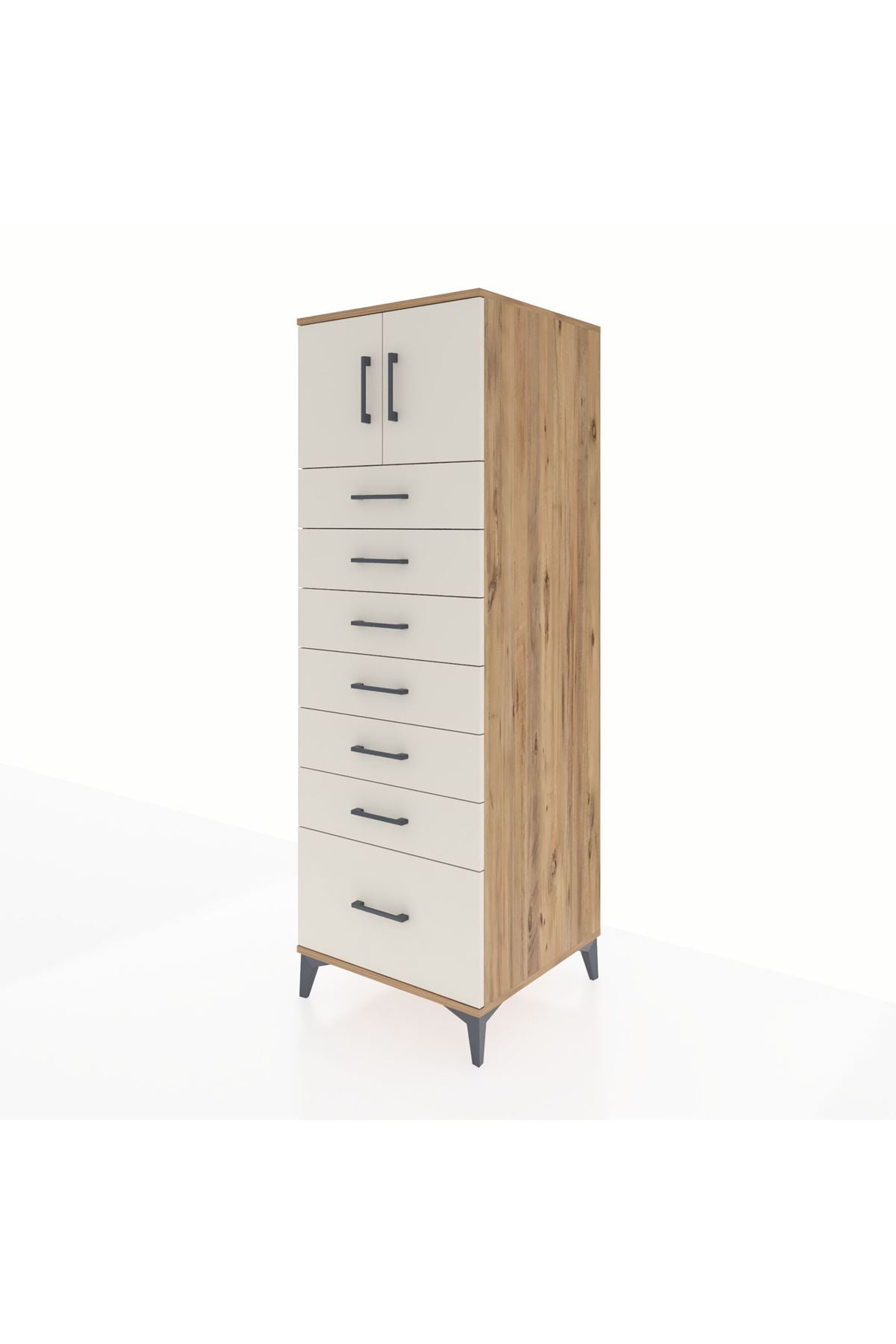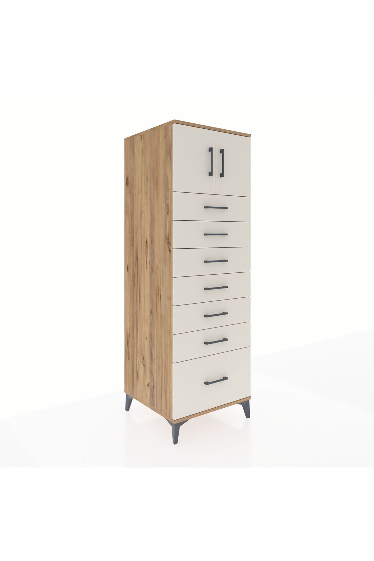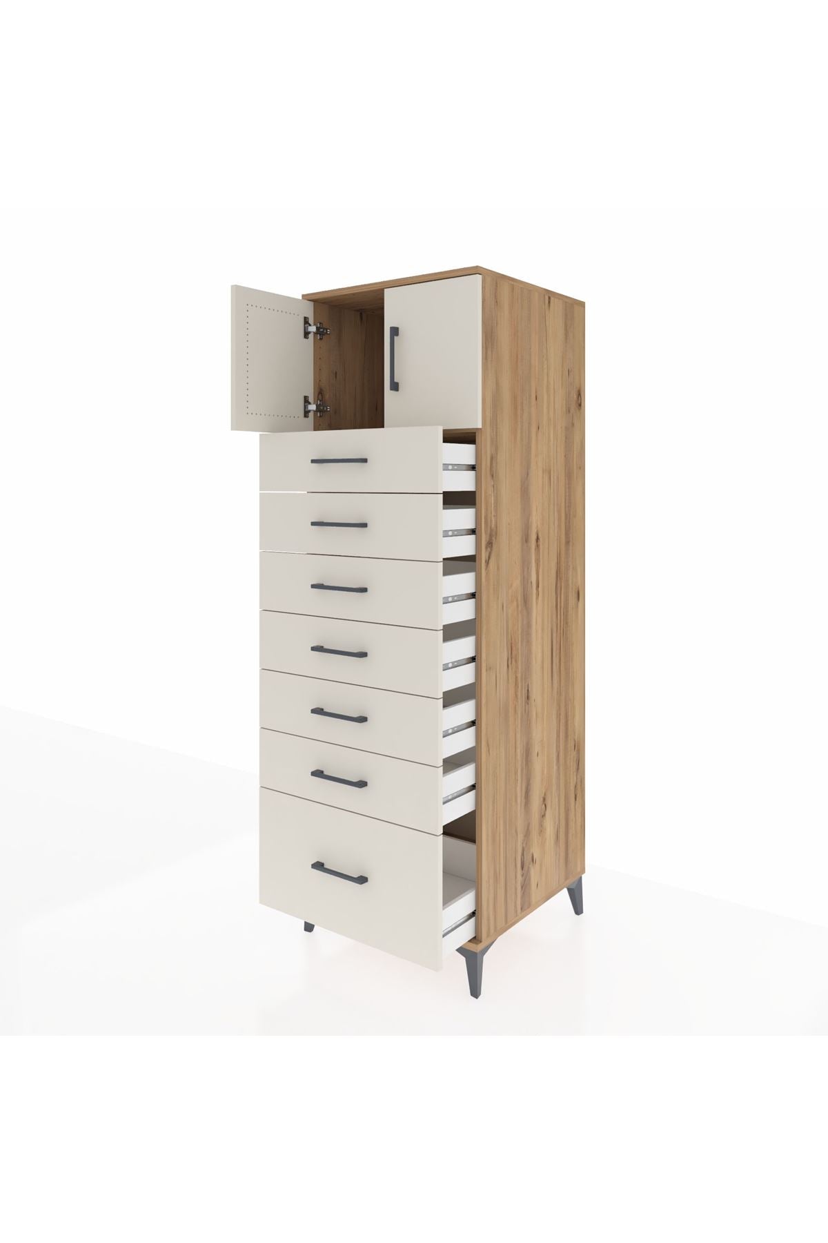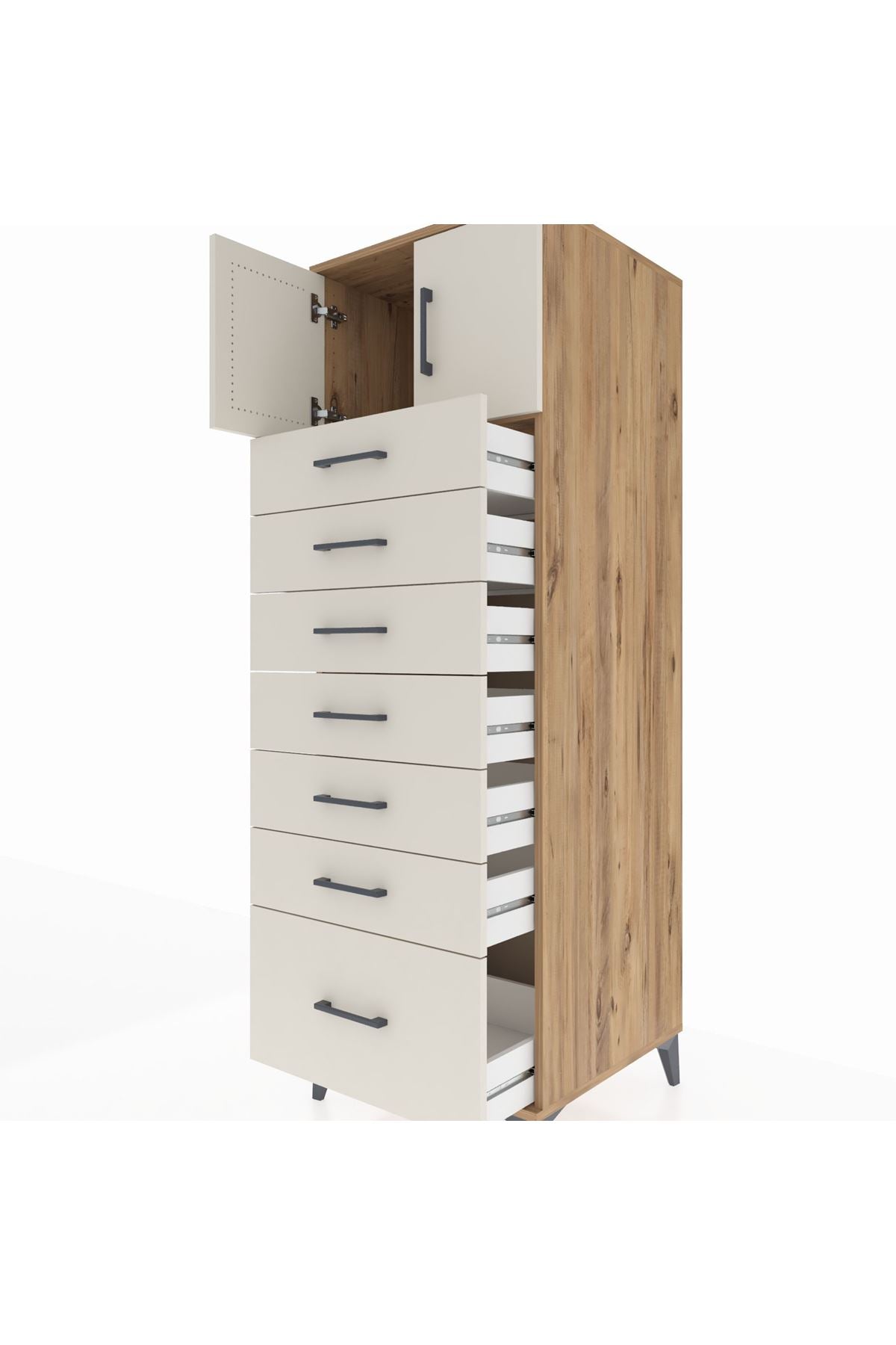 Kronos Dolap Tek Raflı 7 Çekmeceli 2 Kapaklı 60x59x182 Çam-Aytaşı