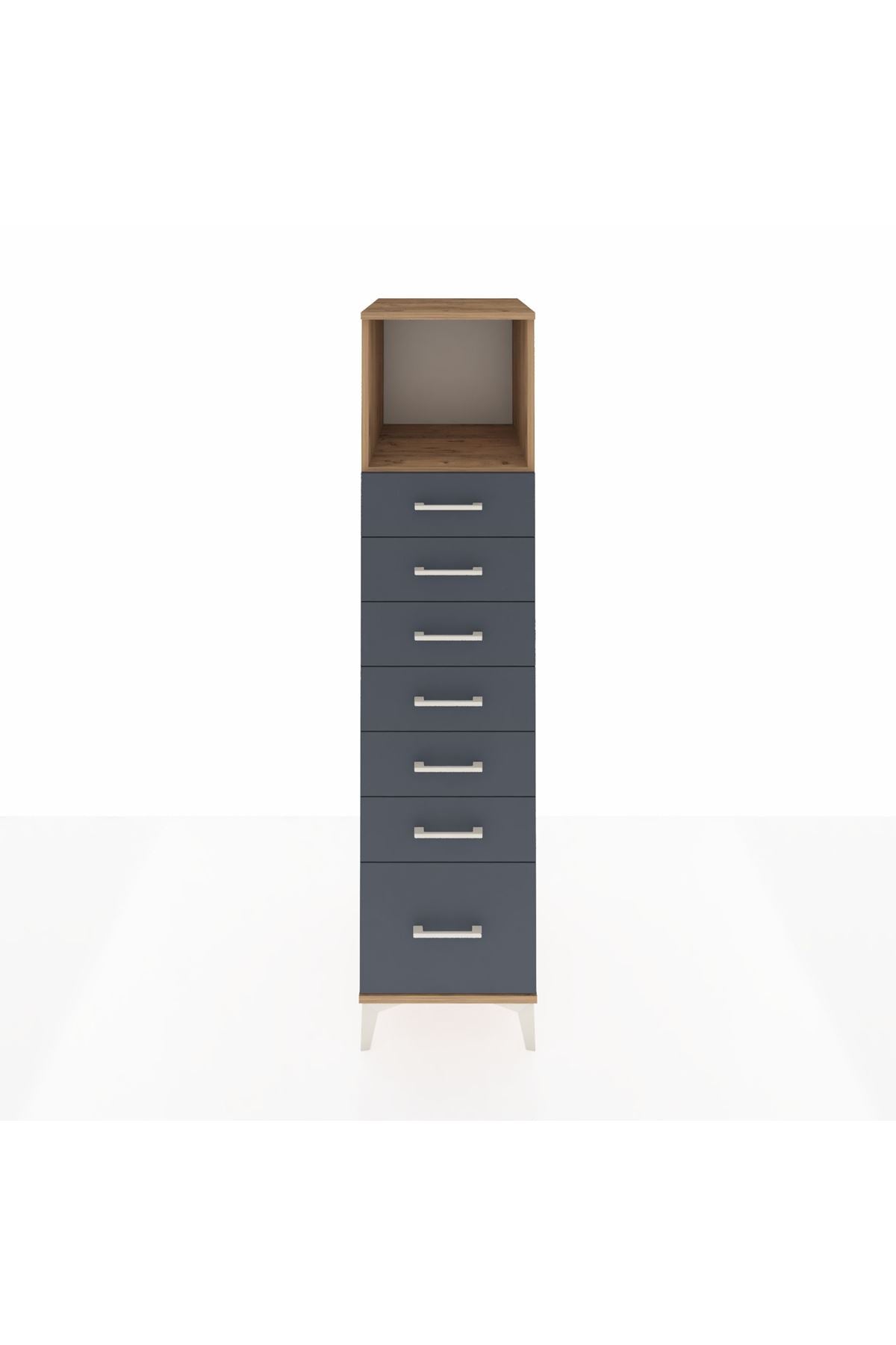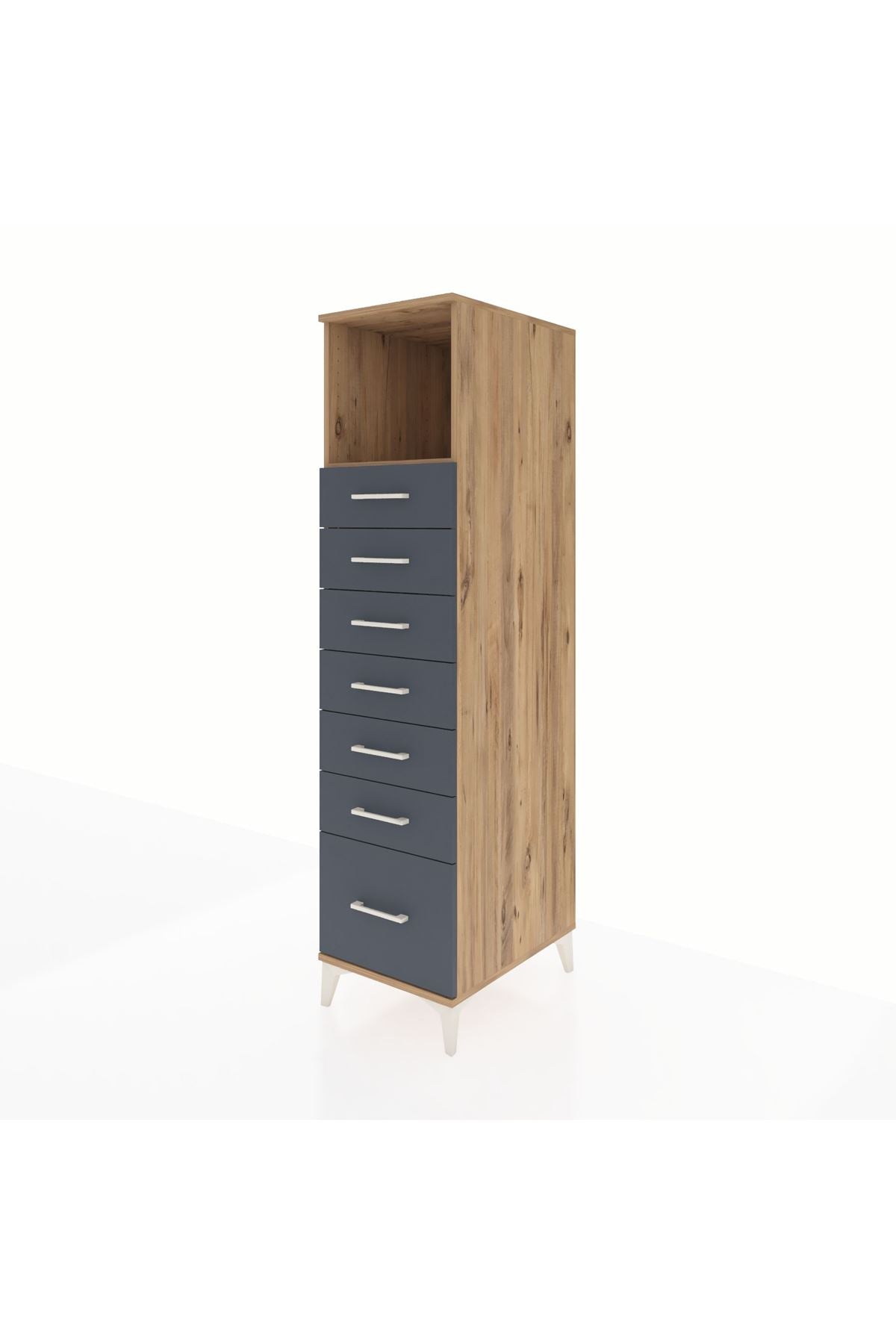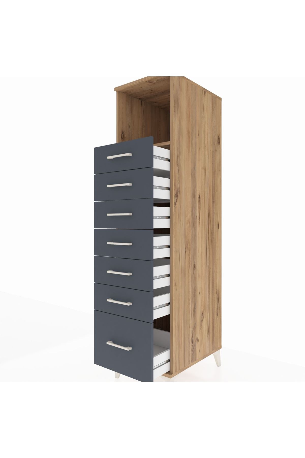 Kronos Dolap Tek Raflı 7 Çekmeceli 44x59x182 Çam-Antrasit