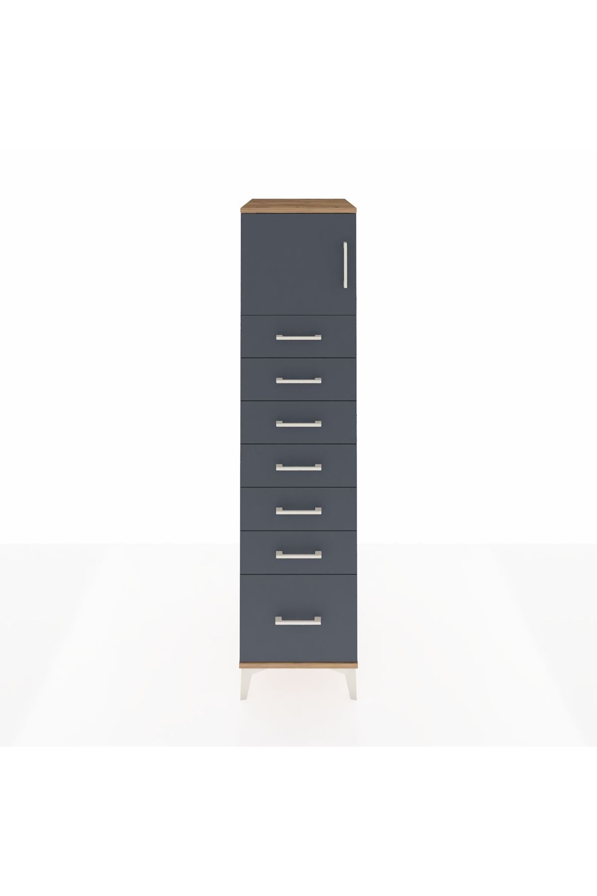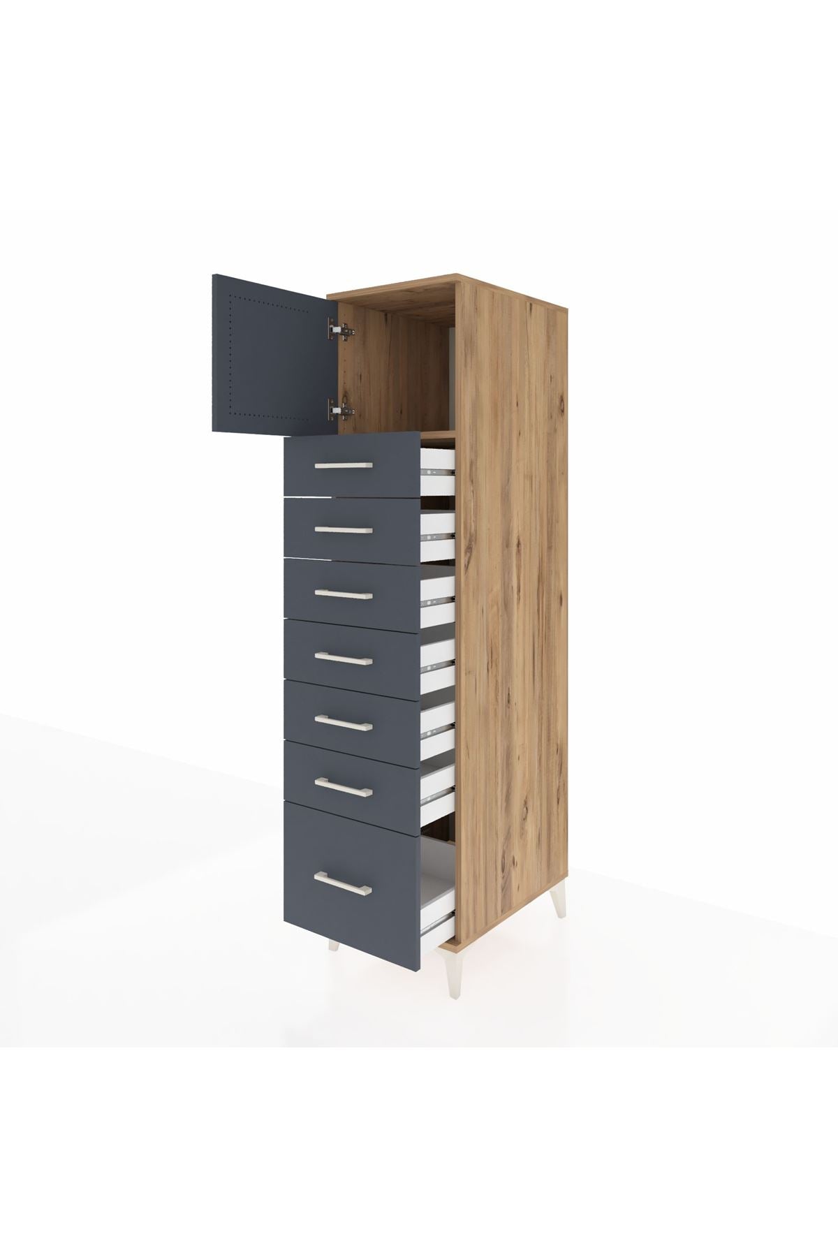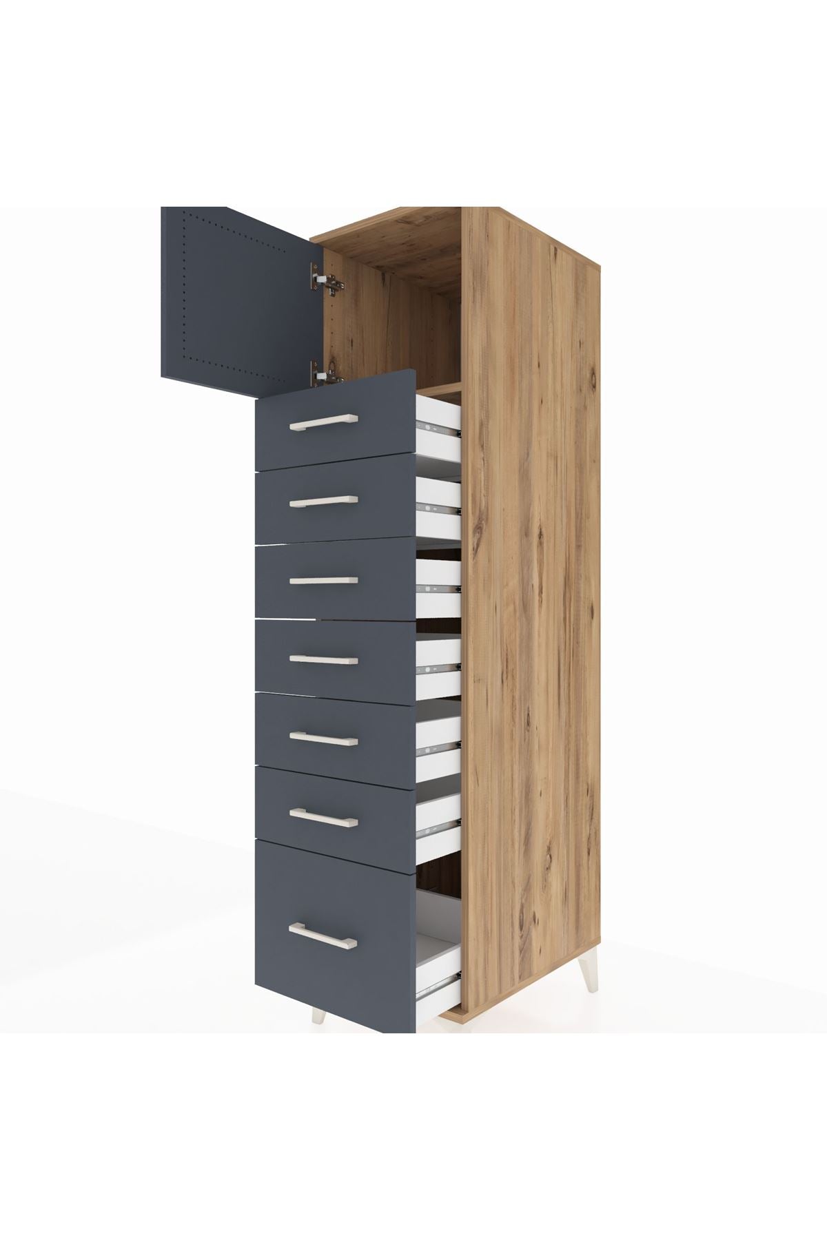 Kronos Dolap Tek Raflı 7 Çekmeceli Tek Kapaklı 44x59x182 Çam-Antrasit