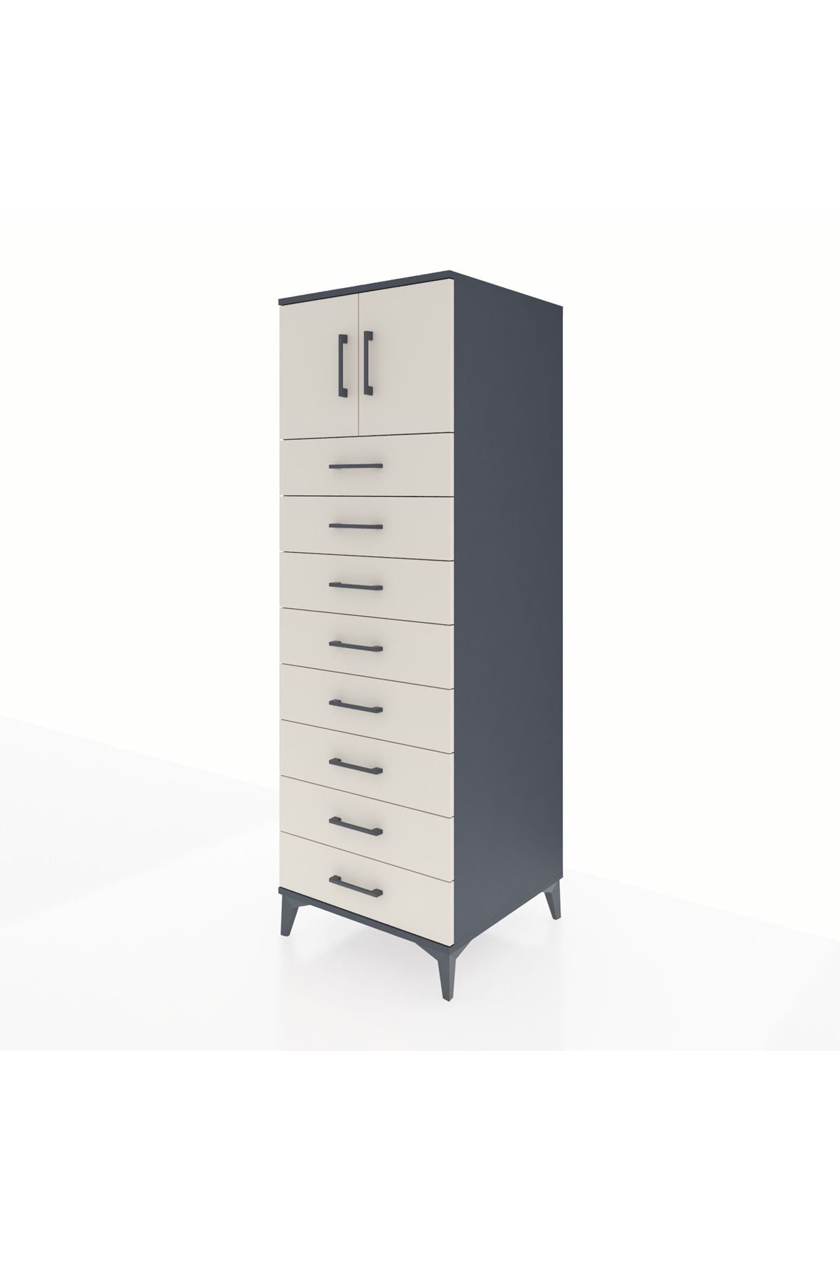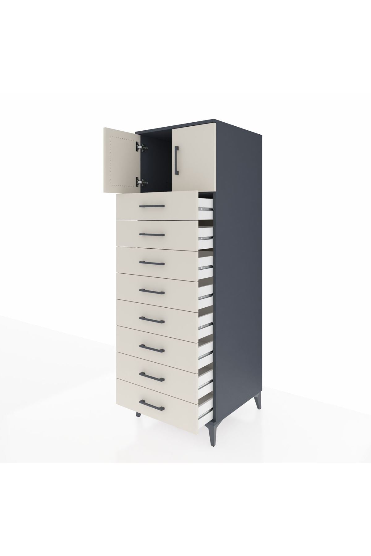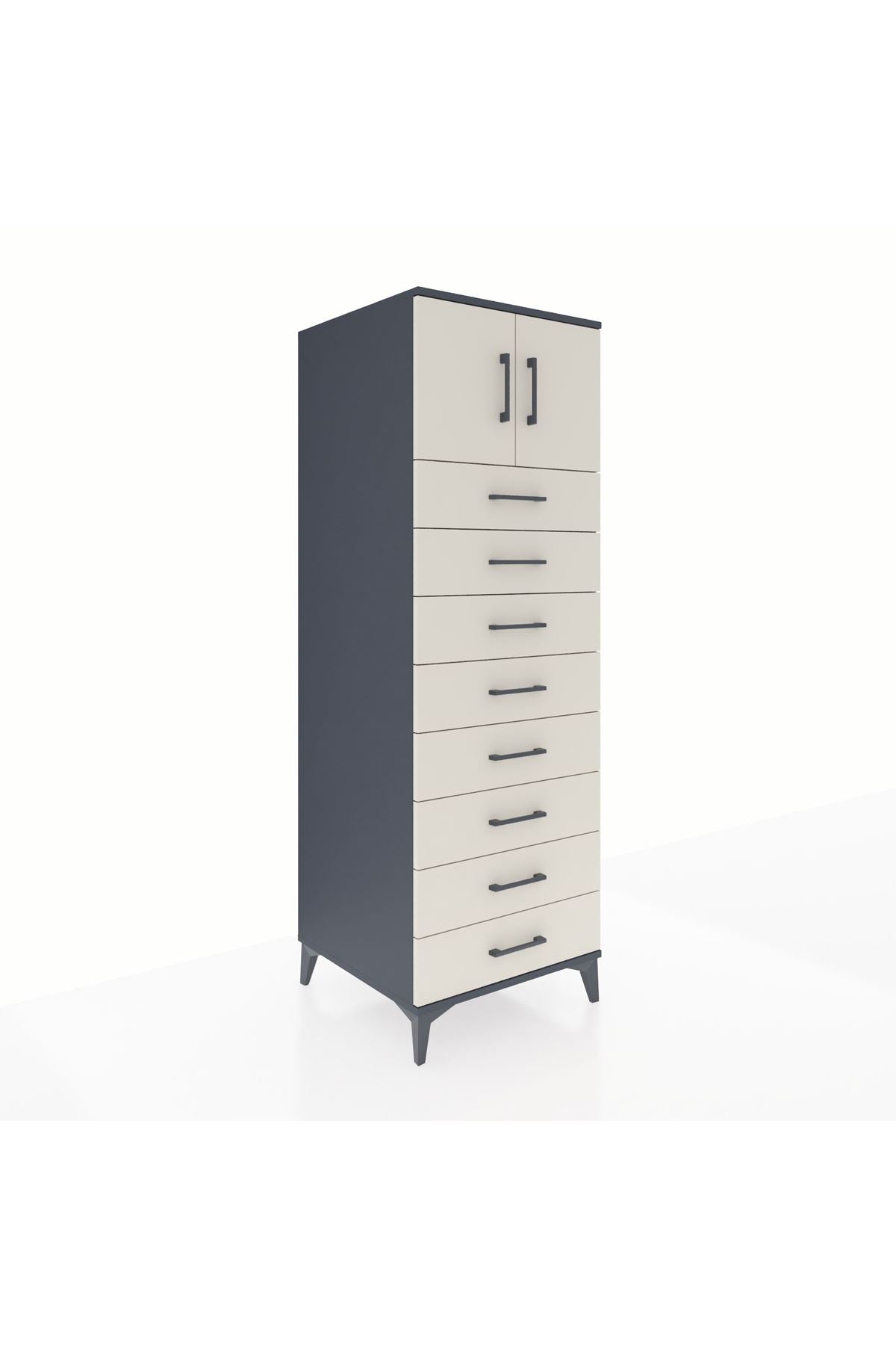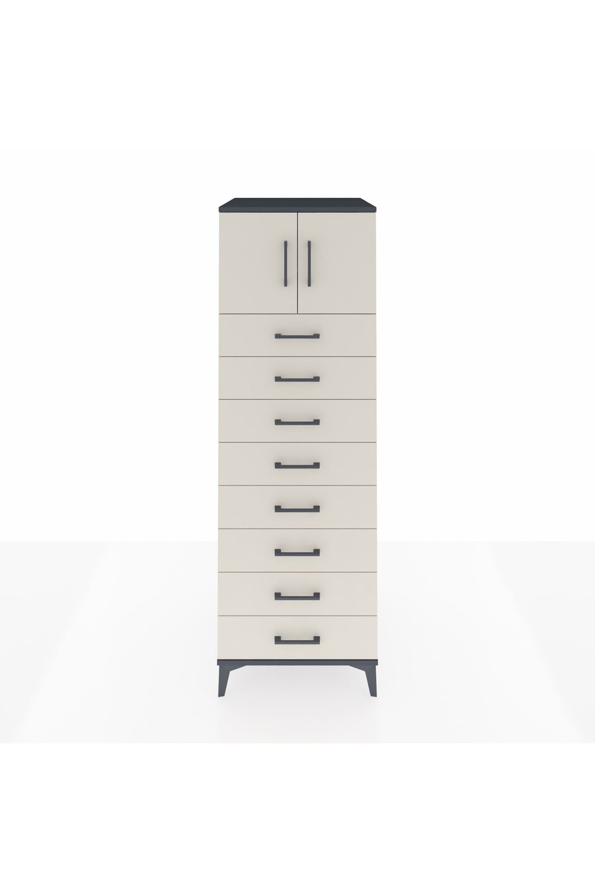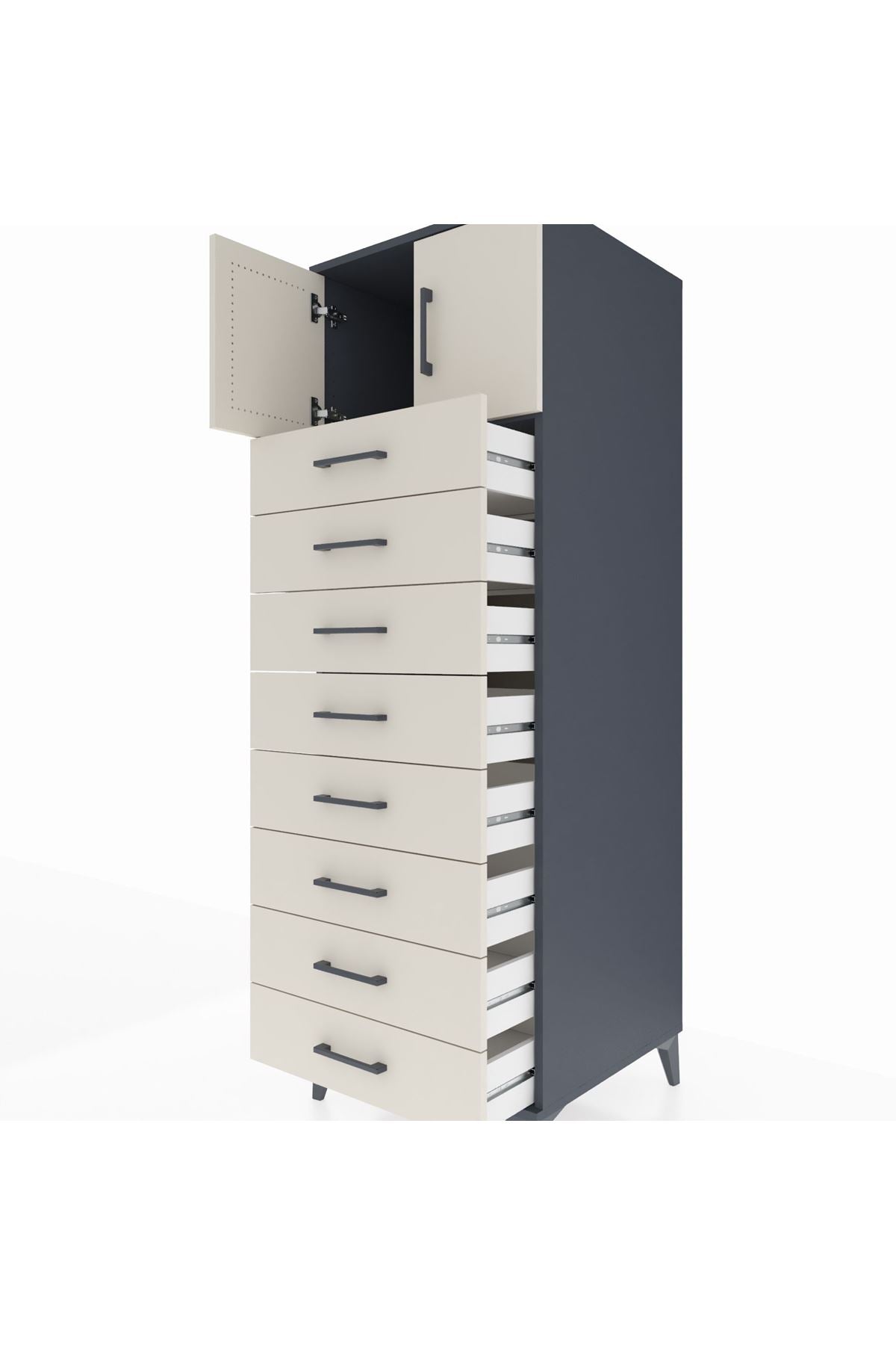 Kronos Dolap Tek Raflı 8 Çekmeceli 2 Kapaklı 60x59x182 Antrasit-Aytaşı