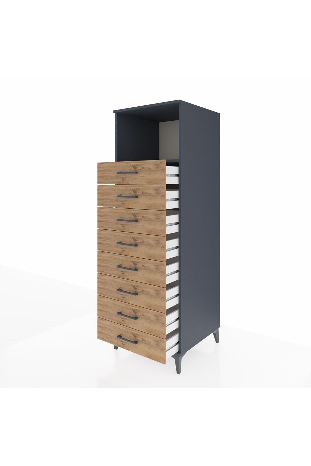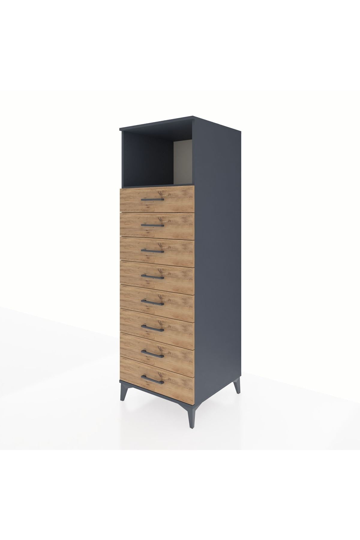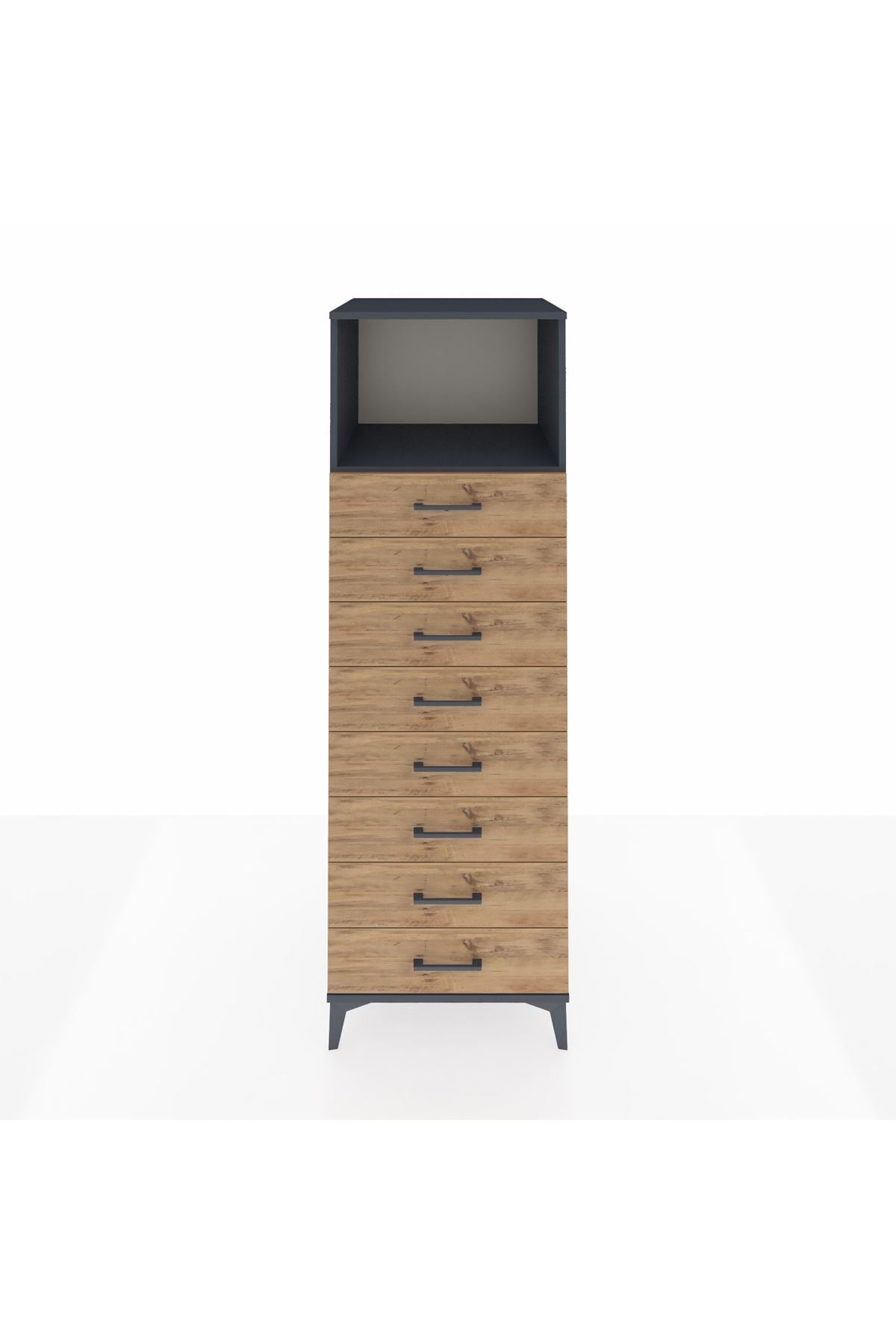 Kronos Dolap Tek Raflı 8 Çekmeceli 60x59x182 Antrasit-Çam