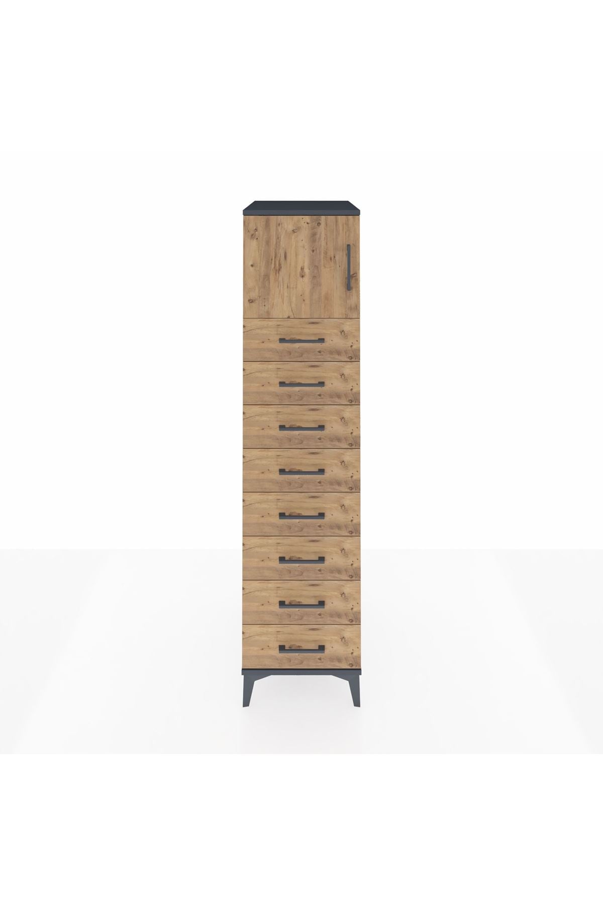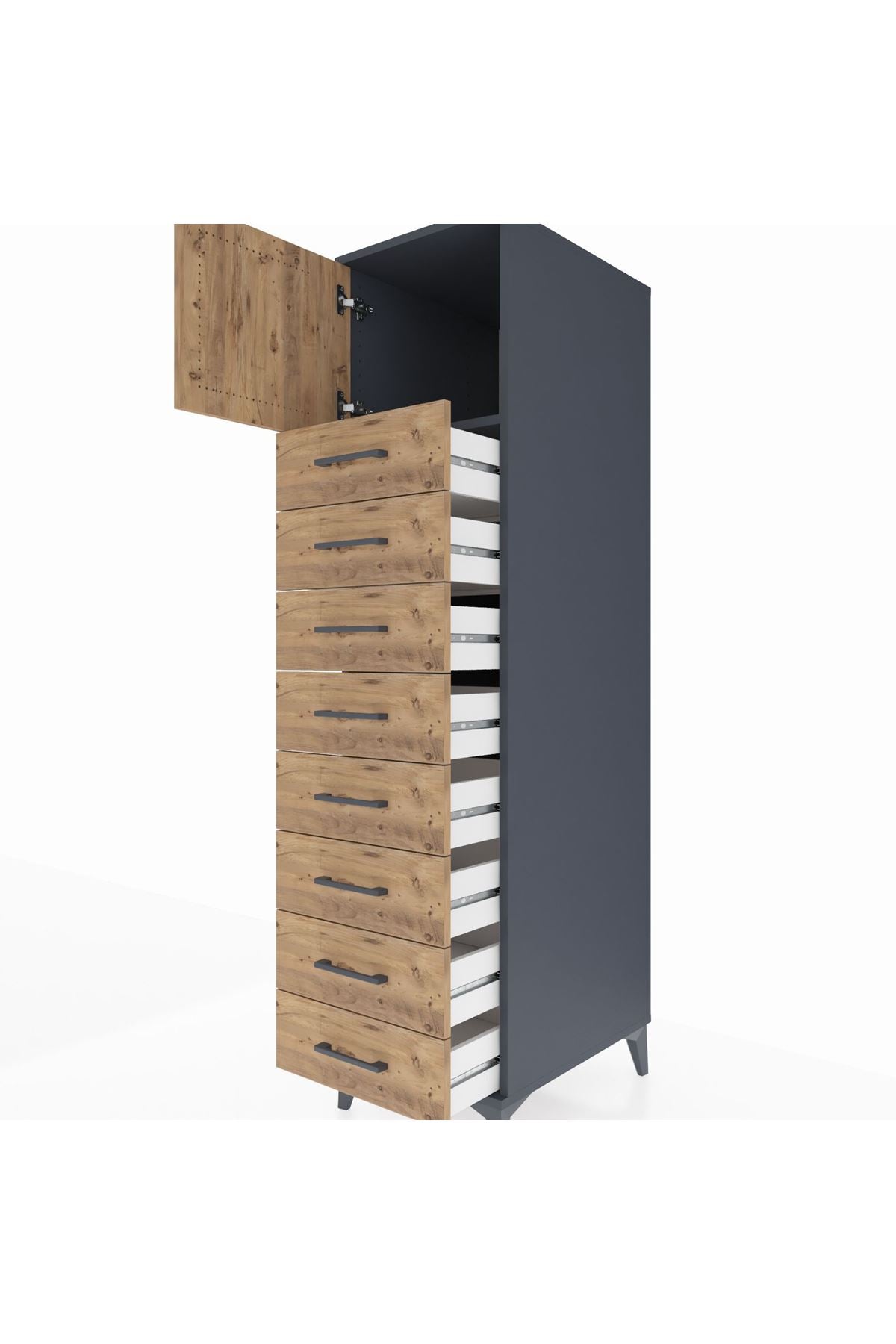 Kronos Dolap Tek Raflı 8 Çekmeceli Tek Kapaklı 44x59x182 Antrasit-Çam