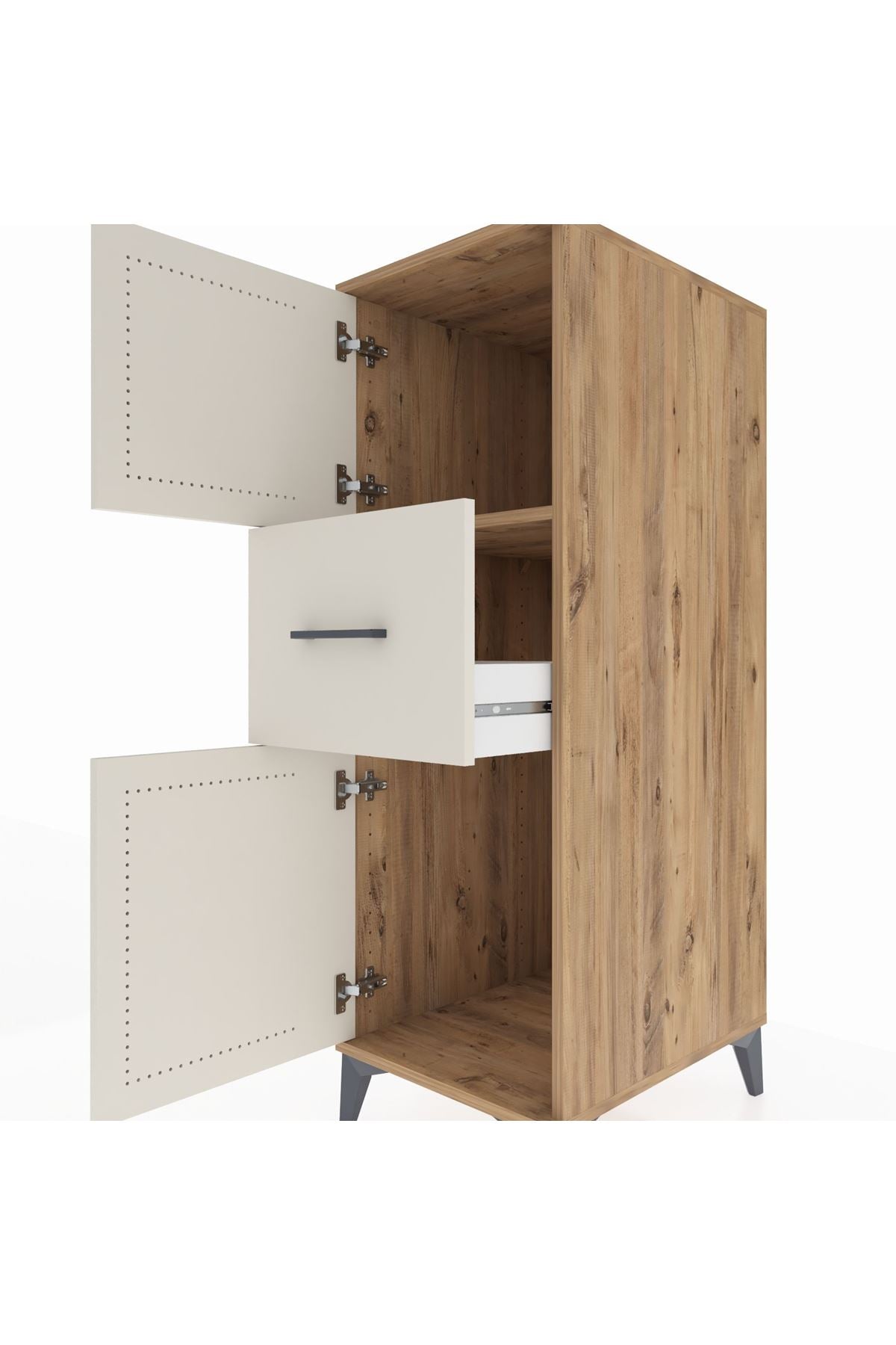 Kronos Dolap Tek Raflı Tek Çekmeceli 2 Kapaklı 44x59x134 Çam-Aytaşı