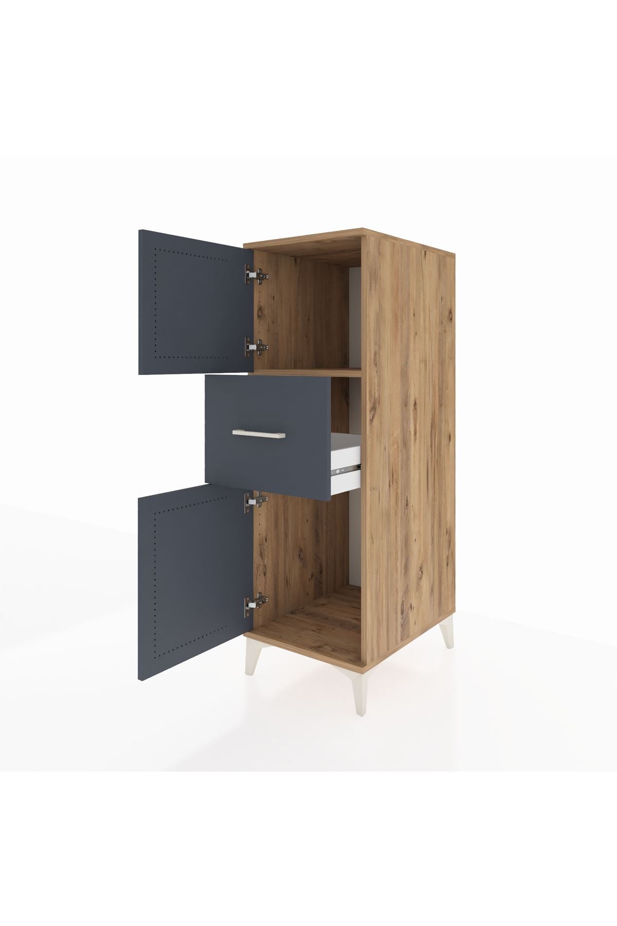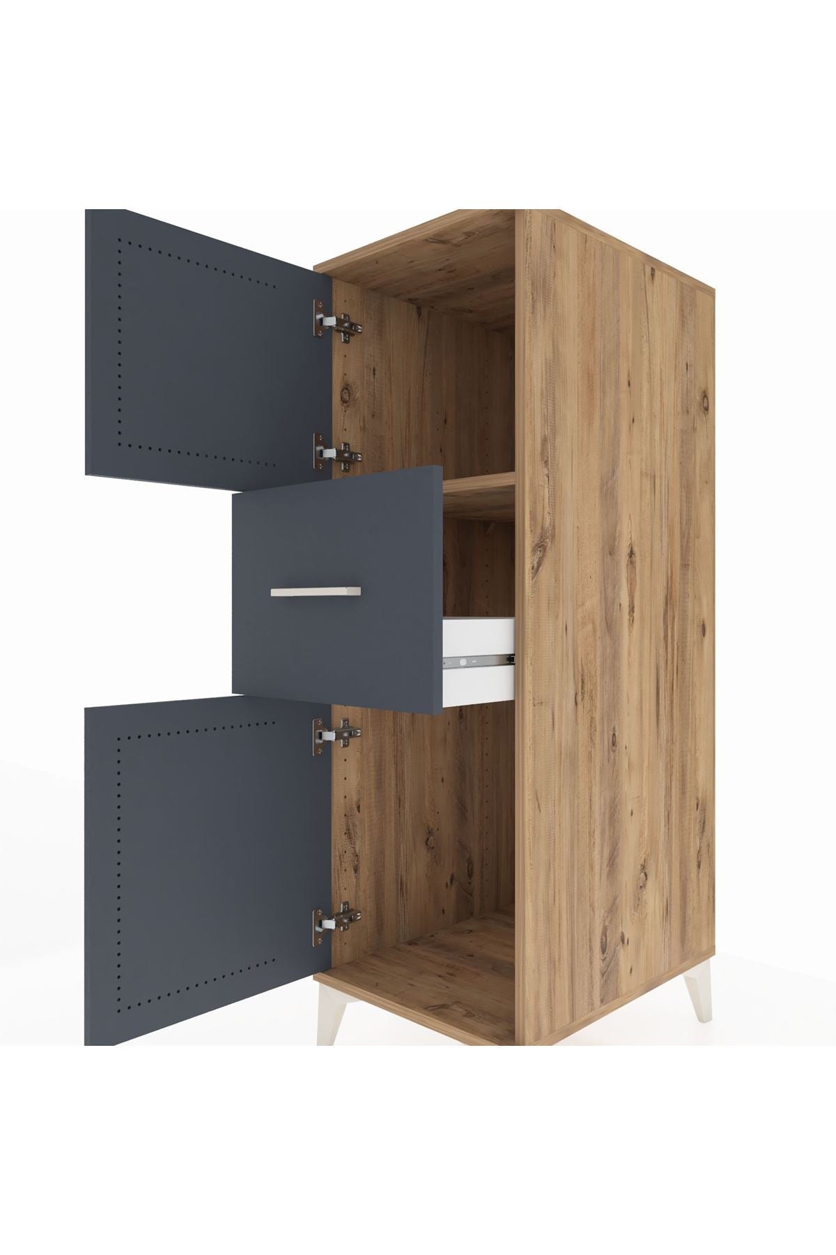 Kronos Dolap Tek Raflı Tek Çekmeceli 2 Kapaklı 44x59x134 Çam-Antrasit