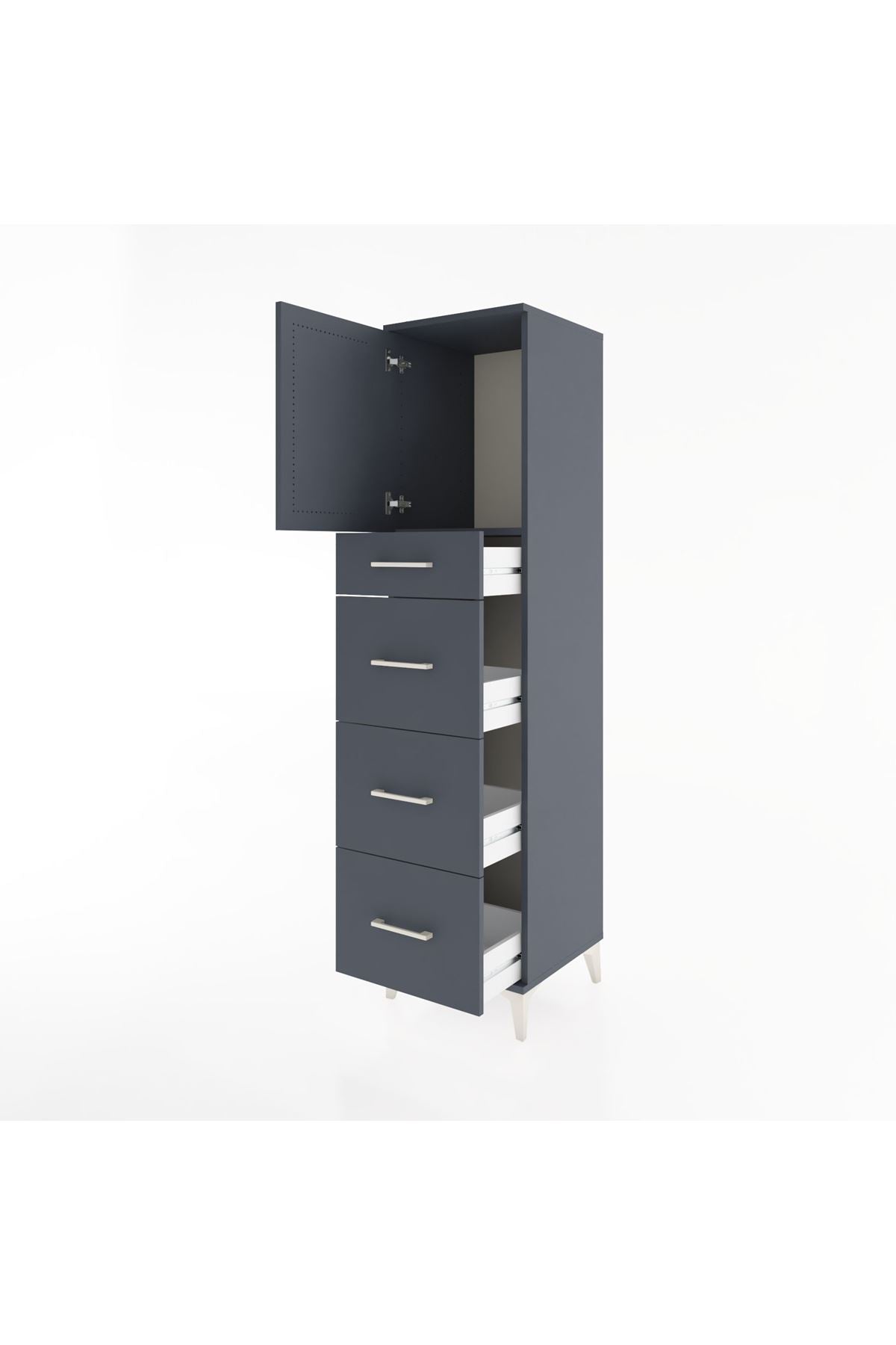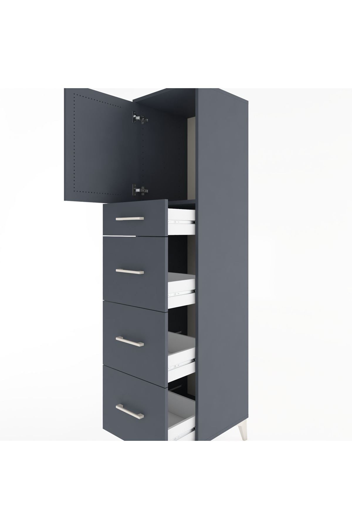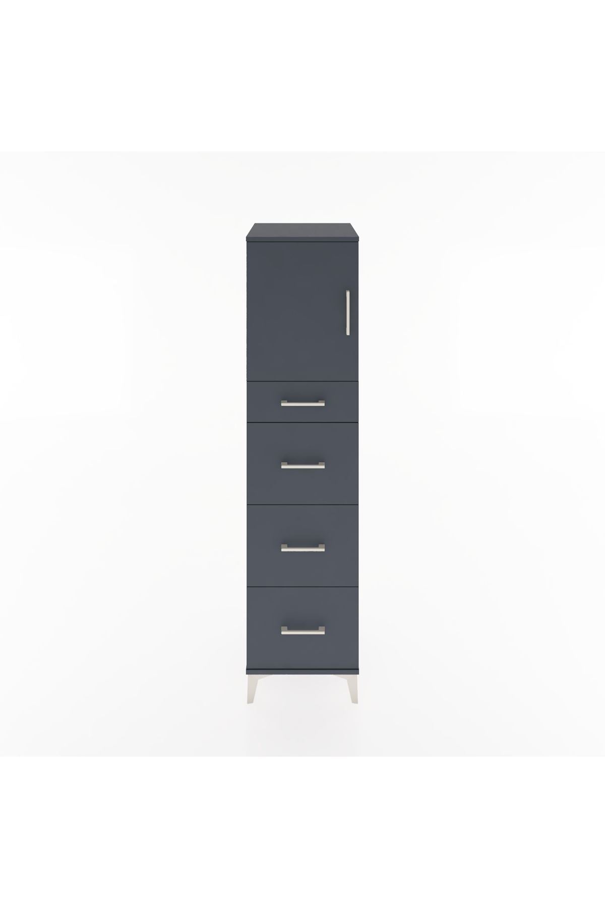 Hyperion Dolap Tek Raflı 4 Çekmeceli Tek Kapaklı 44x44x182 Antrasit-Antrasit