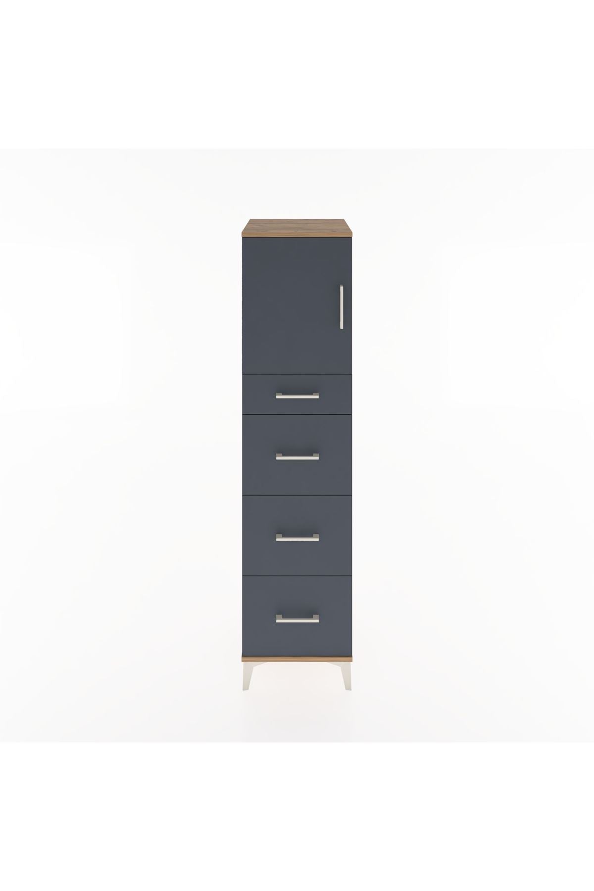 Hyperion Dolap Tek Raflı 4 Çekmeceli Tek Kapaklı 44x44x182 Çam-Antrasit