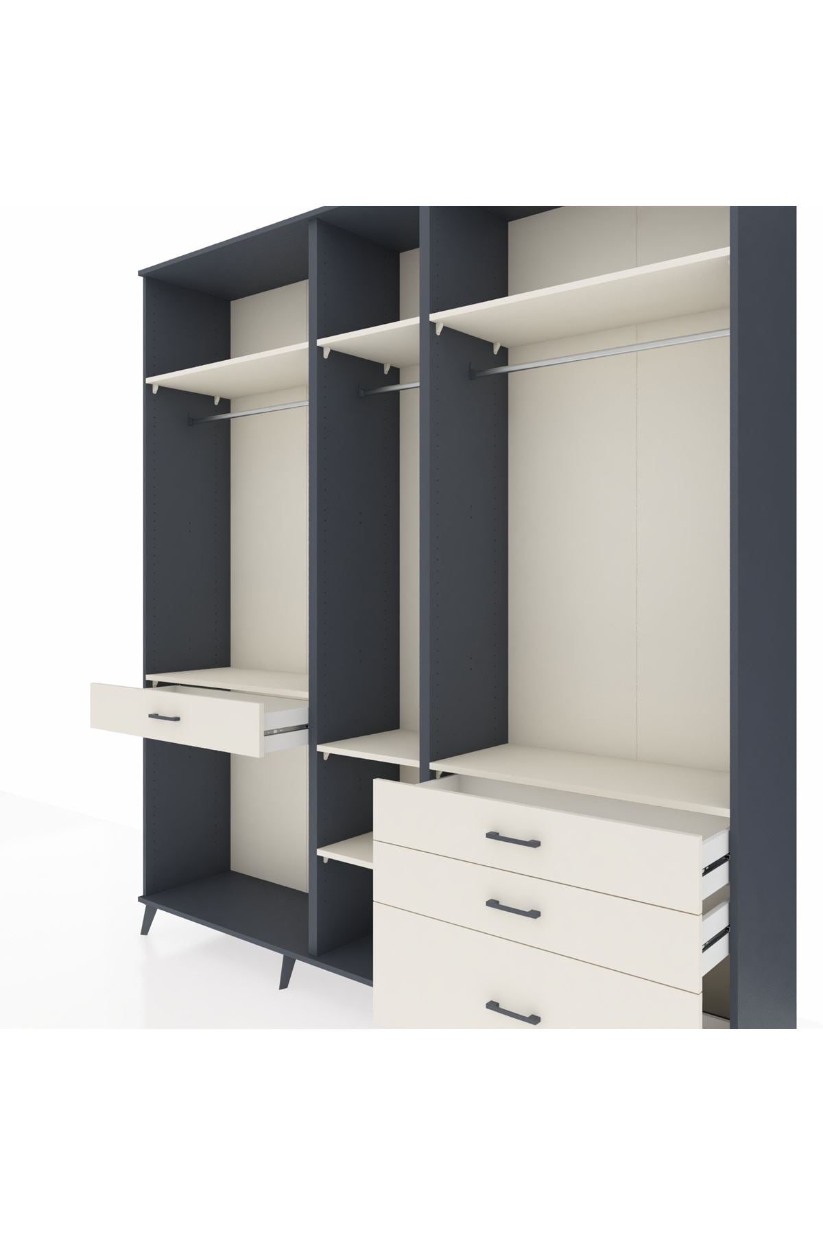 Hyperion Dolap 7 Raflı 4 Çekmeceli 3 Askılı 220x44x243 Antrasit-Aytaşı/Aytaşı