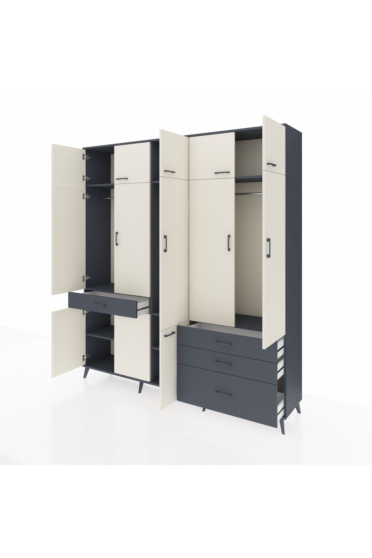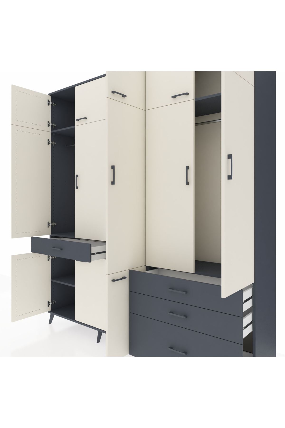 Hyperion Dolap 8 Raflı 4 Çekmeceli 3 Askılı 220x44x243 Antrasit-Aytaşı/Antrasit