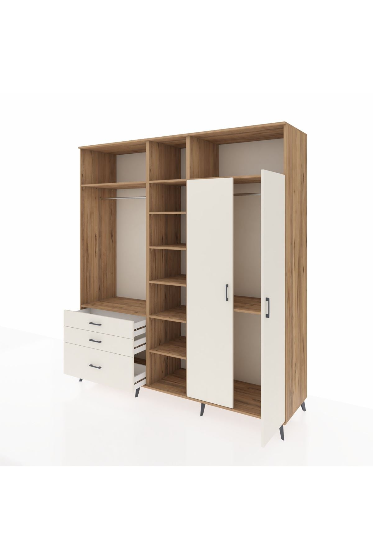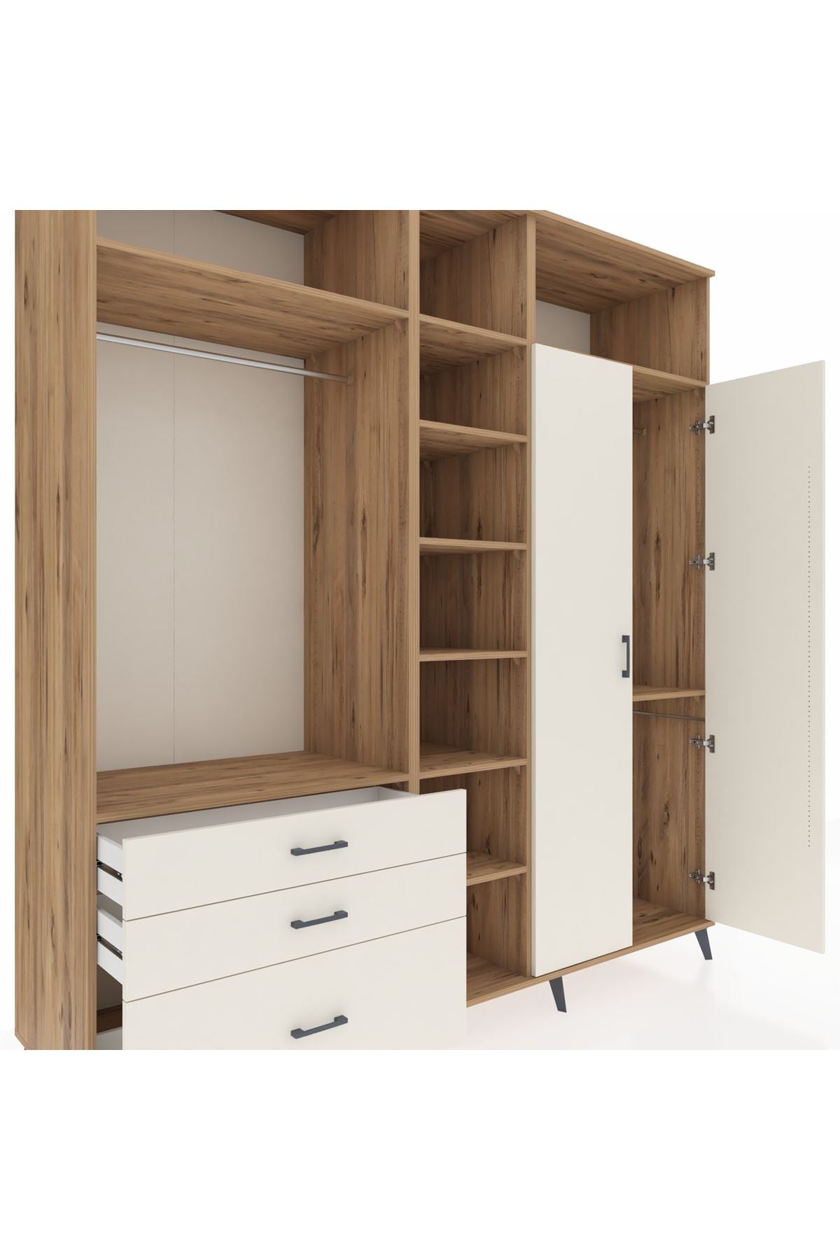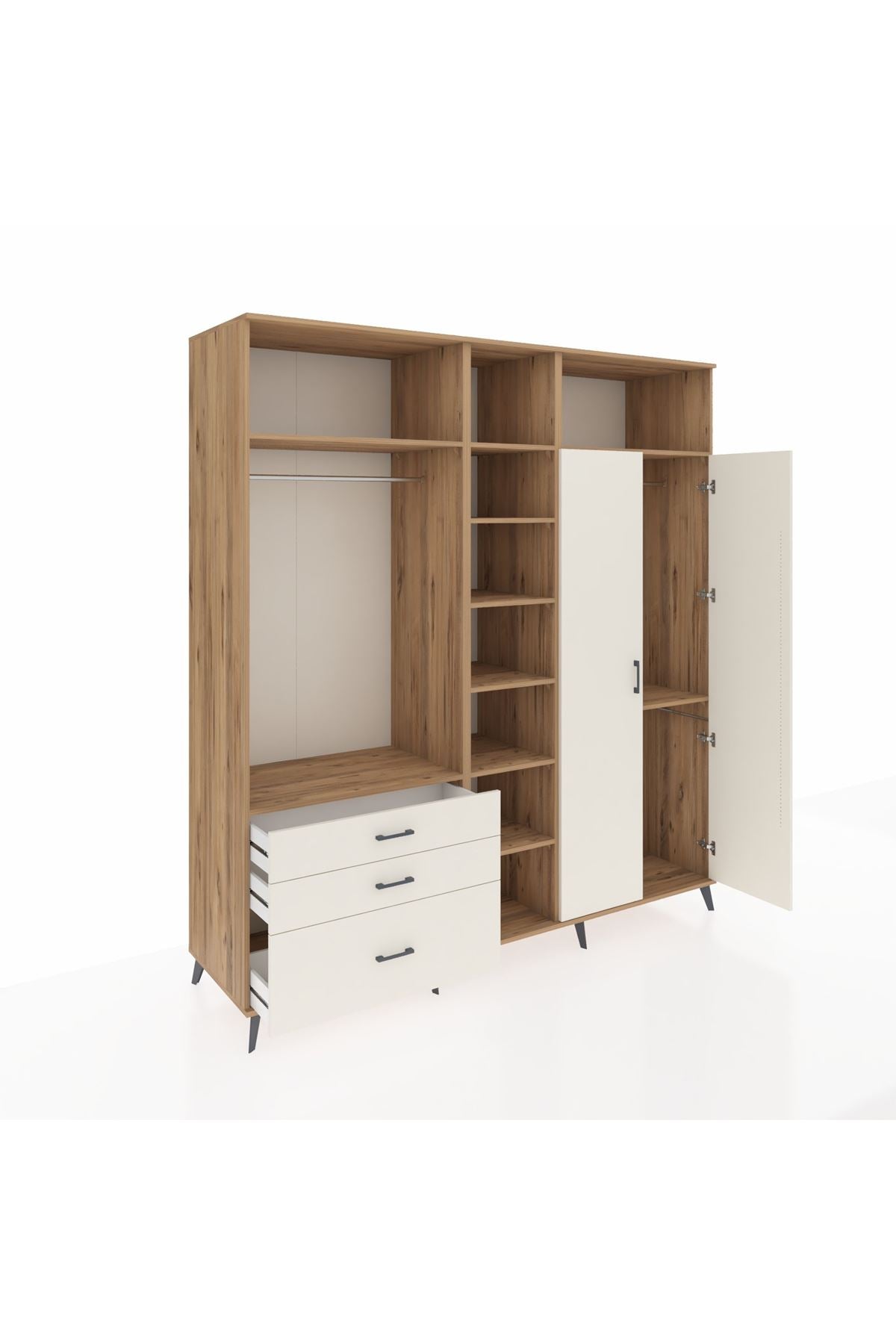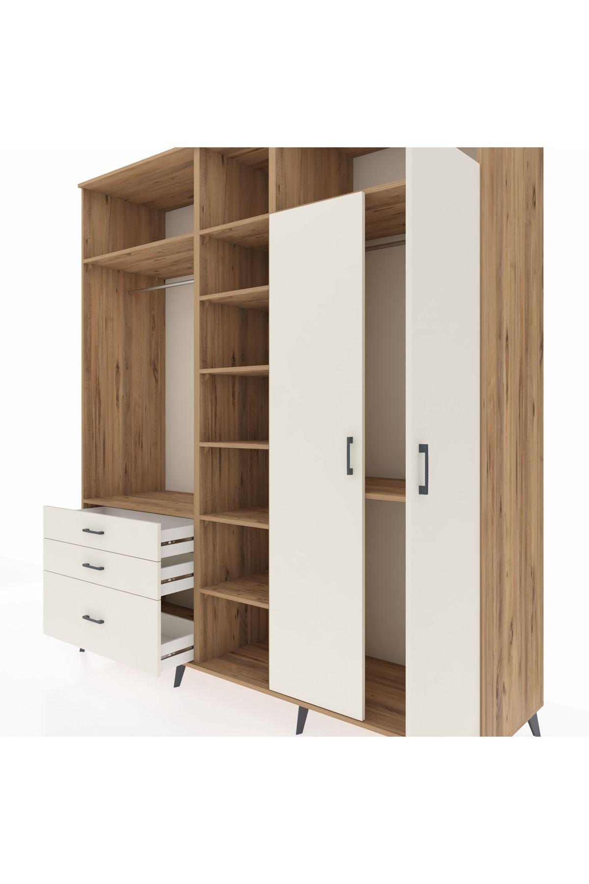 Kronos Dolap 10 Raflı 3 Çekmeceli 2 Askılı 220x59x243 Çam-Aytaşı/Aytaşı