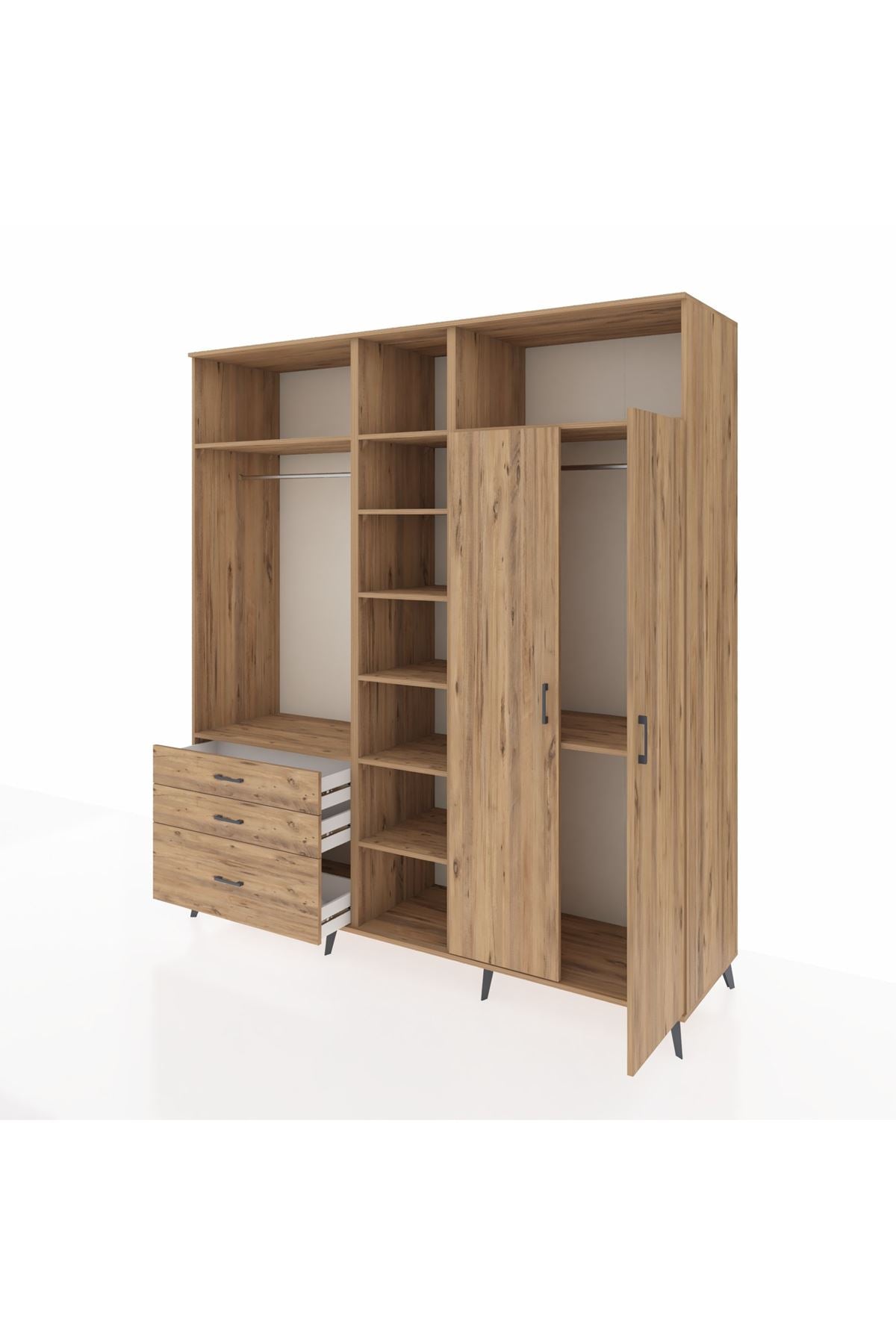 Kronos Dolap 10 Raflı 3 Çekmeceli 2 Askılı 220x59x243 Çam-Çam/Çam