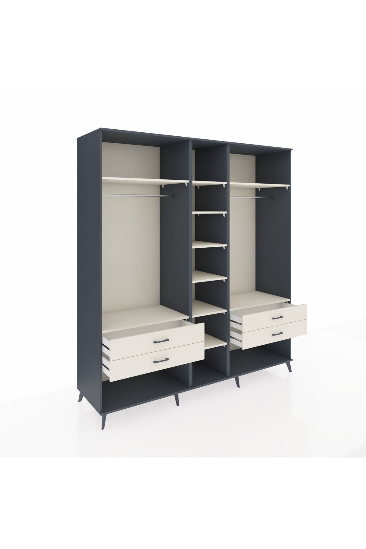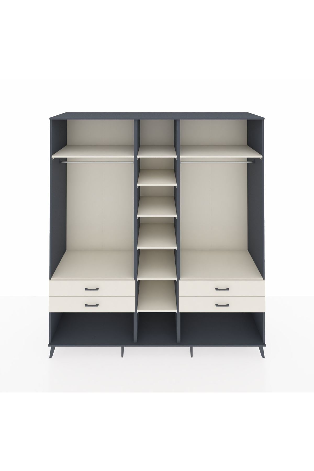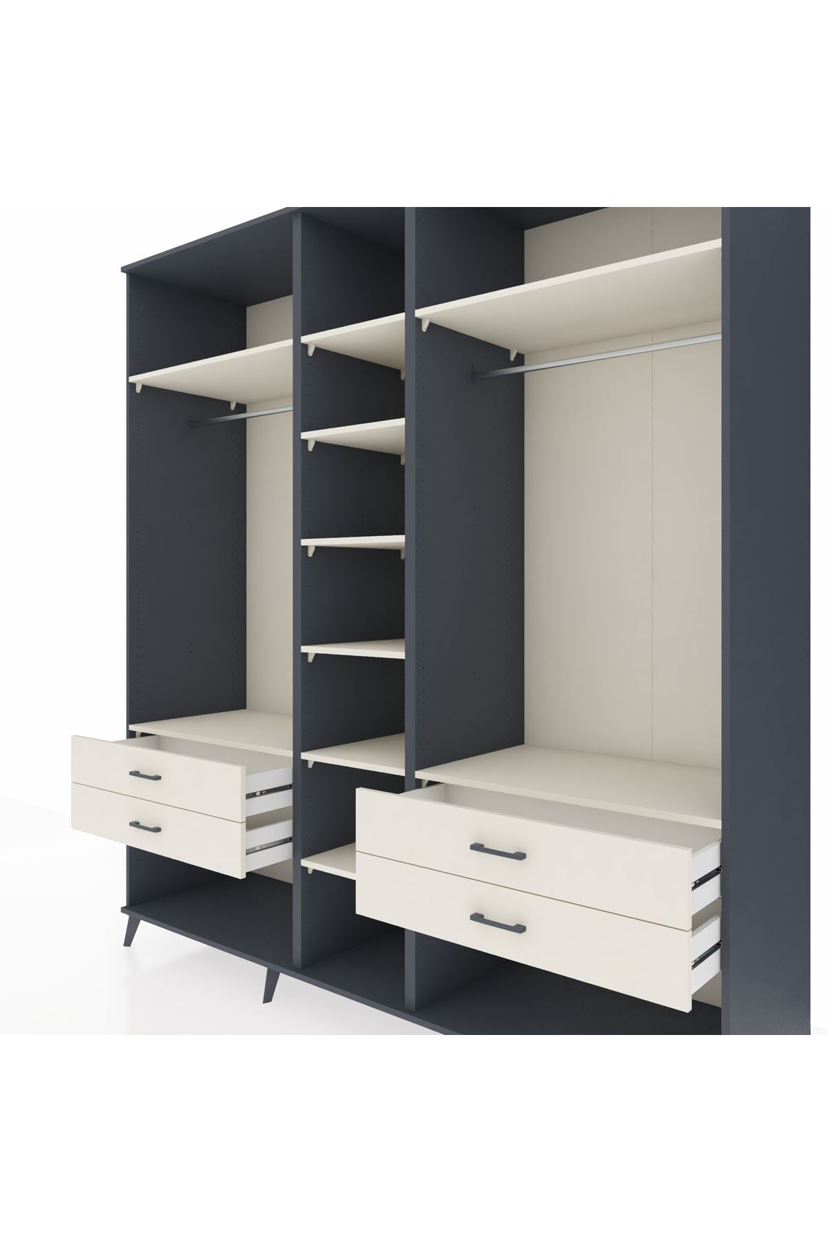 Kronos Dolap 10 Raflı 4 Çekmeceli 2 Askılı 220x59x243 Antrasit-Aytaşı/Aytaşı