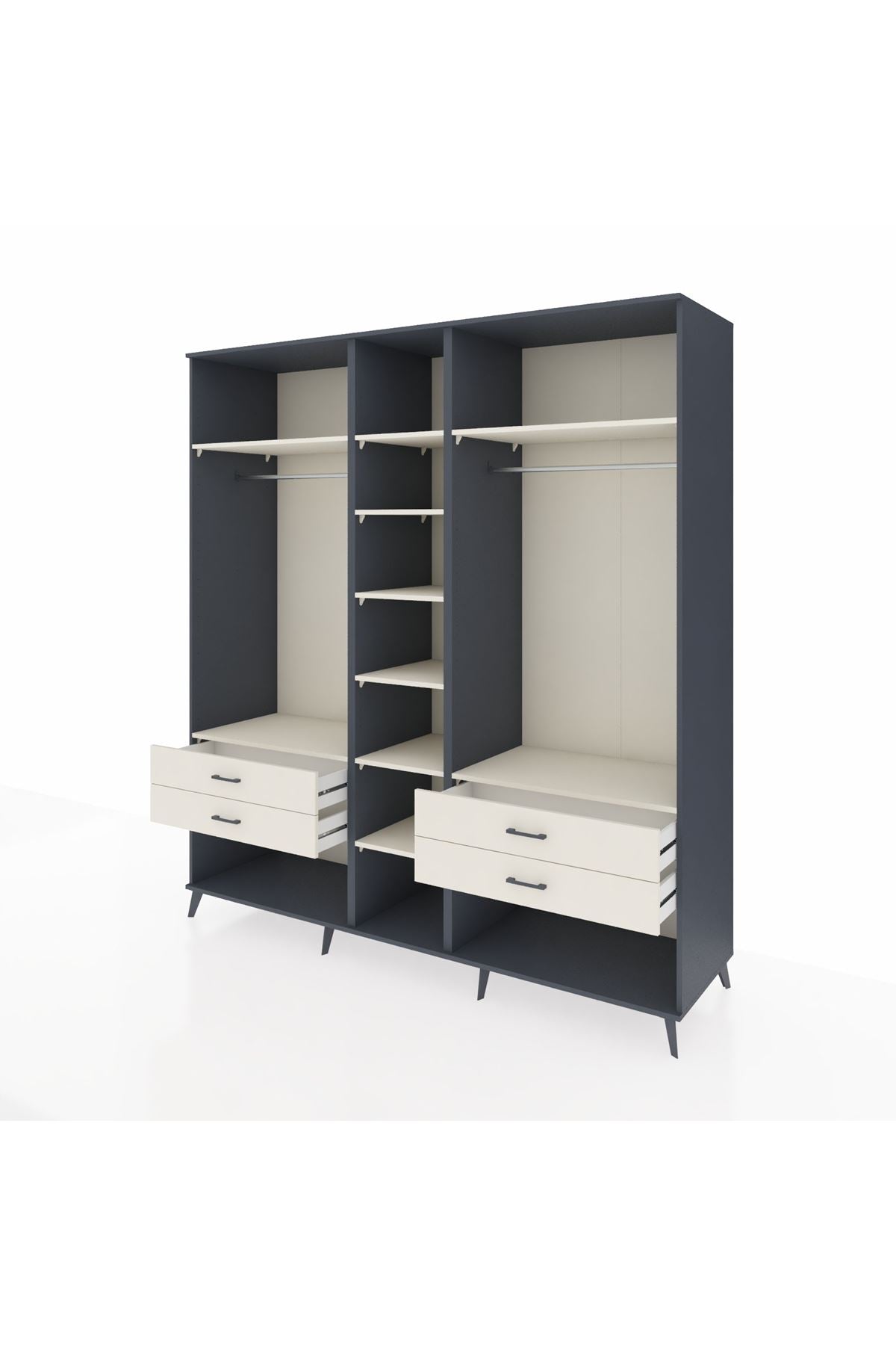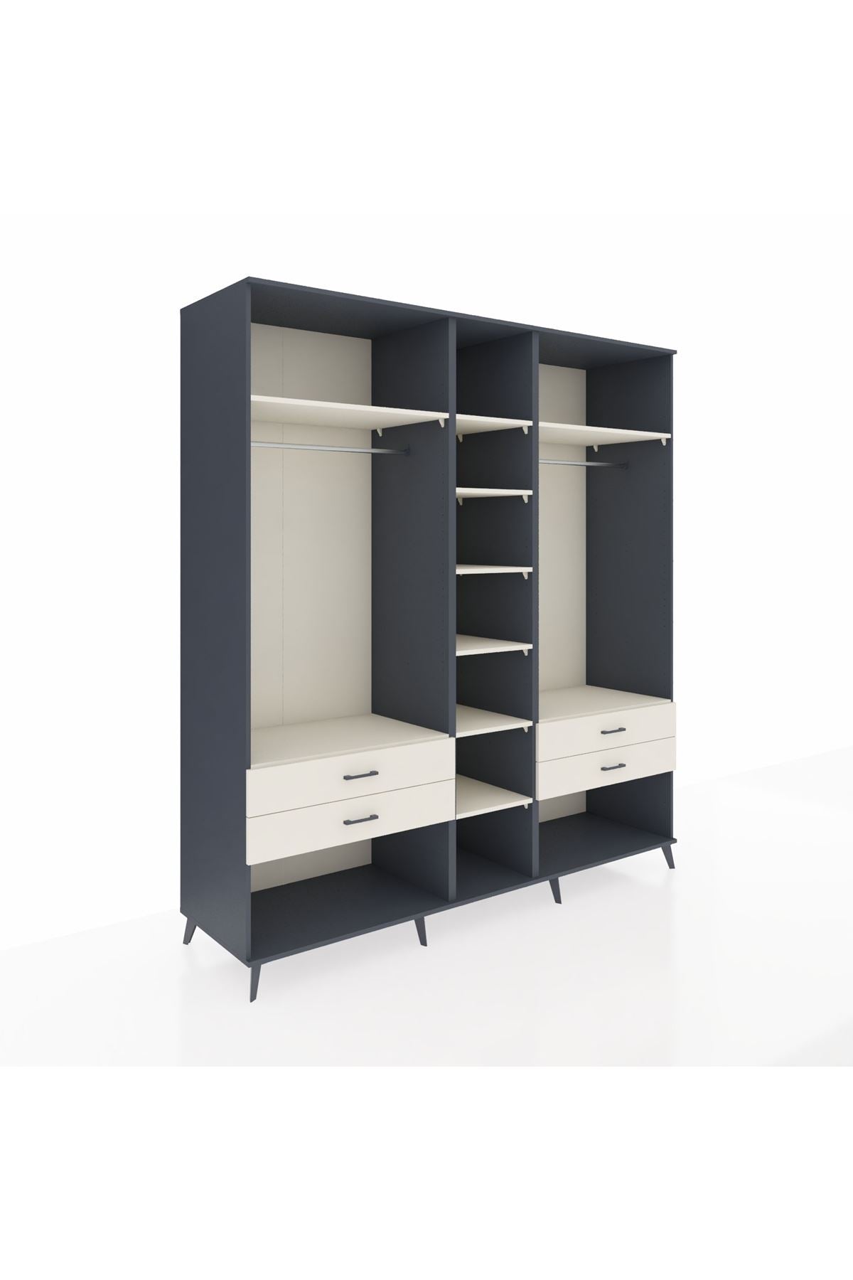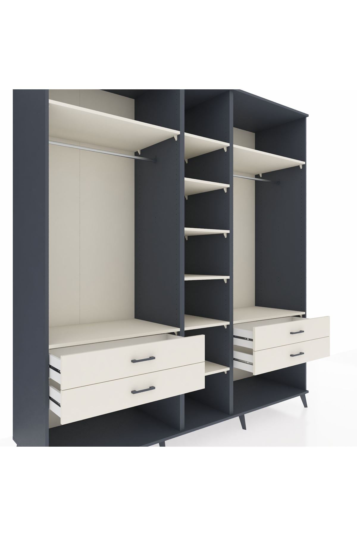 Kronos Dolap 10 Raflı 4 Çekmeceli 2 Askılı 220x59x243 Antrasit-Aytaşı/Aytaşı