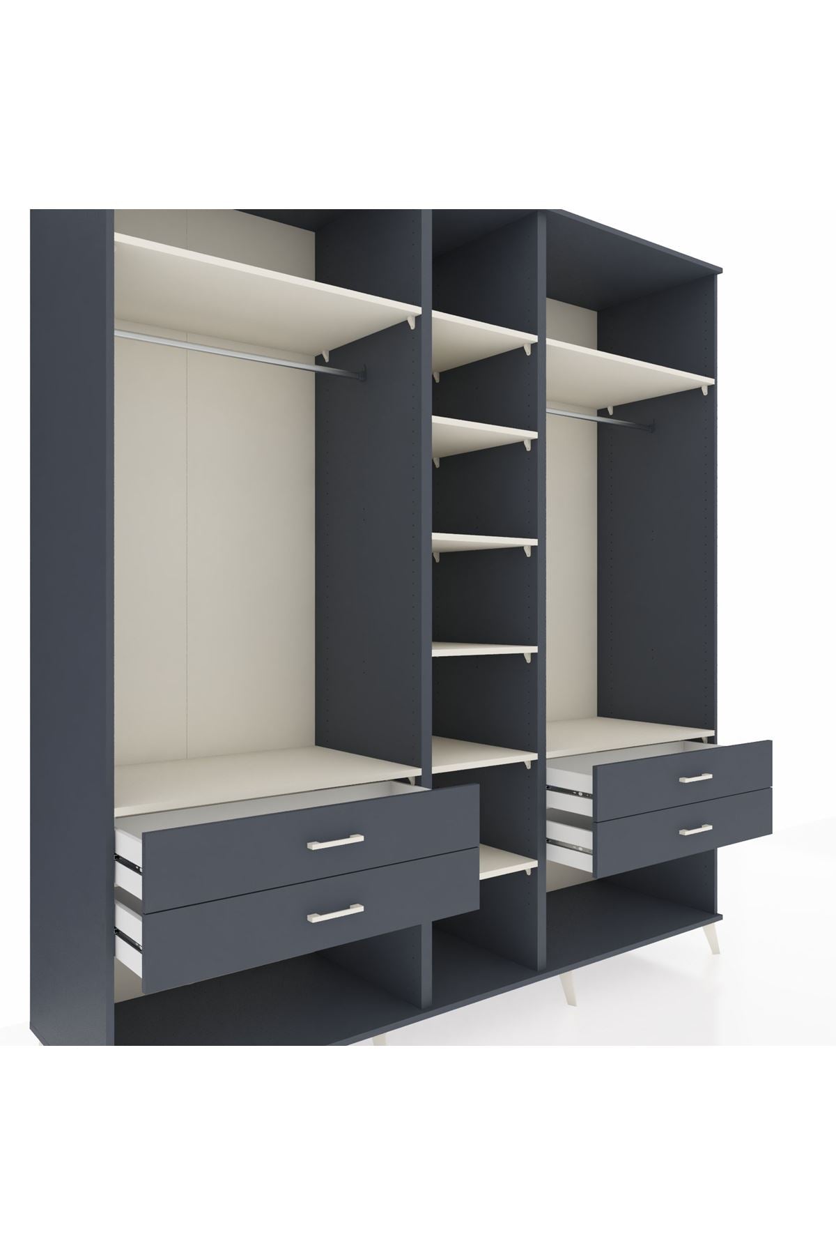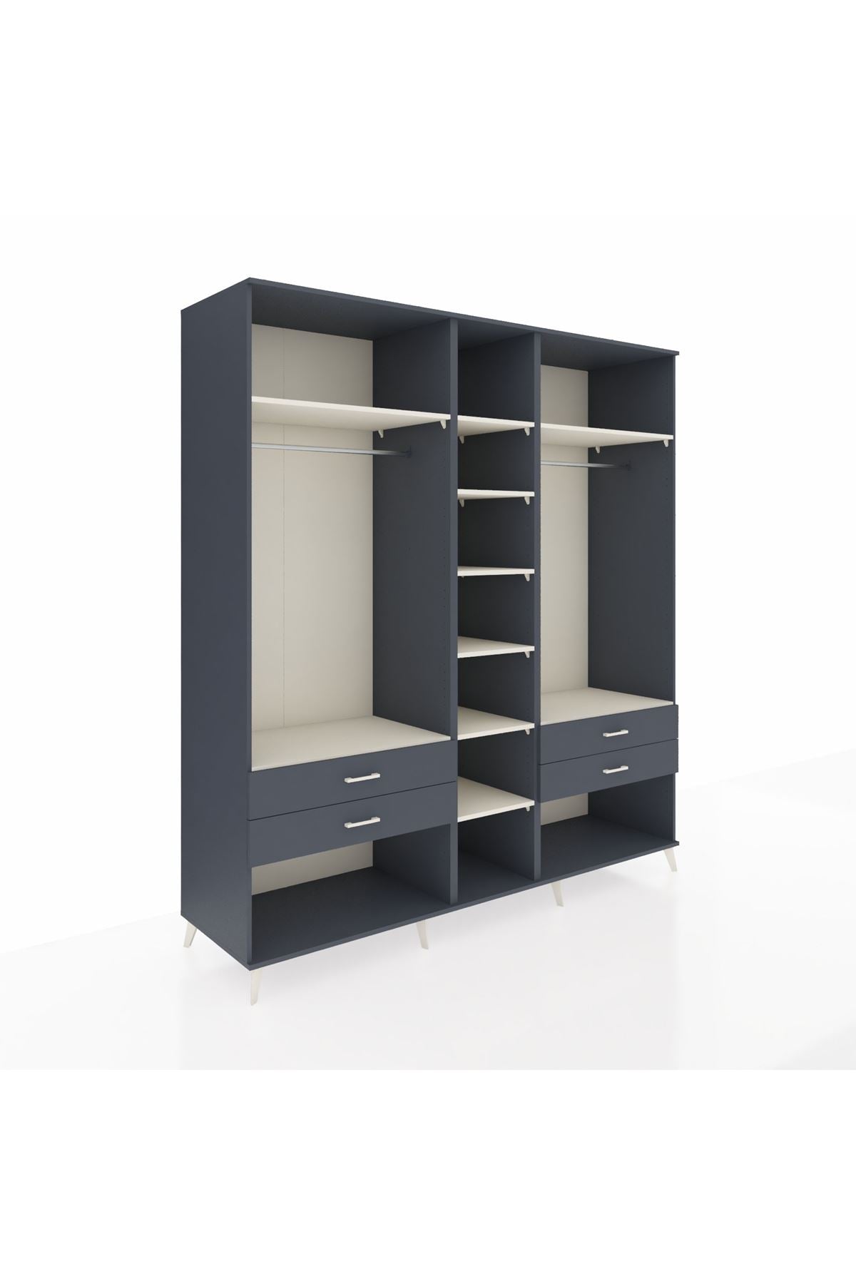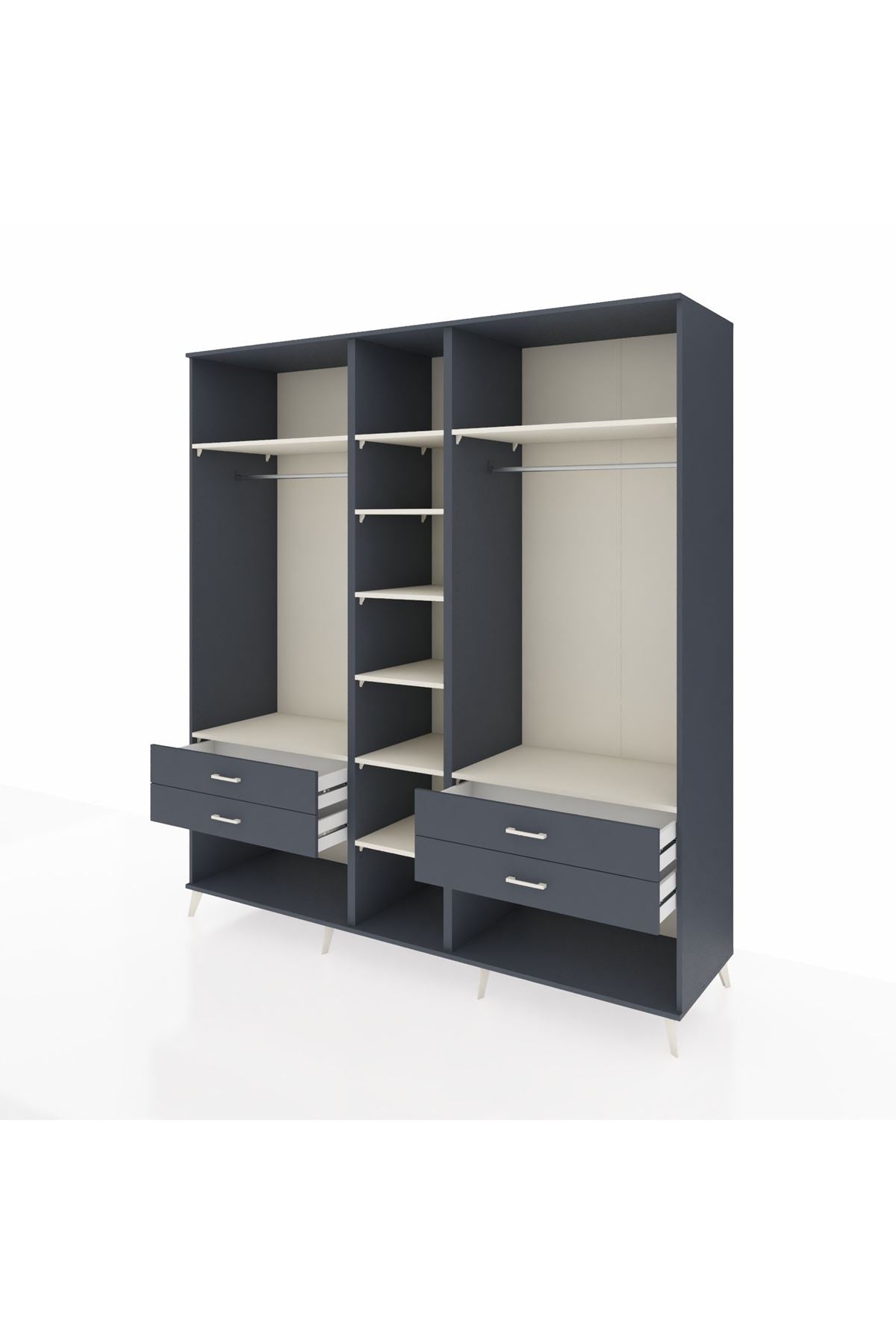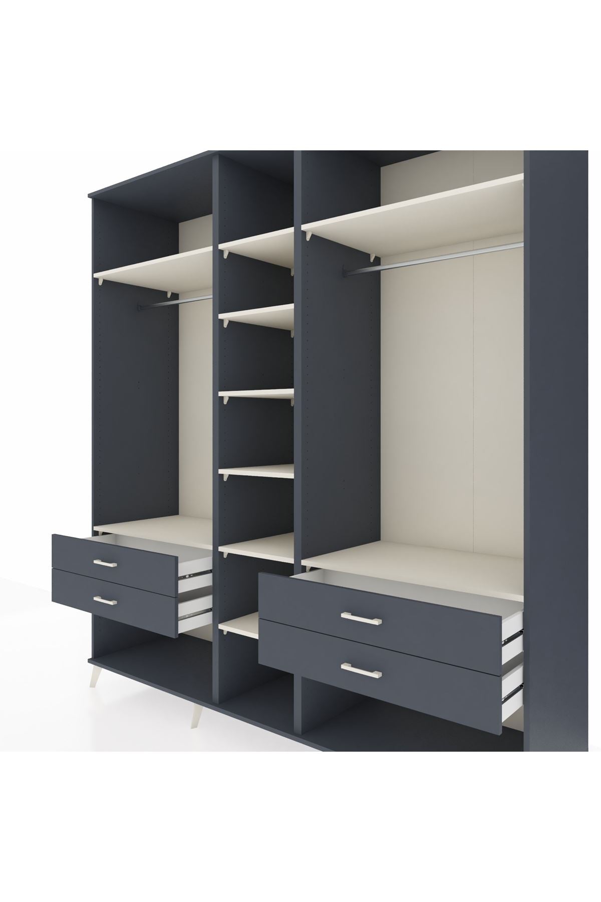 Kronos Dolap 10 Raflı 4 Çekmeceli 2 Askılı 220x59x243 Antrasit-Aytaşı/Antrasit