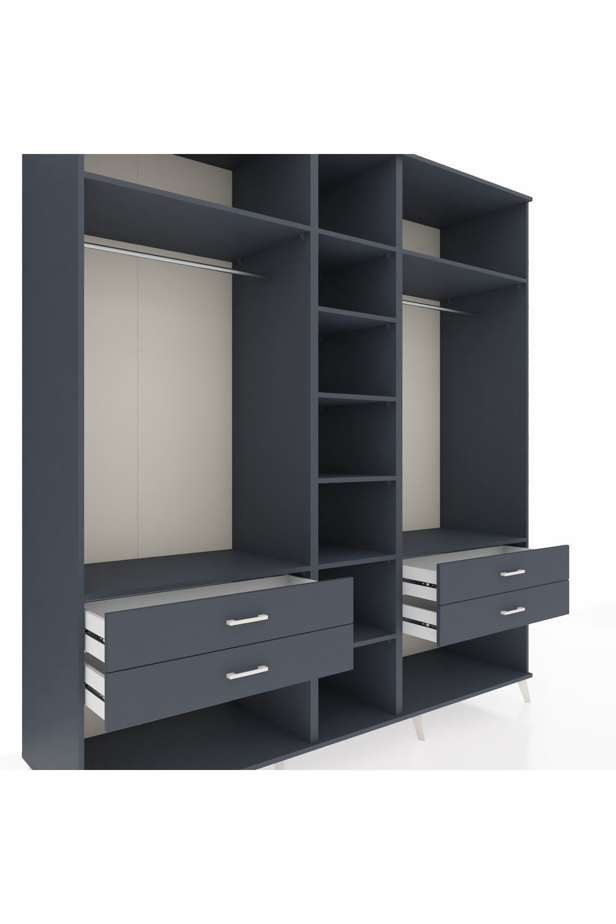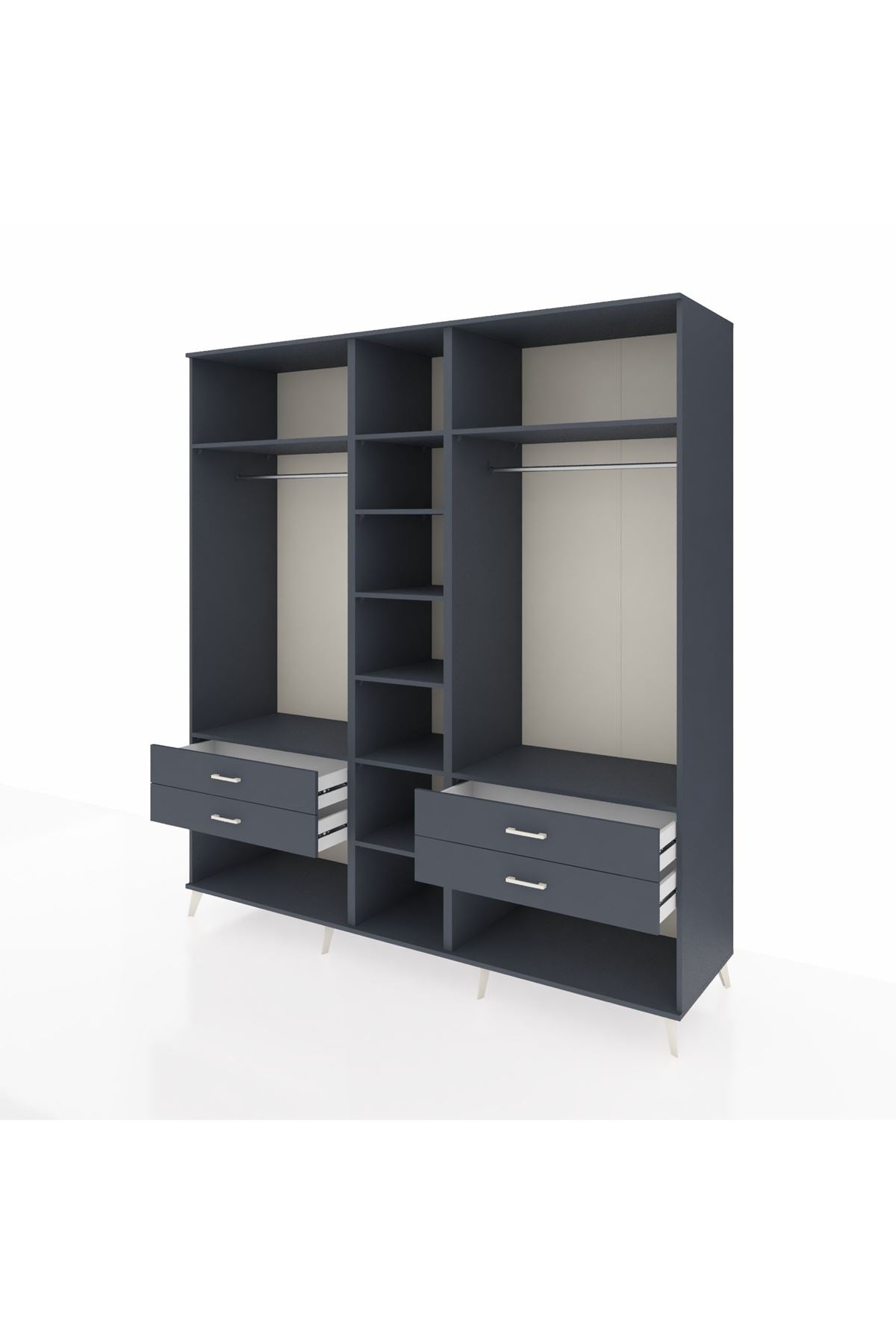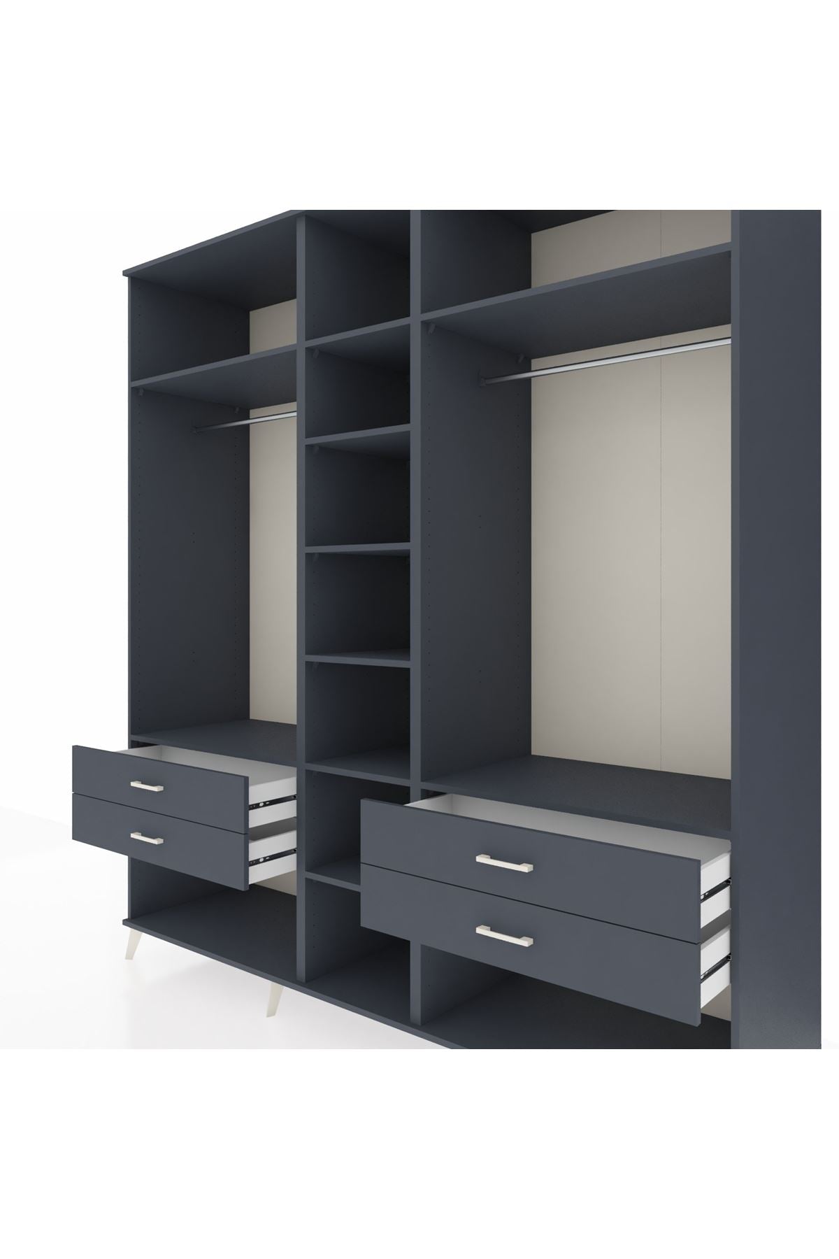 Kronos Dolap 10 Raflı 4 Çekmeceli 2 Askılı 220x59x243 Antrasit-Antrasit/Antrasit