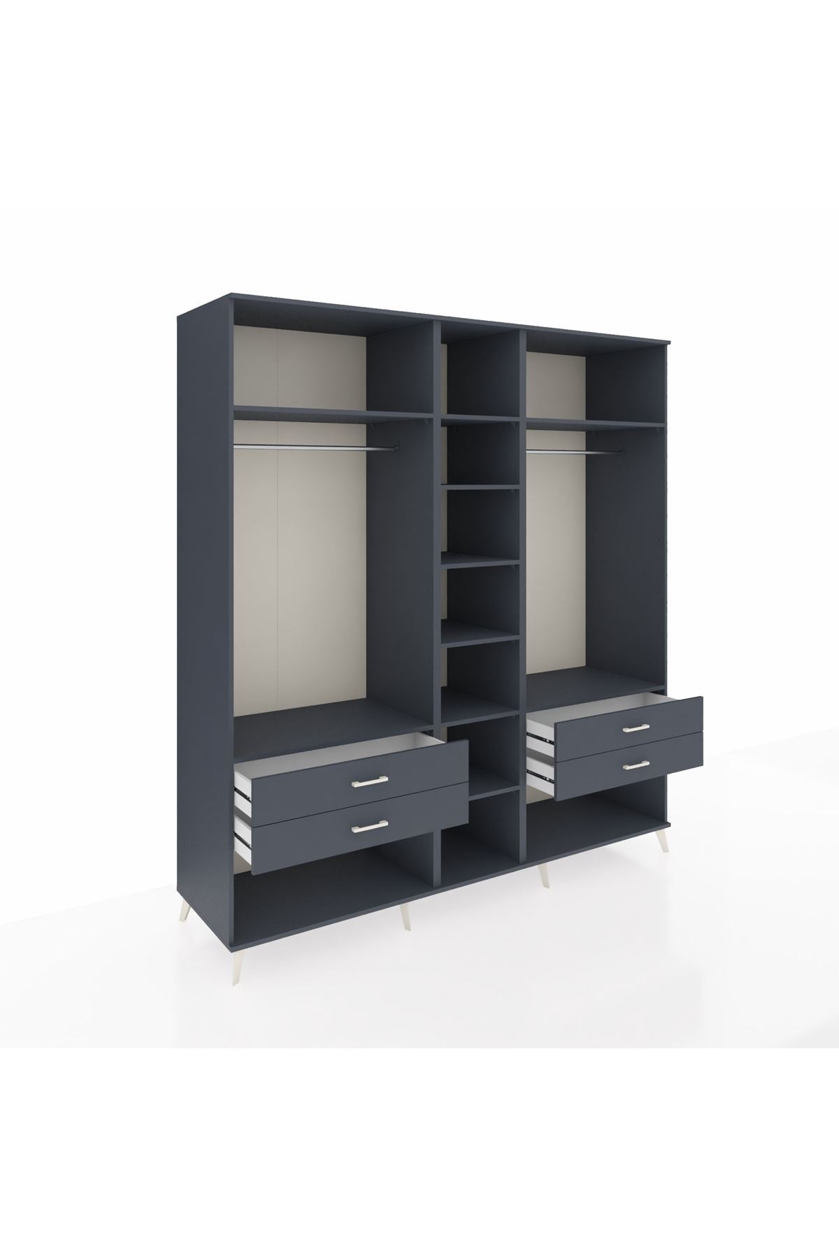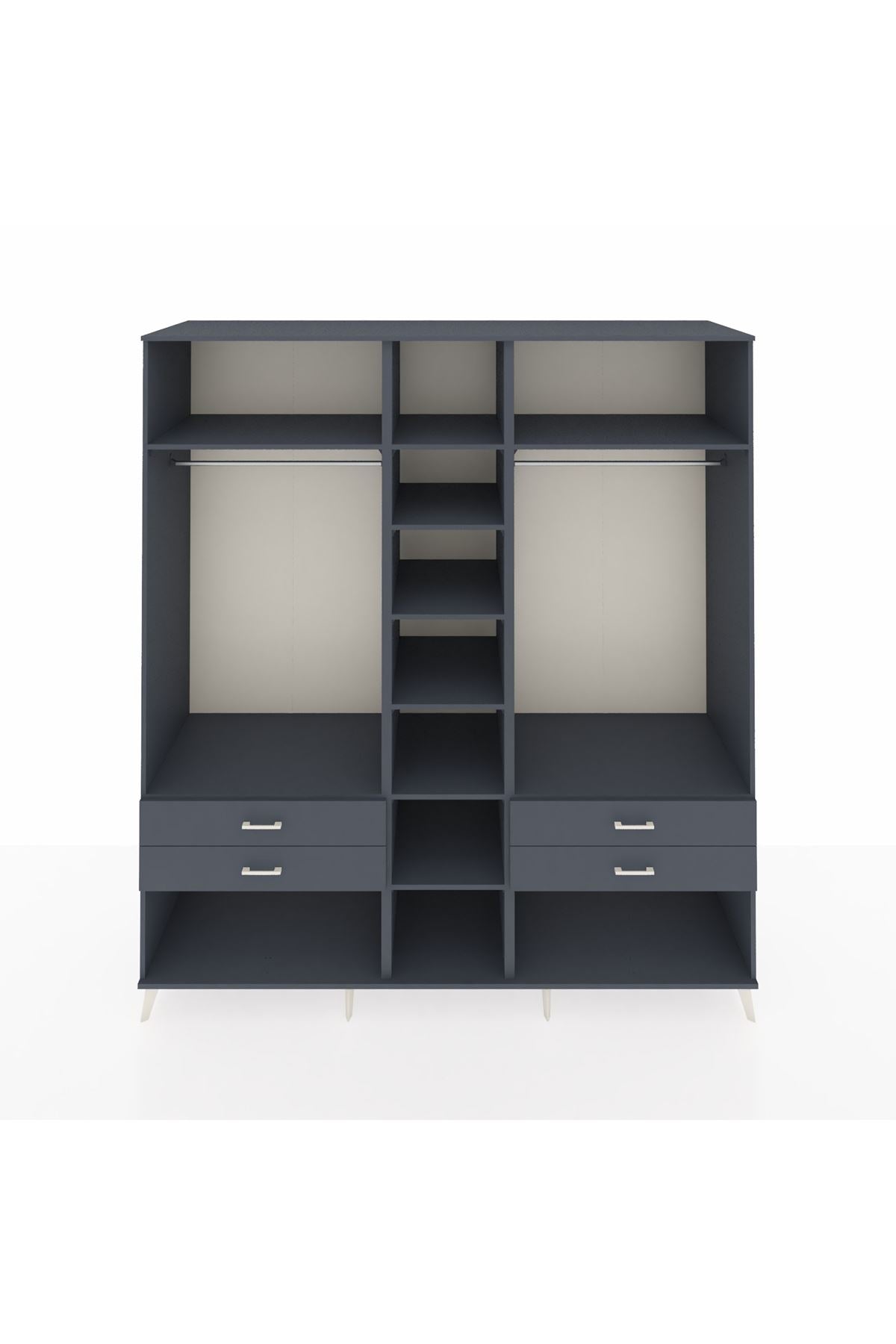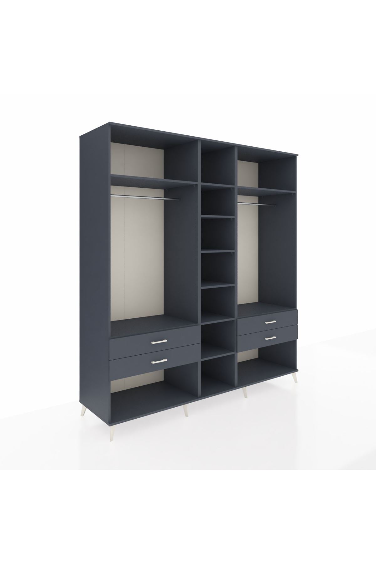 Kronos Dolap 10 Raflı 4 Çekmeceli 2 Askılı 220x59x243 Antrasit-Antrasit/Antrasit