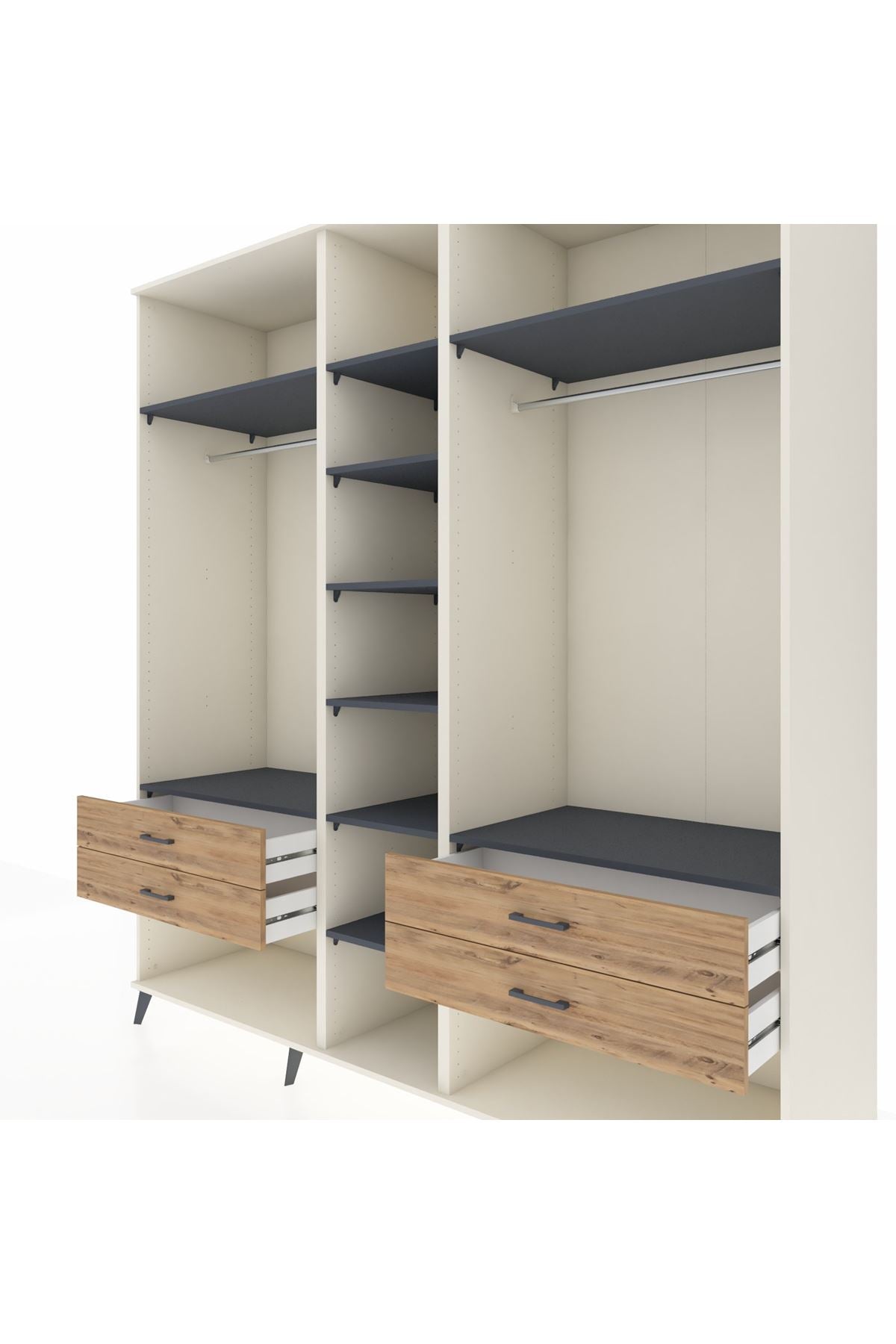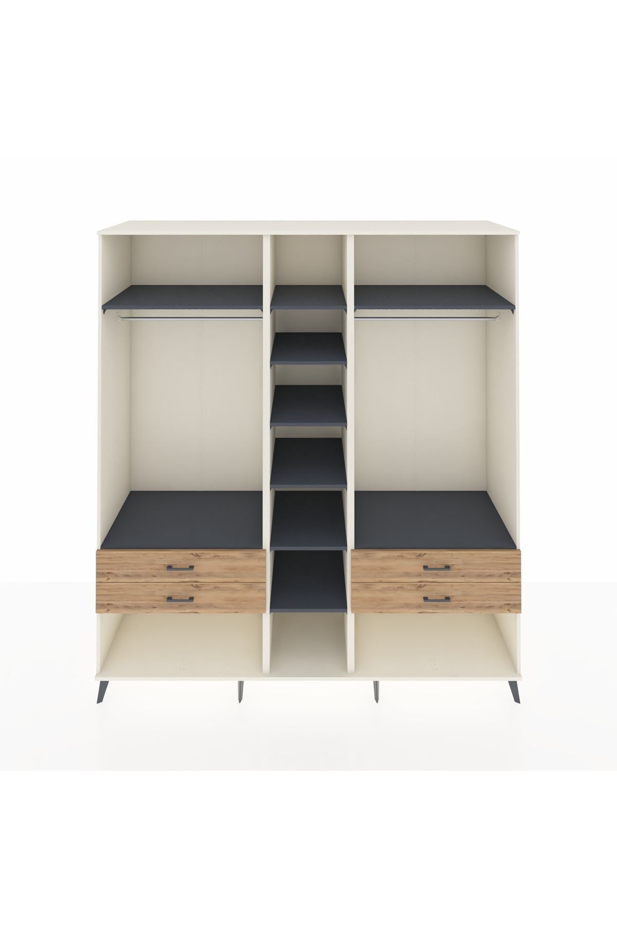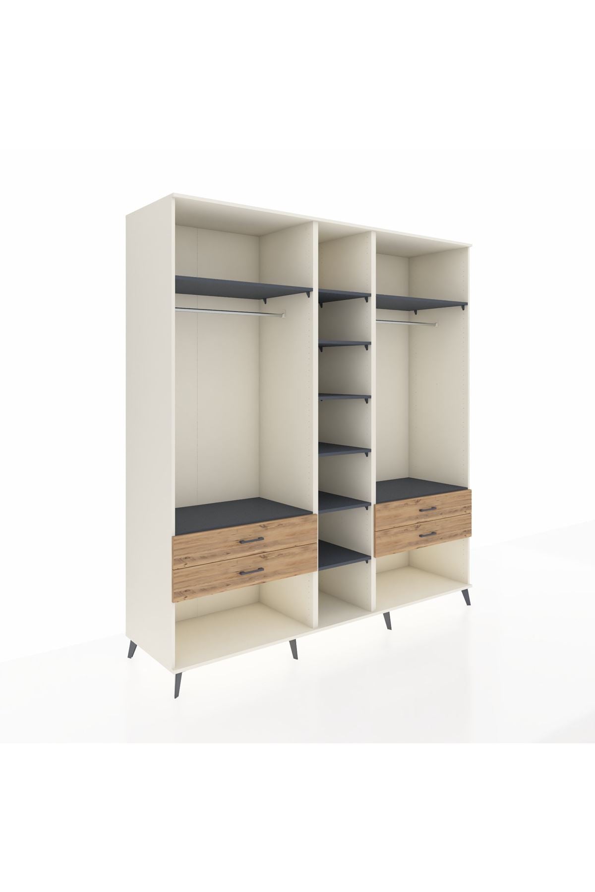 Kronos Dolap 10 Raflı 4 Çekmeceli 2 Askılı 220x59x243 Aytaşı-Antrasit/Çam