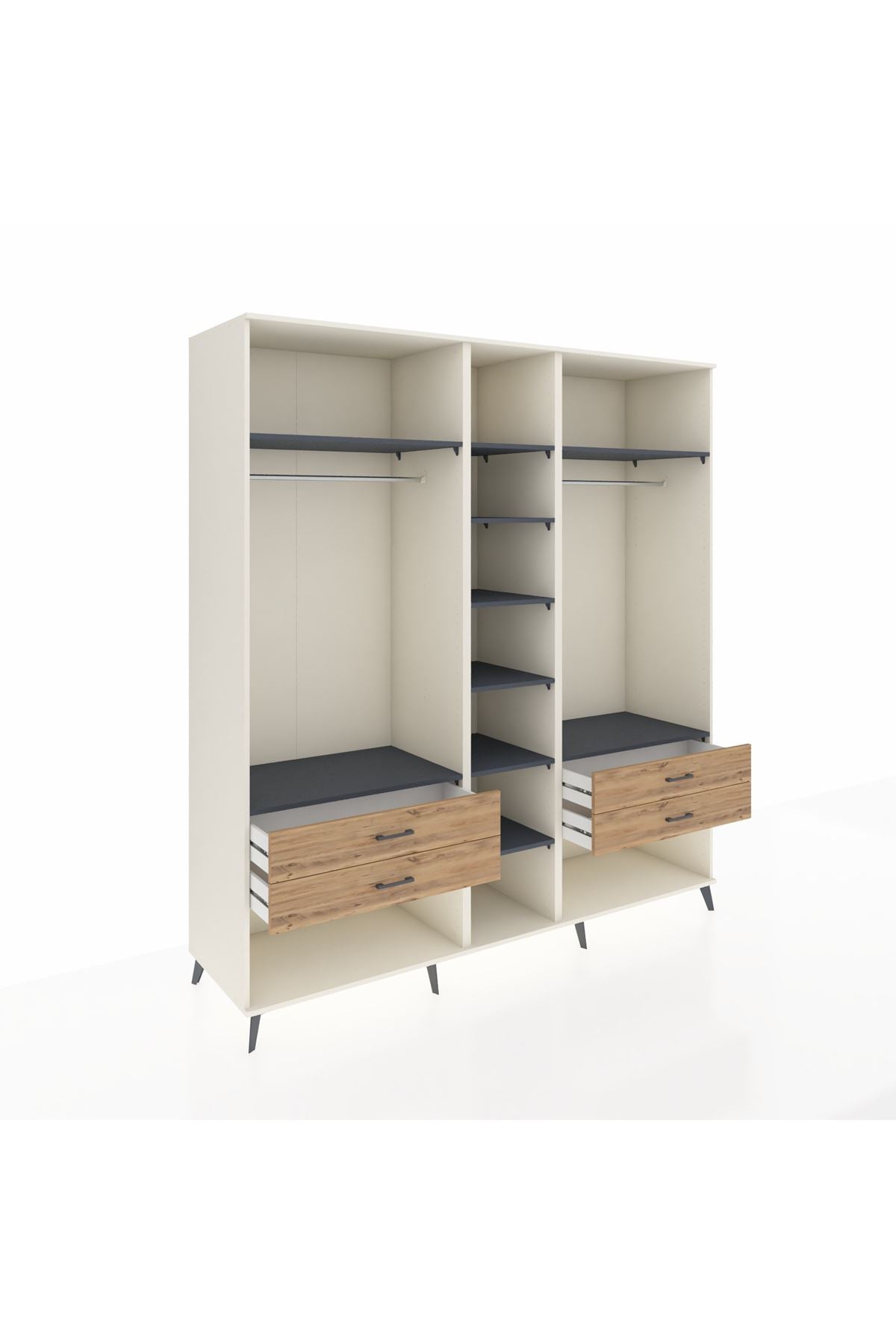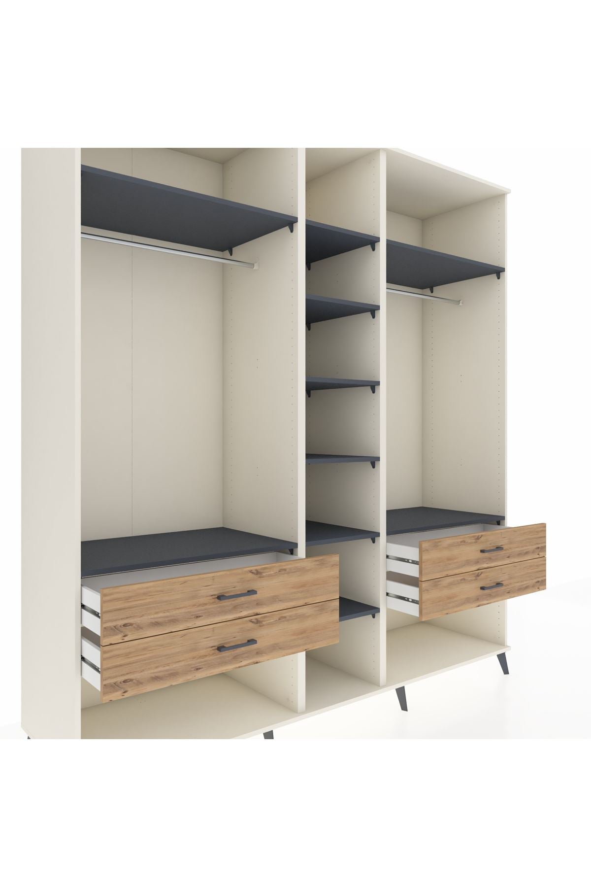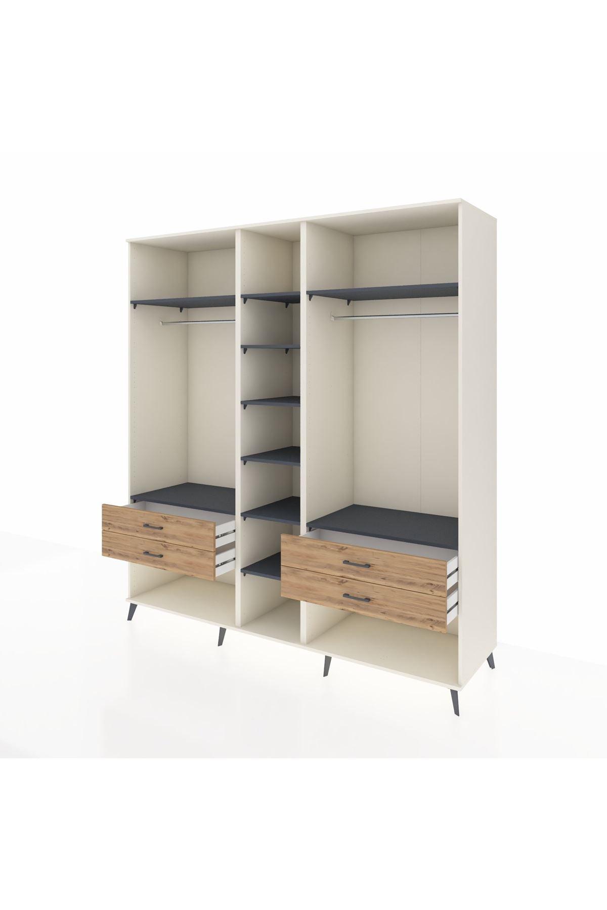 Kronos Dolap 10 Raflı 4 Çekmeceli 2 Askılı 220x59x243 Aytaşı-Antrasit/Çam