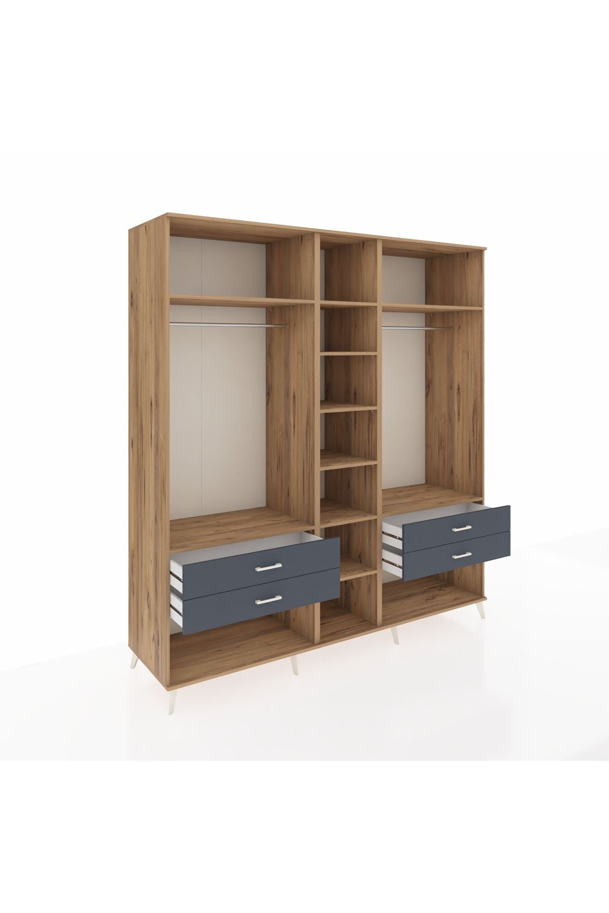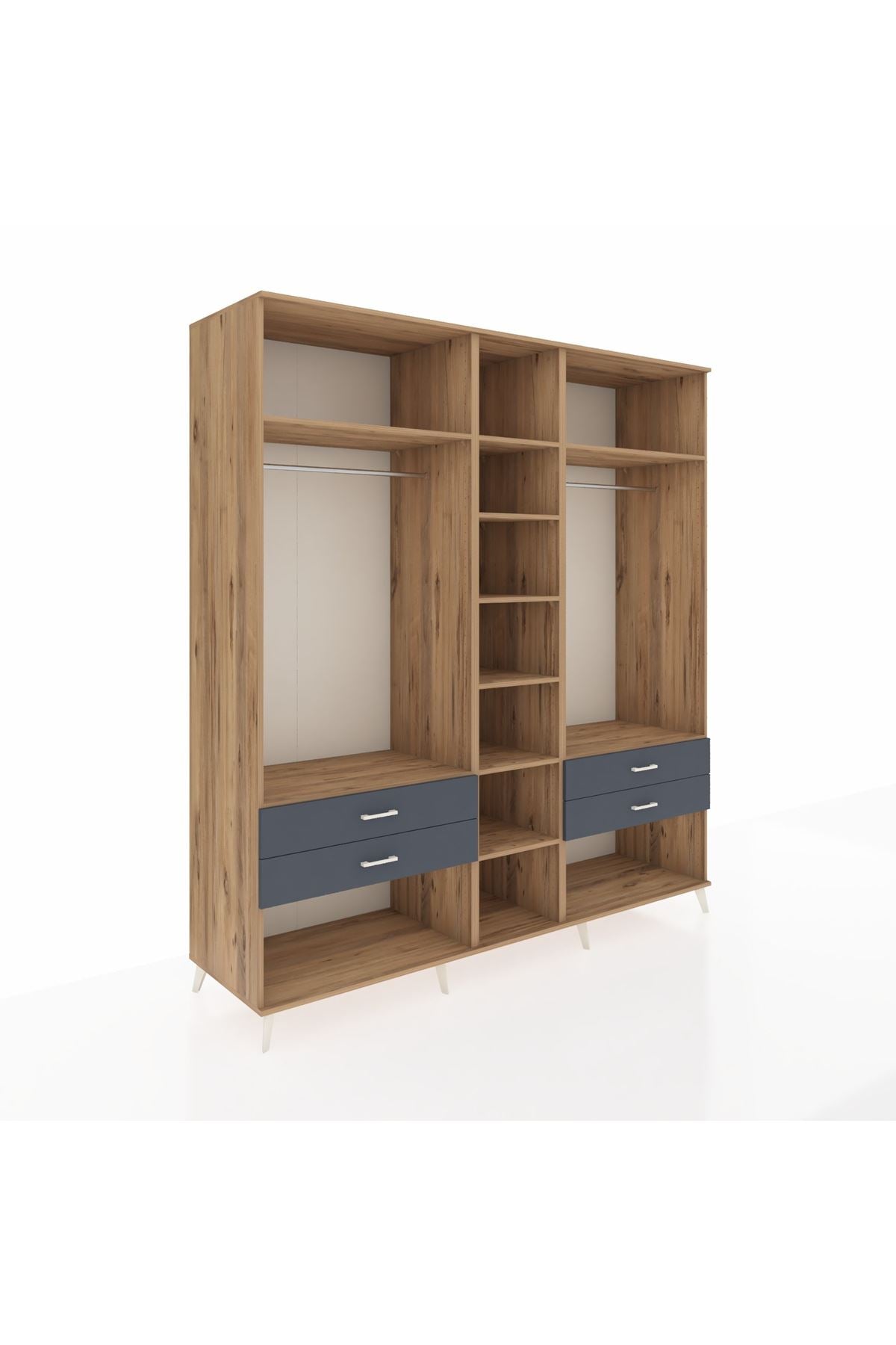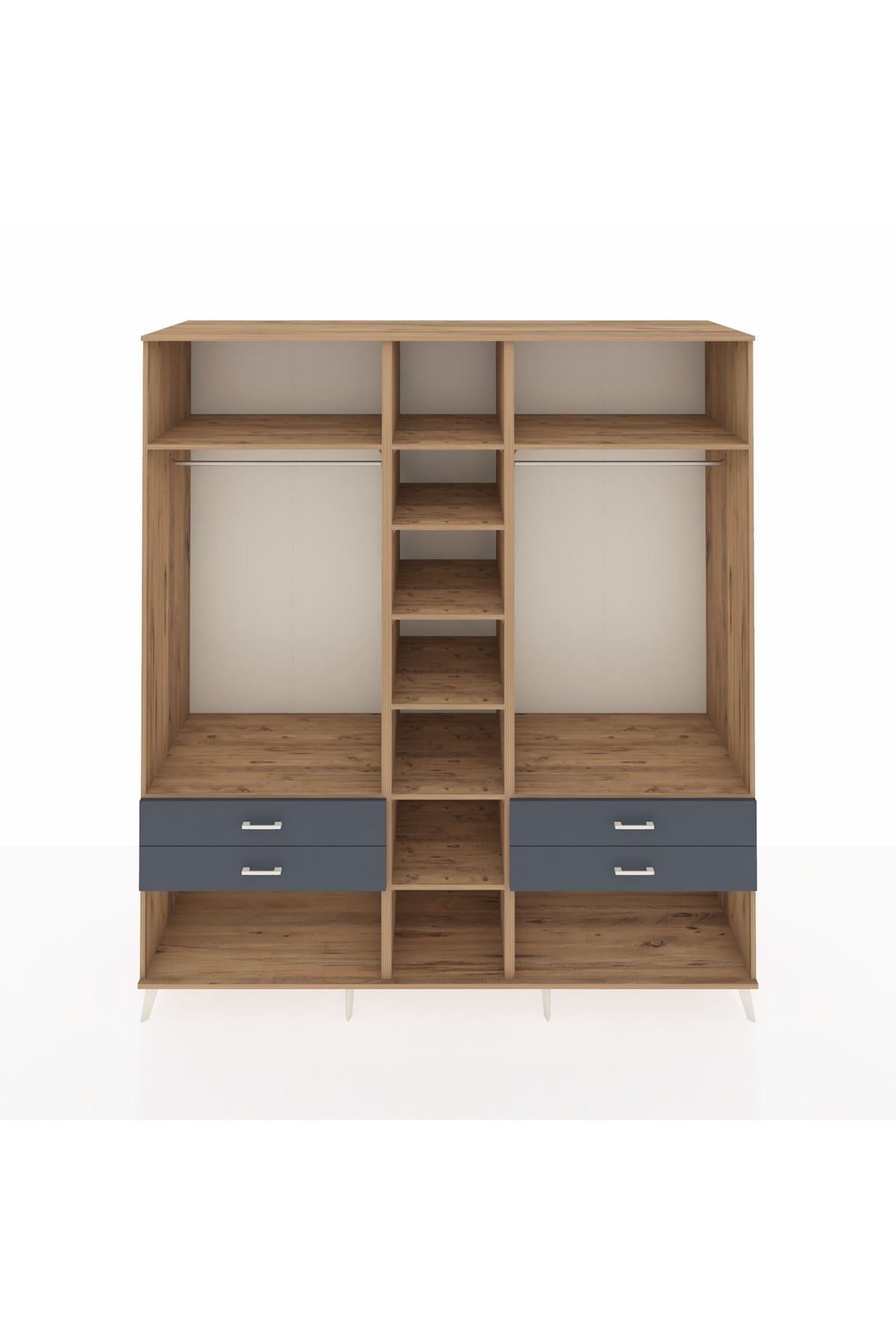 Kronos Dolap 10 Raflı 4 Çekmeceli 2 Askılı 220x59x243 Çam-Çam/Antrasit