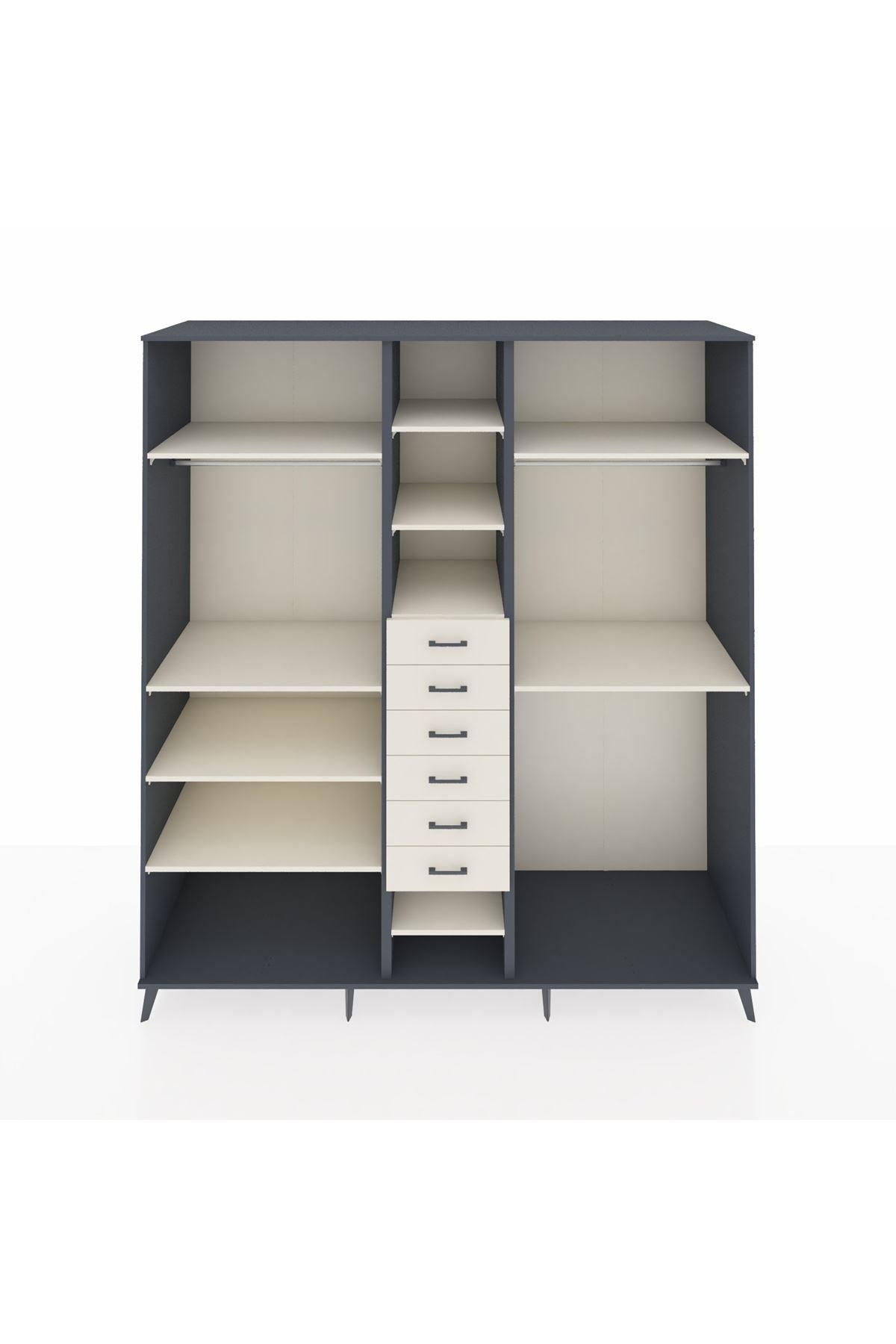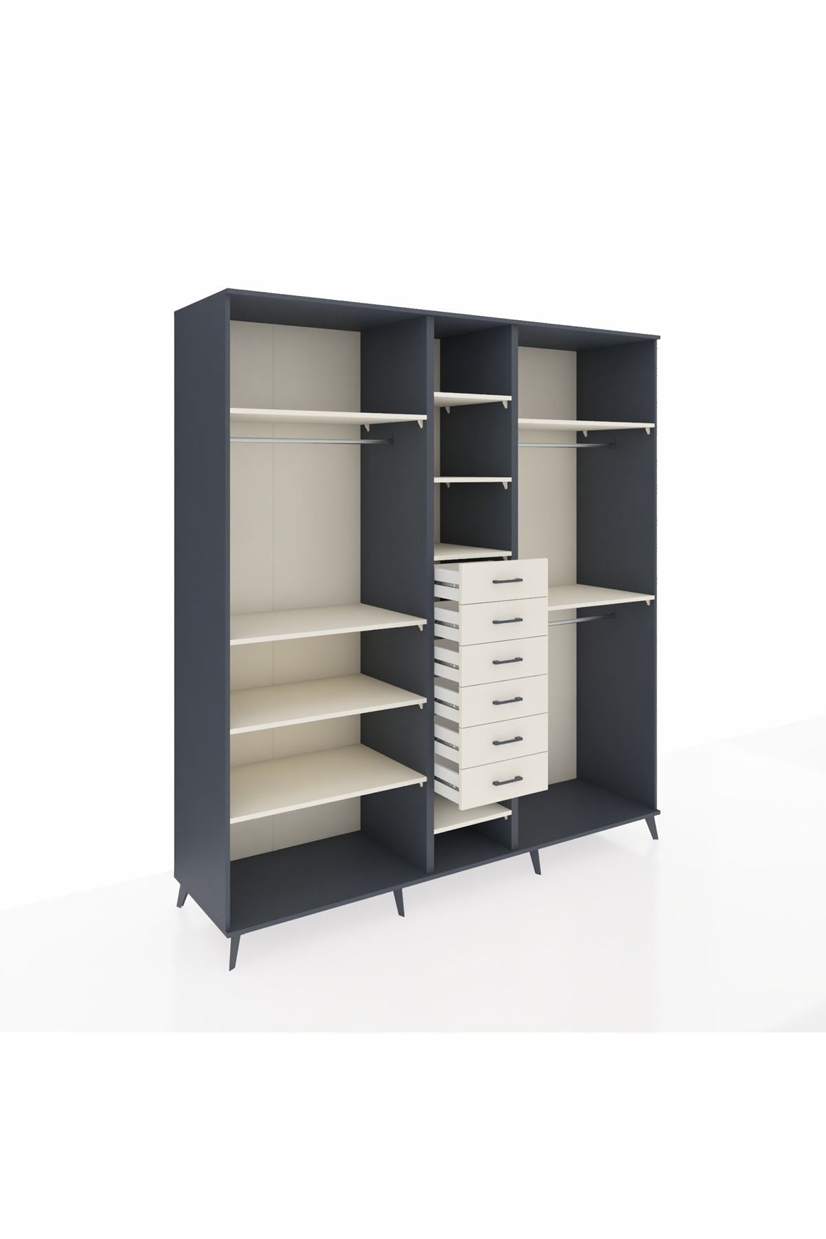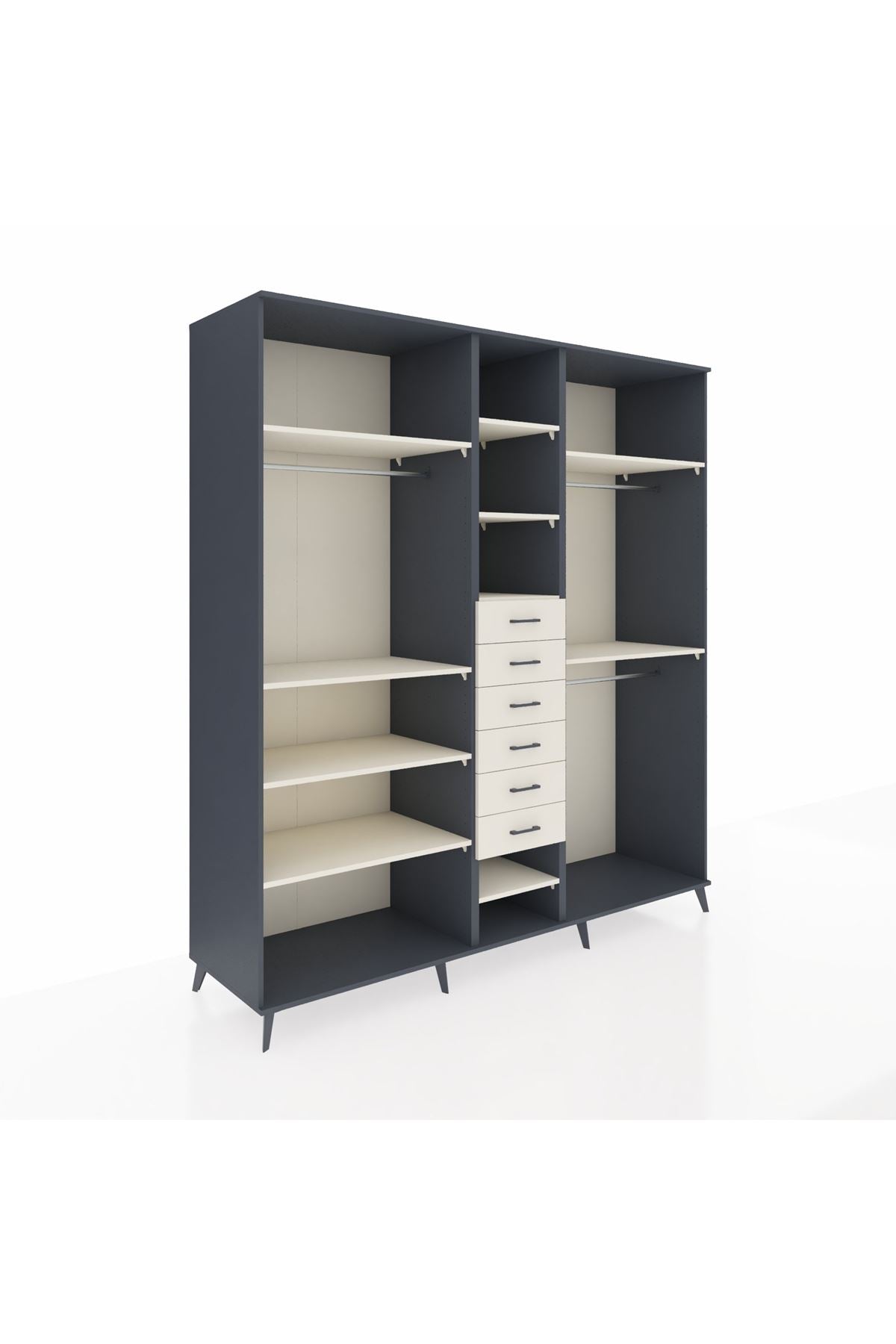 Kronos Dolap 10 Raflı 6 Çekmeceli 3 Askılı 220x59x243 Antrasit-Aytaşı/Aytaşı
