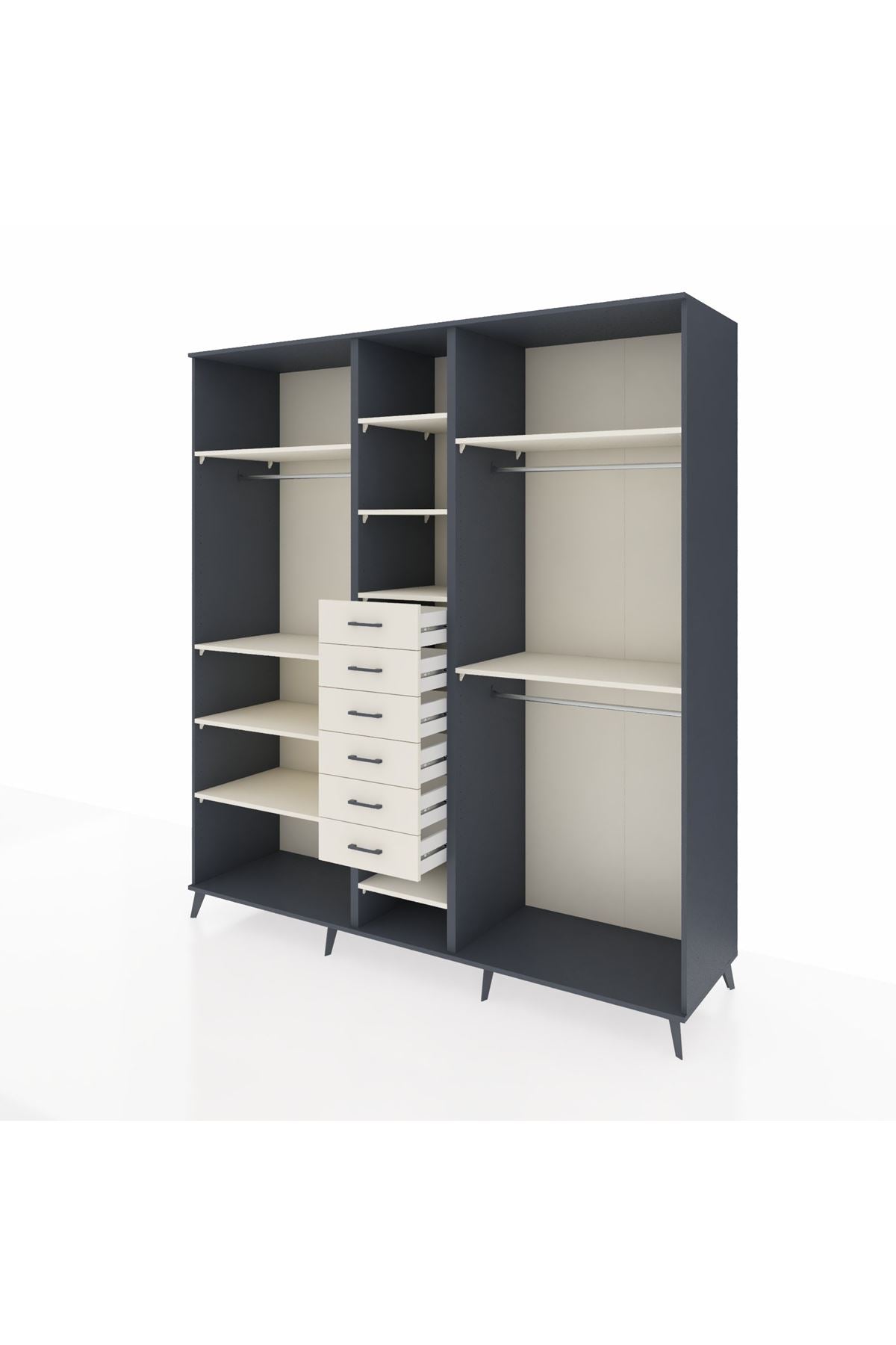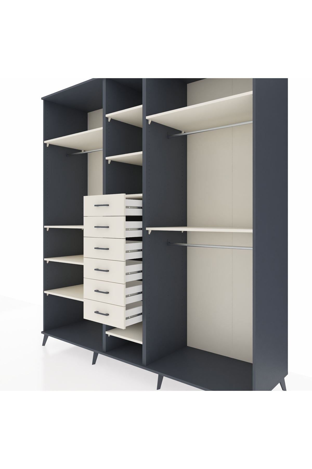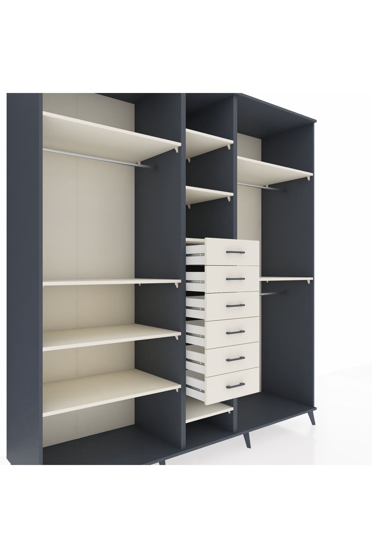 Kronos Dolap 10 Raflı 6 Çekmeceli 3 Askılı 220x59x243 Antrasit-Aytaşı/Aytaşı