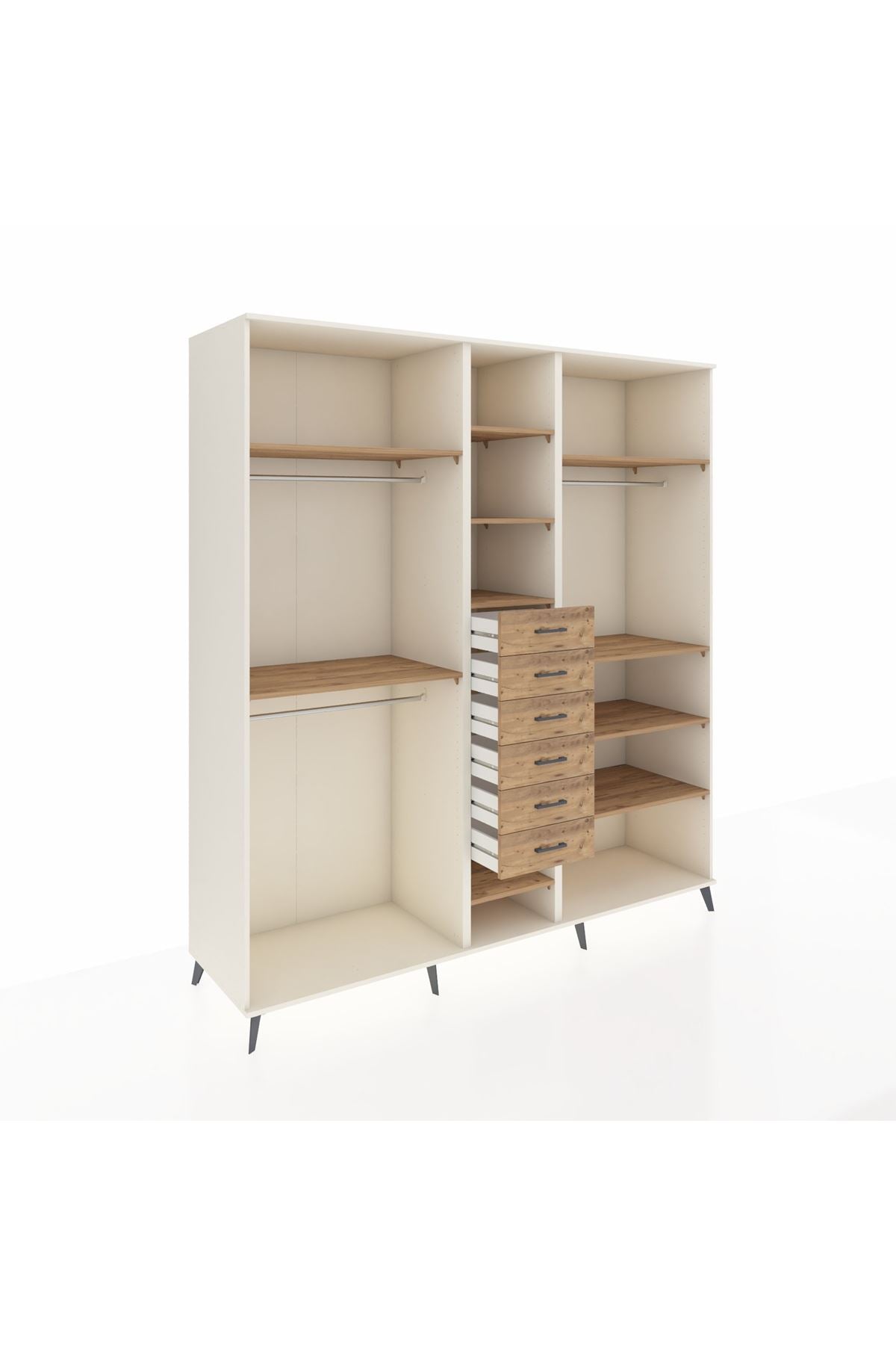 Kronos Dolap 10 Raflı 6 Çekmeceli 3 Askılı 220x59x243 Aytaşı-Çam/Çam