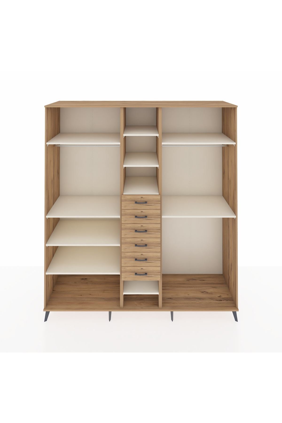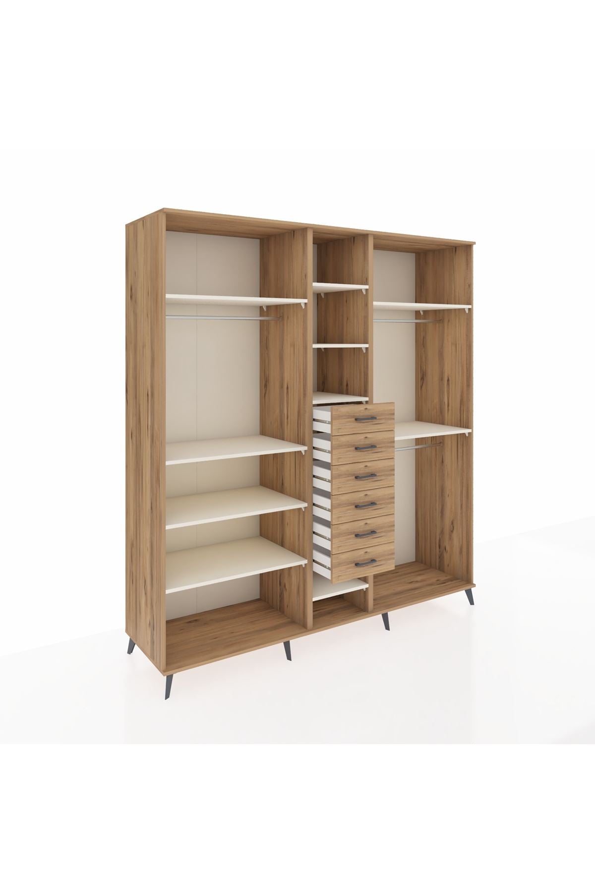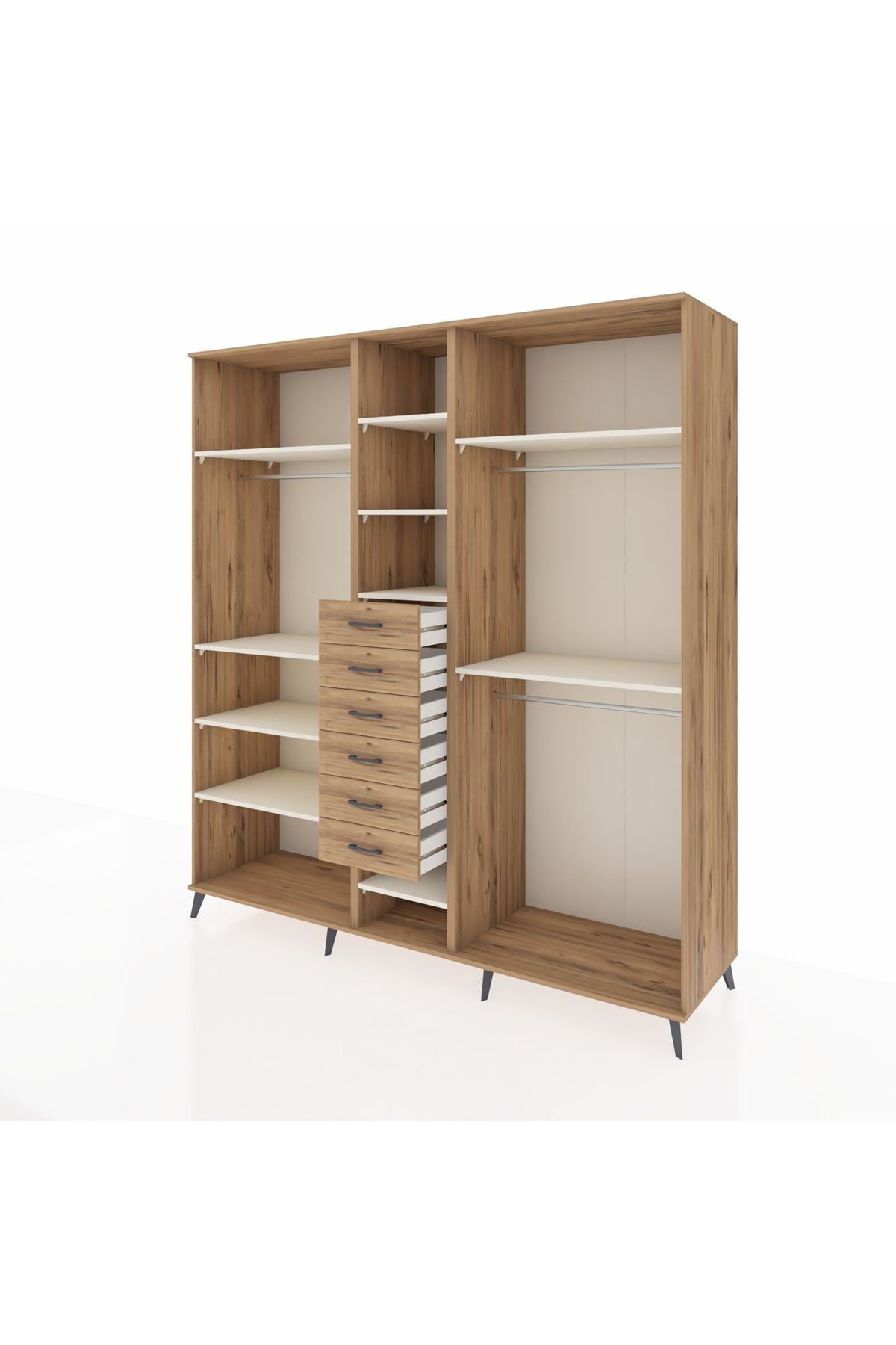 Kronos Dolap 10 Raflı 6 Çekmeceli 3 Askılı 220x59x243 Çam-Aytaşı/Çam