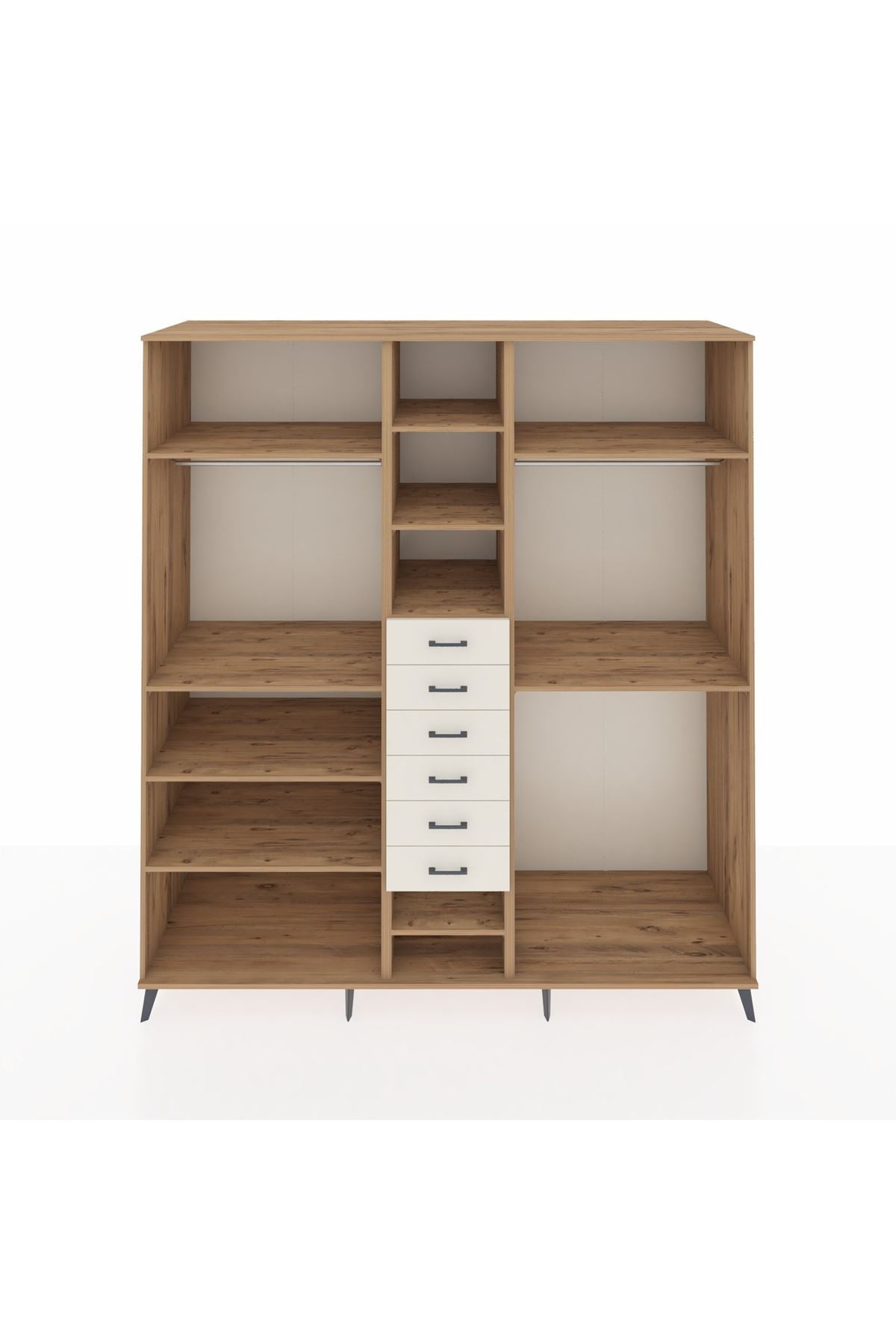 Kronos Dolap 10 Raflı 6 Çekmeceli 3 Askılı 220x59x243 Çam-Çam/Aytaşı