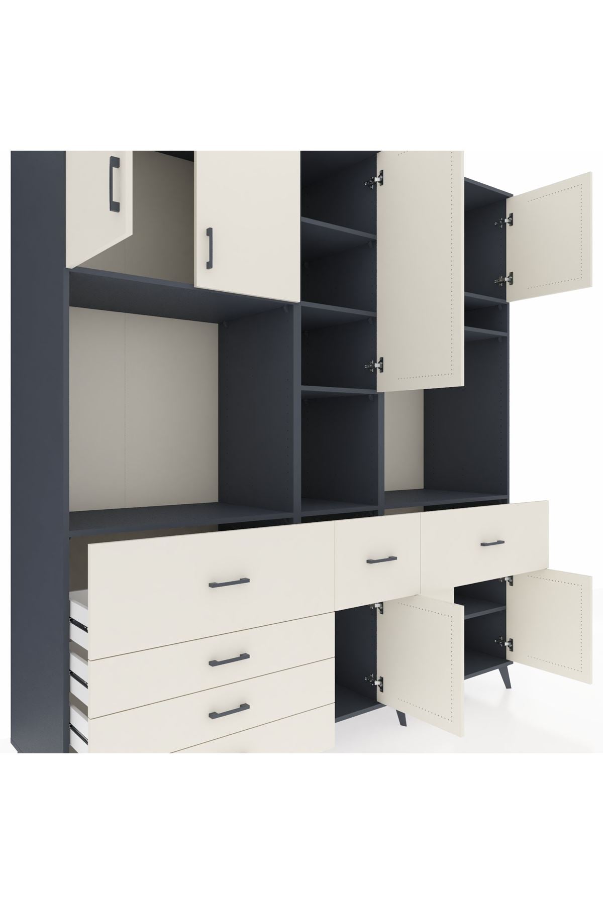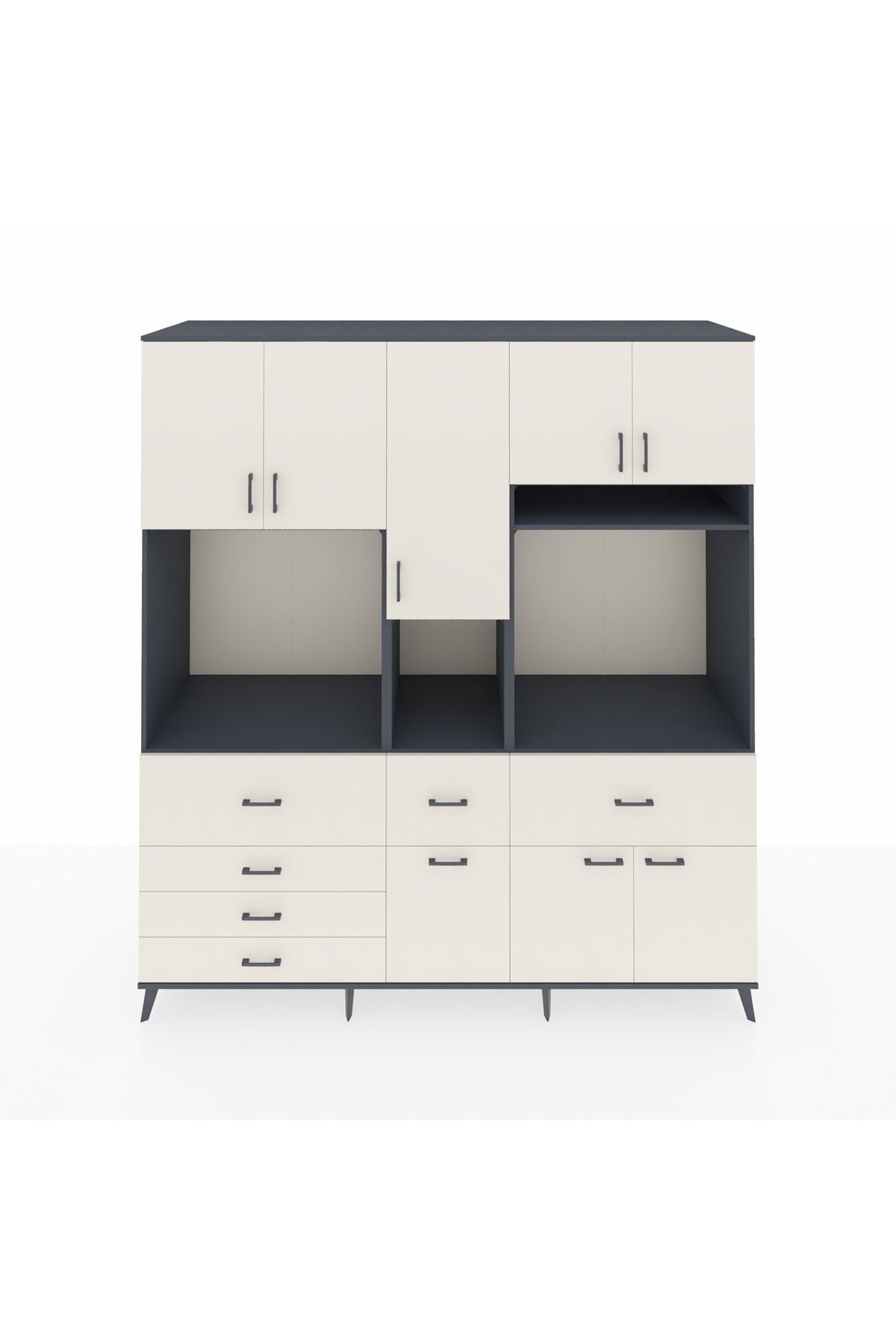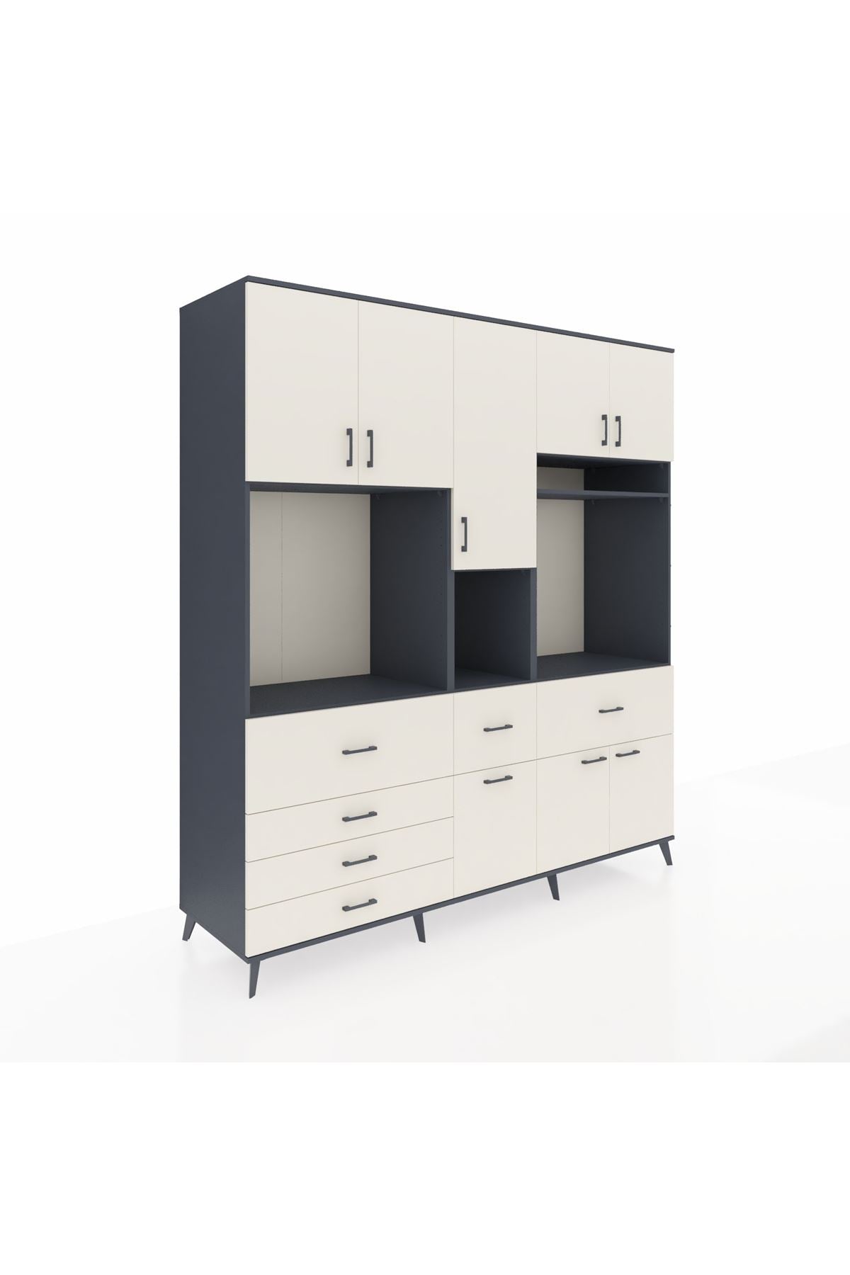Kronos Dolap 10 Raflı 6 Çekmeceli 8 Kapaklı 220x59x243 Antrasit-Aytaşı/Aytaşı