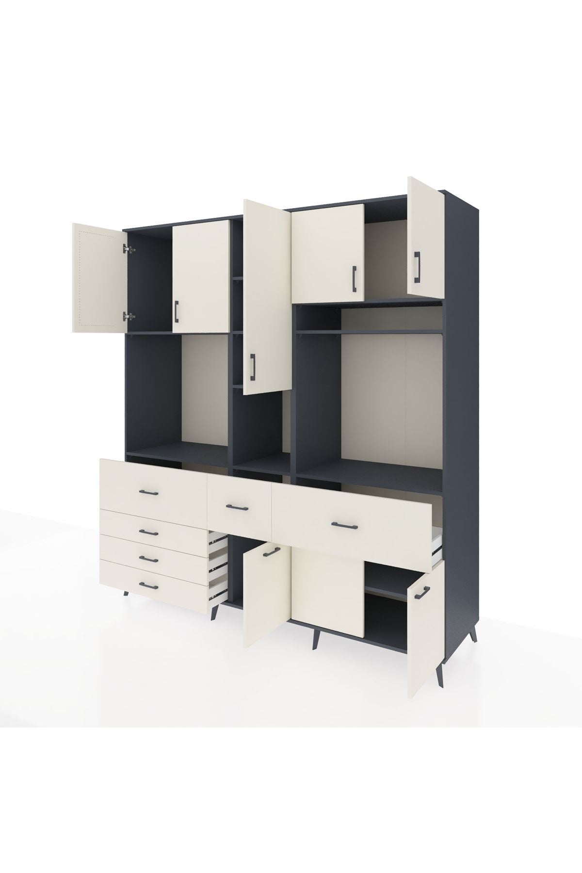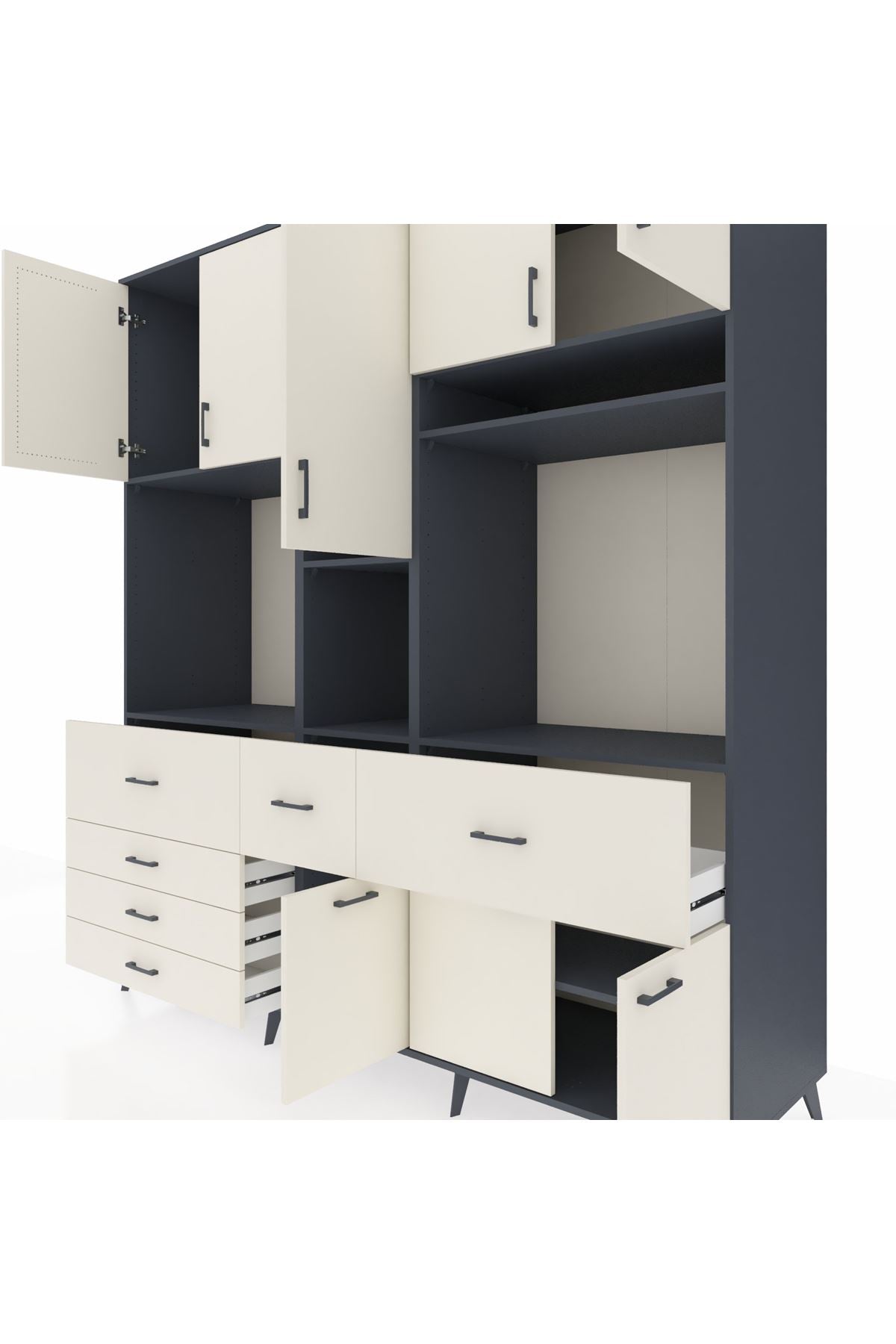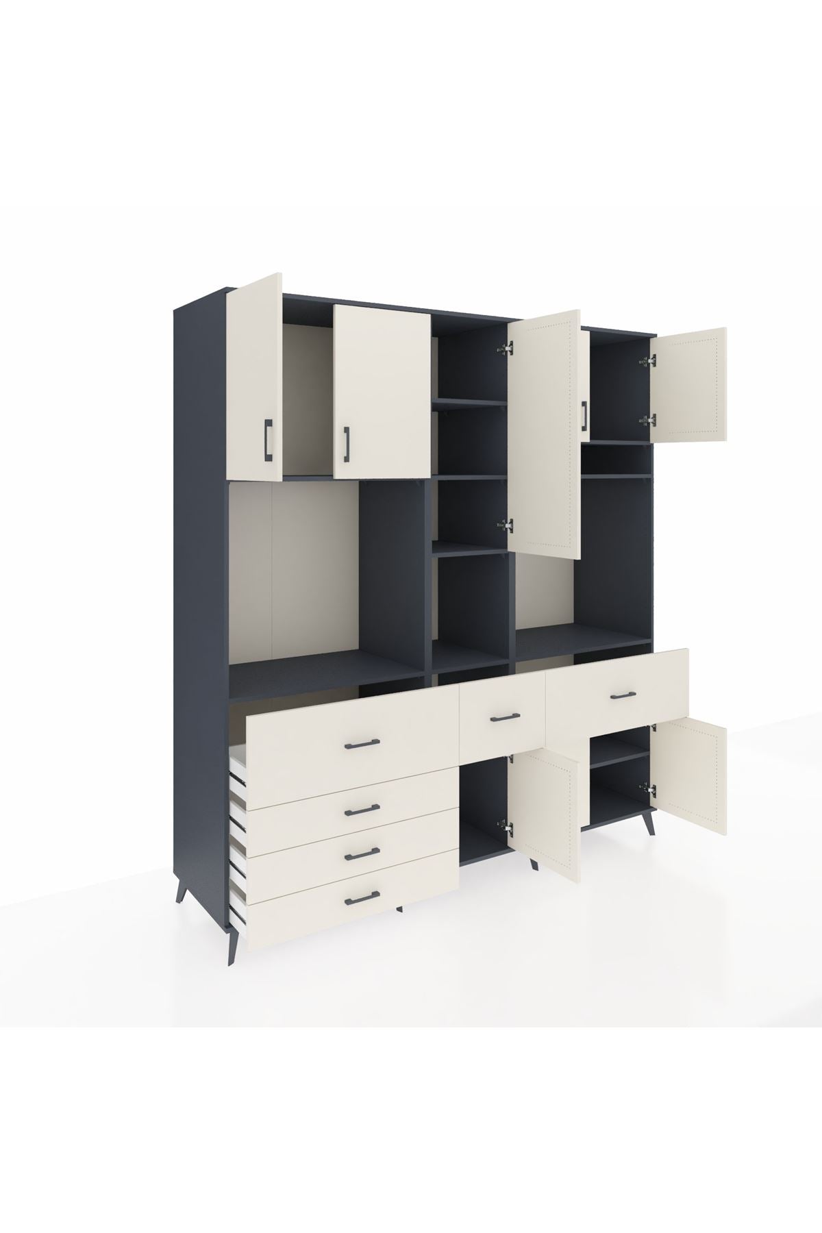 Kronos Dolap 10 Raflı 6 Çekmeceli 8 Kapaklı 220x59x243 Antrasit-Aytaşı/Aytaşı