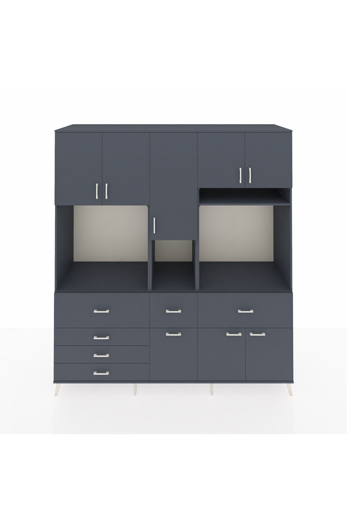 Kronos Dolap 10 Raflı 6 Çekmeceli 8 Kapaklı 220x59x243 Antrasit-Antrasit/Antrasit